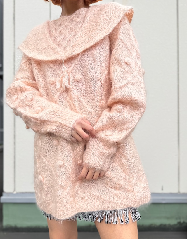 記載サイズ M 肩幅 - 身幅 60cm 着丈 73cm 素材 モヘア・アクリル お尻が隠れるほどのオーバーシルエットのモヘアニットセーター 大きな襟に前後にタッセルがちょこんとついてて可愛すぎます。 全体的にポコポコしたモチーフも◎ 襟部分に薄ら糸が染まった様なシミがあります(画像参照) その他特筆するダメージはありません。 ※表記サイズは平置き採寸です。手作業での採寸の為、多少のずれが生じることもございます。 ※こちらの商品は店頭でも販売しているため、同時に売れてしまう可能性がございます。 そのような場合、ご注文をキャンセルさせていただくことがございます。 あらかじめご了承ください。 ※こちらの商品はUSEDです。 そのため使用感や経年の劣化はございます。 特に気になるコンディションにつきましては明記してありますが、あくまでも弊店の基準でご案内させて頂いております。 Vintage,USED商品にご理解のある方のみでお願いいたします。 ※商品の色味は、できる限り肉眼に近いように調整しておりますが、お手元のブラウザによって見え方がかわることもあります。 以上の理由での返品は承っておりませんので ご理解いただけた方のみご注文いただけますようお願い申し上げます。 商品に関するご質問等あれば、お気軽にお問い合わせ下さい。