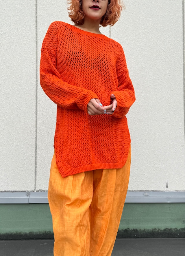 記載サイズ M 肩幅 - 身幅 58cm 着丈 62cm 素材 コットン Made in USA 粗めのメッシュニットセーター オーバーシルエットでインナーをキャミやタンクトップにすれば真夏にもオススメ◎ コットン素材なのでビーチでも使えそう。 よく見るとフロントに薄っすらシミに見える部分がありますが、肉眼でほとんど目立たない程度です(画像参照) 特筆するダメージはありません。 ※表記サイズは平置き採寸です。手作業での採寸の為、多少のずれが生じることもございます。 ※こちらの商品は店頭でも販売しているため、同時に売れてしまう可能性がございます。 そのような場合、ご注文をキャンセルさせていただくことがございます。 あらかじめご了承ください。 ※こちらの商品はUSEDです。 そのため使用感や経年の劣化はございます。 特に気になるコンディションにつきましては明記してありますが、あくまでも弊店の基準でご案内させて頂いております。 Vintage,USED商品にご理解のある方のみでお願いいたします。 ※商品の色味は、できる限り肉眼に近いように調整しておりますが、お手元のブラウザによって見え方がかわることもあります。 以上の理由での返品は承っておりませんので ご理解いただけた方のみご注文いただけますようお願い申し上げます。 商品に関するご質問等あれば、お気軽にお問い合わせ下さい。