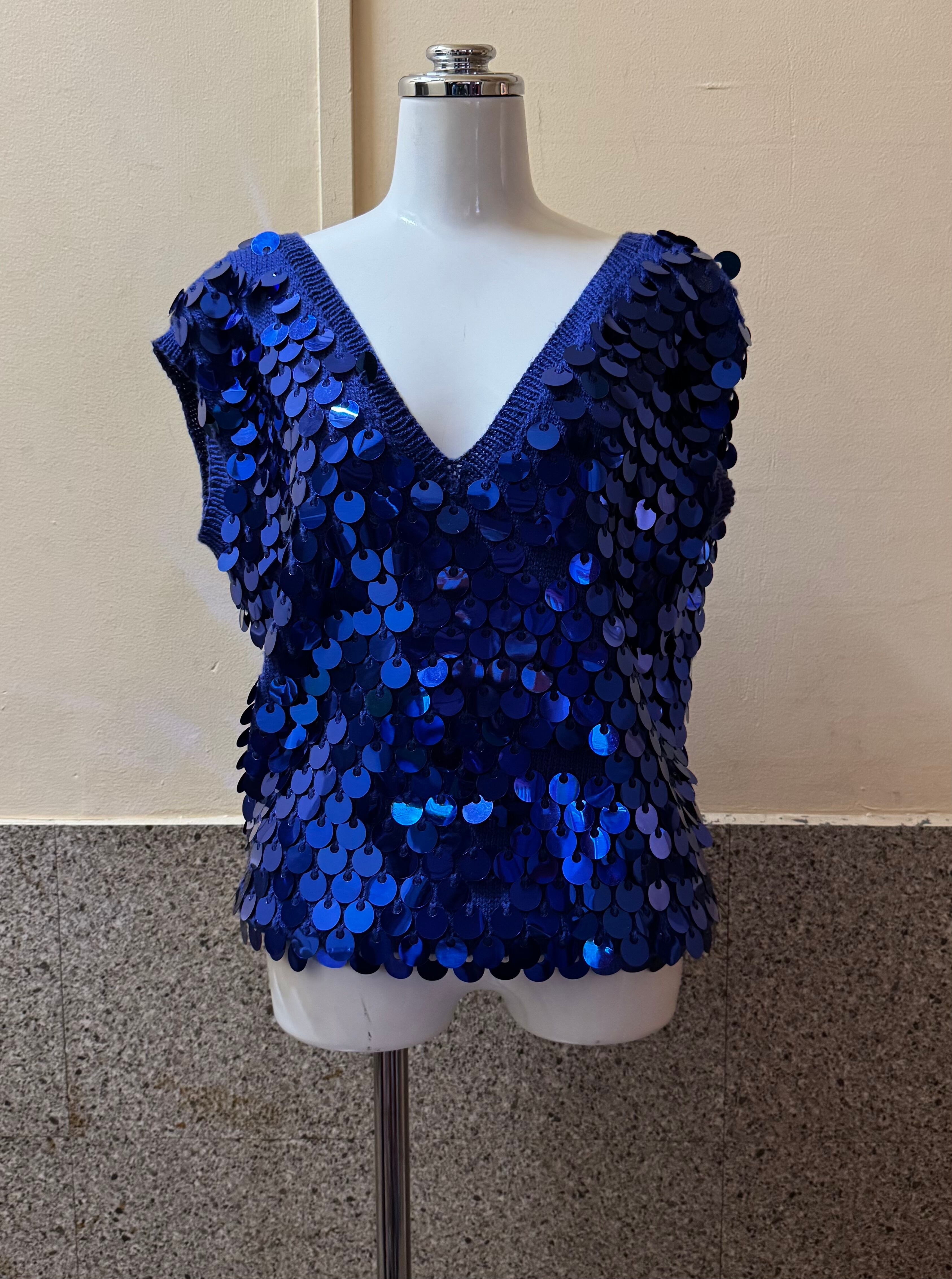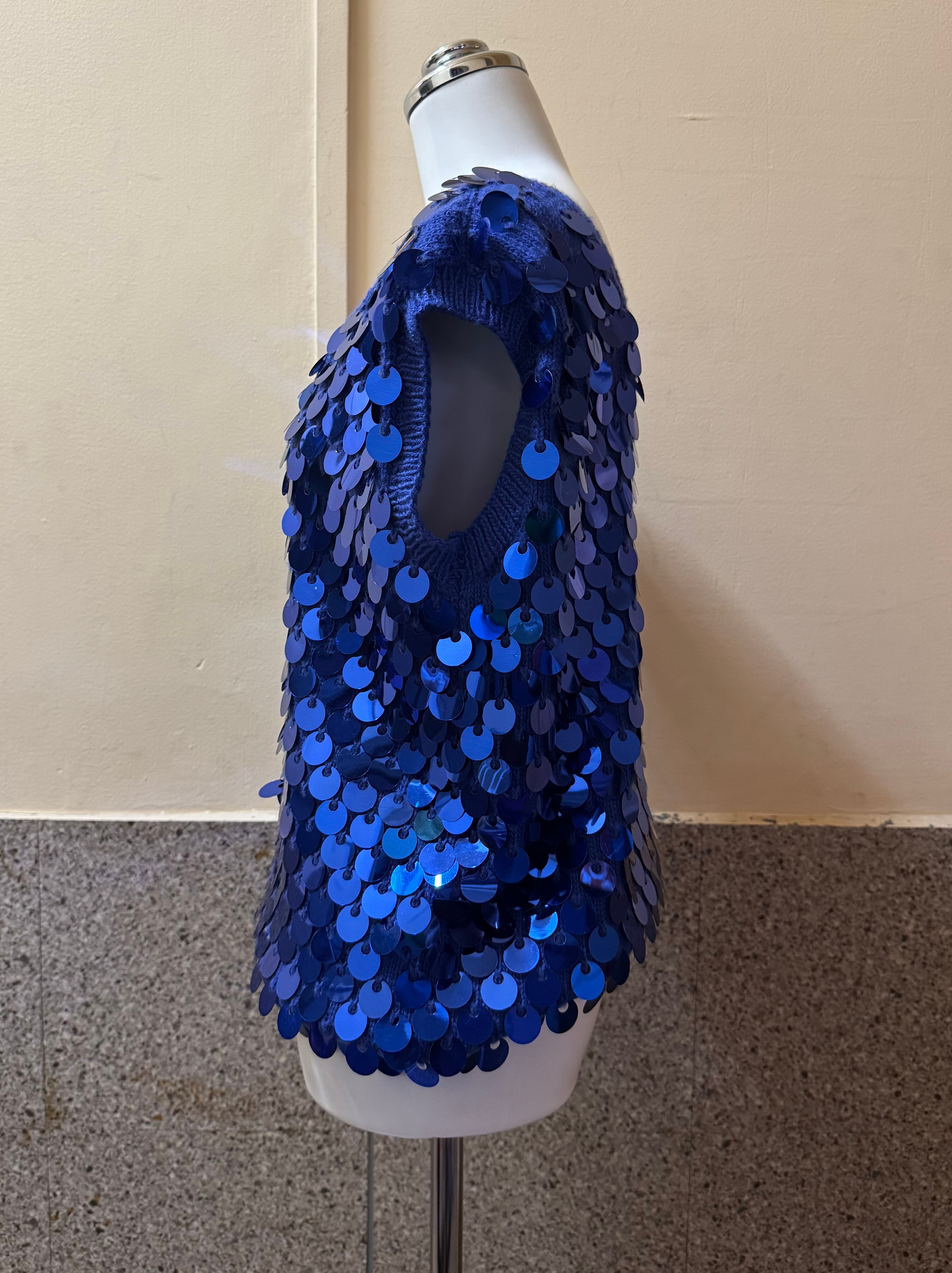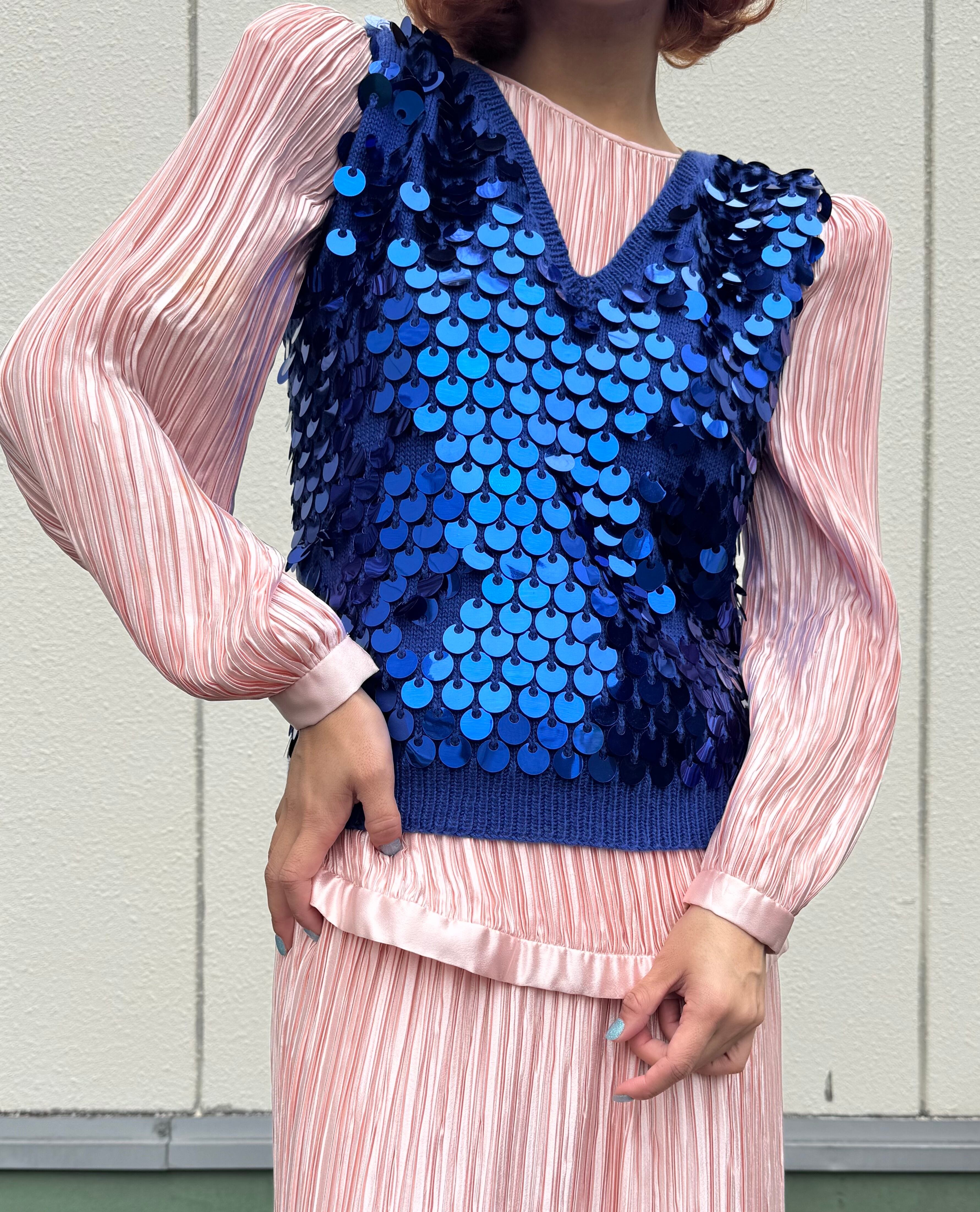 夏にスリーブレスで着用しても可愛いかも!なキラキラニットベスト