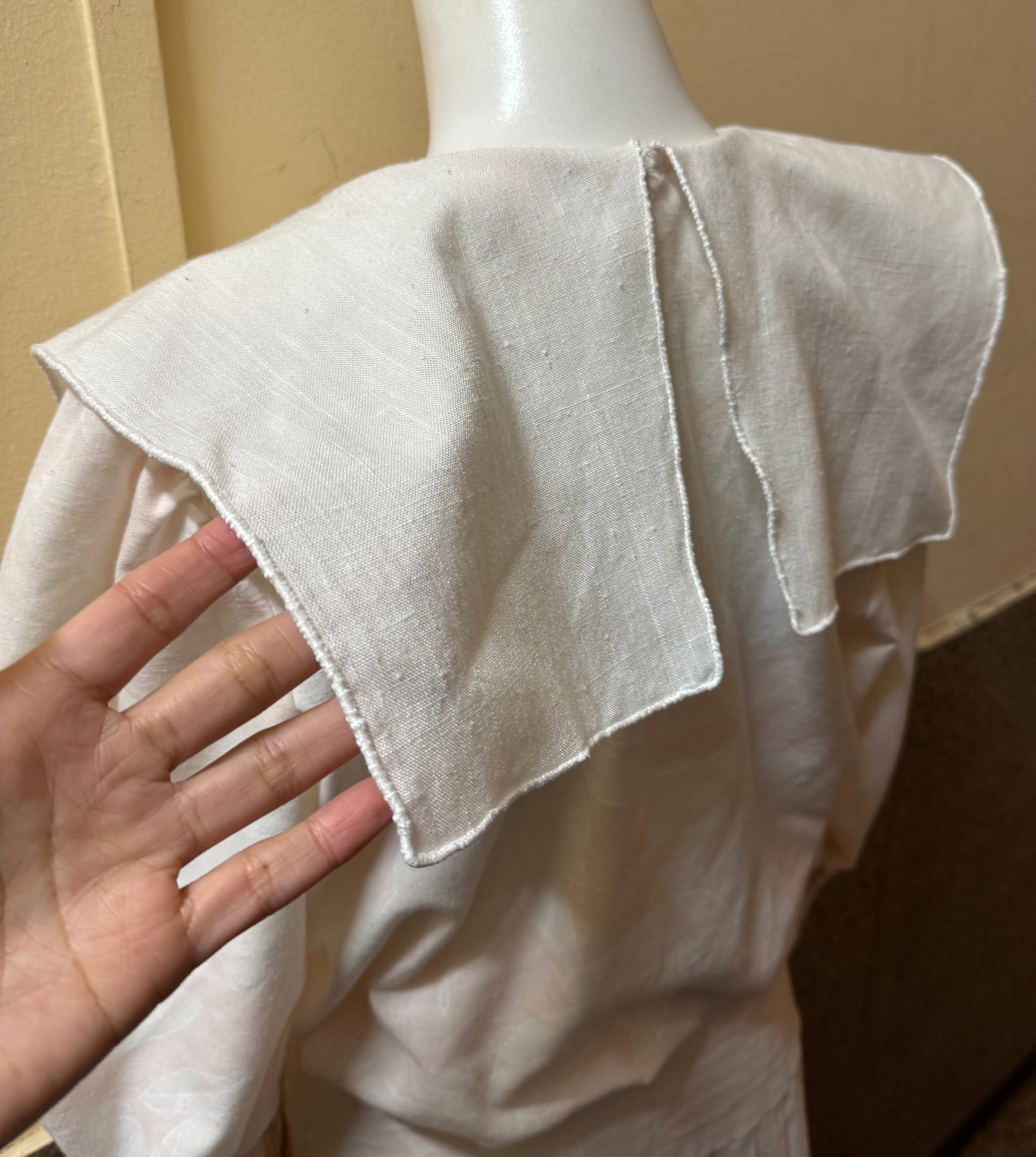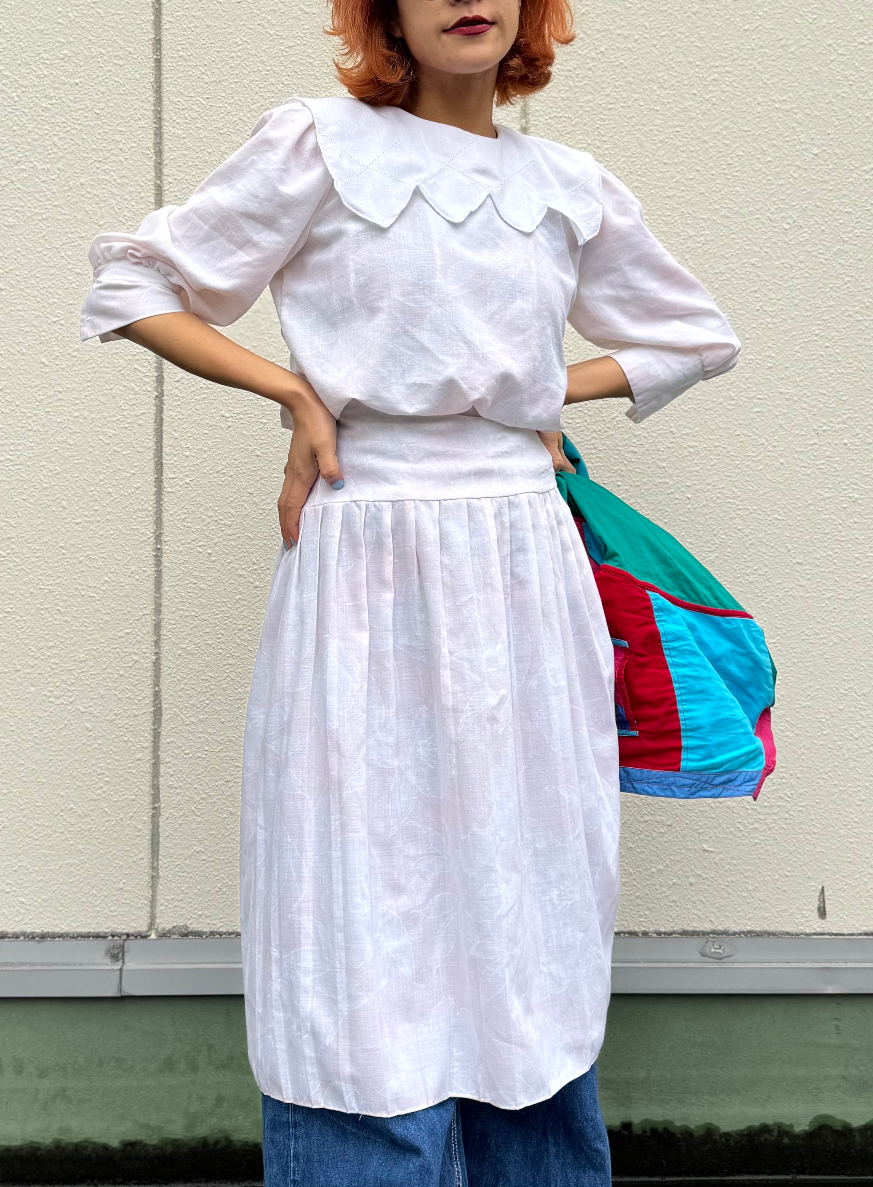 素材の特性上全体的に毛羽立ちが見受けられますが、着用には問題なくまだまだ長く着て頂けるワンピースです。