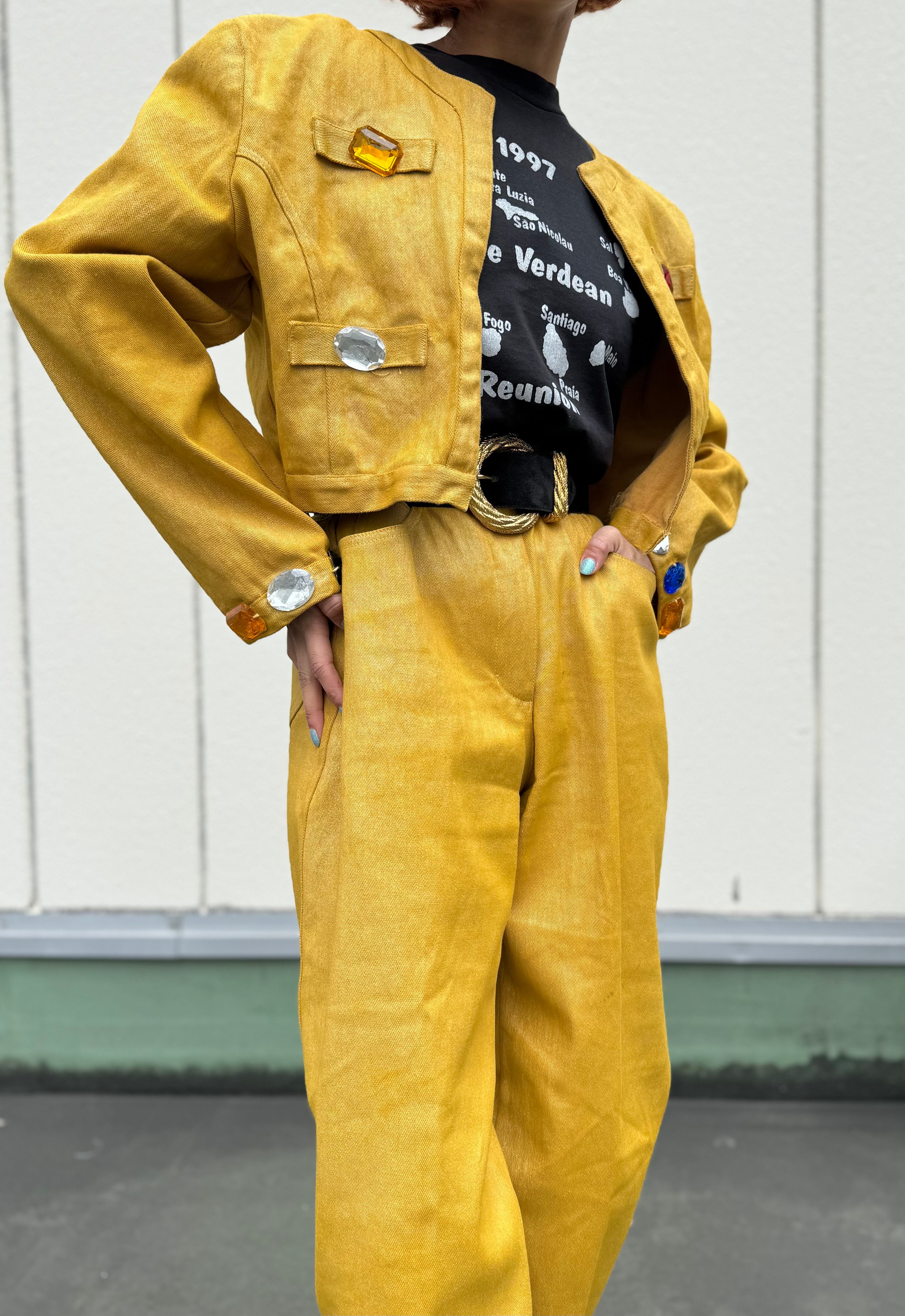 サイズは少し大きめで、ぽってりしたパンツのシルエットもたまらん感じです。