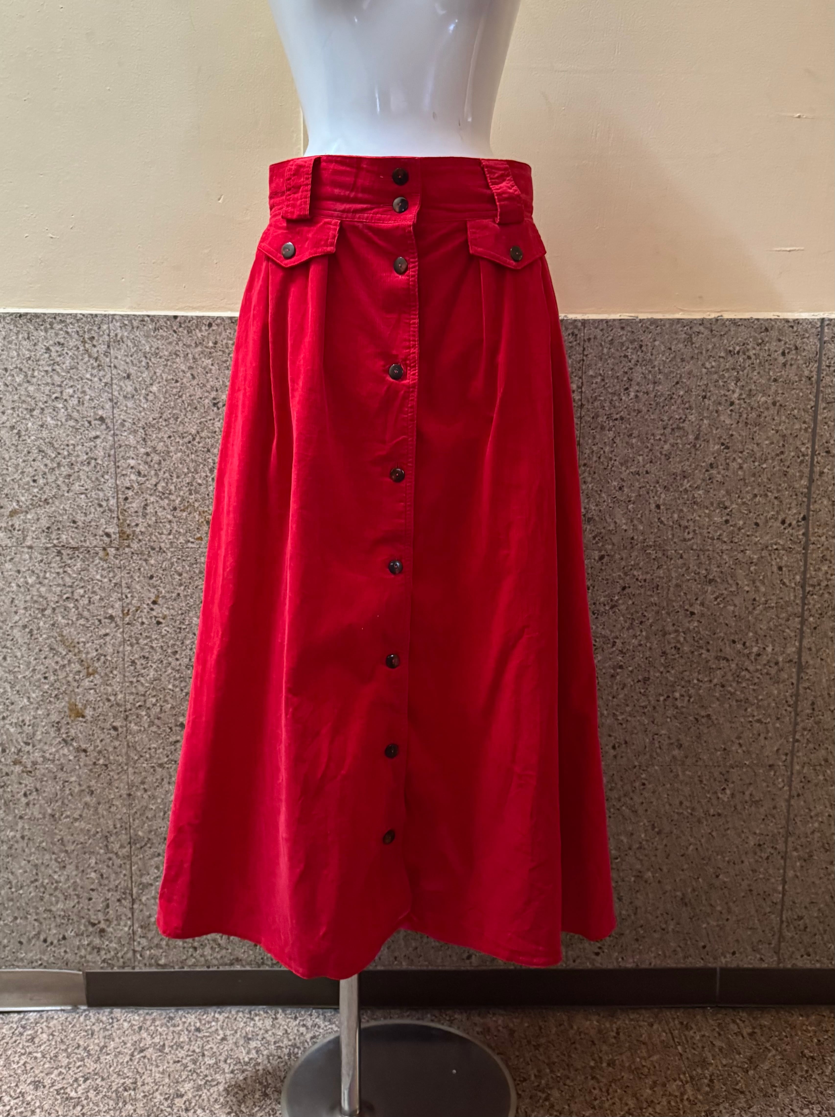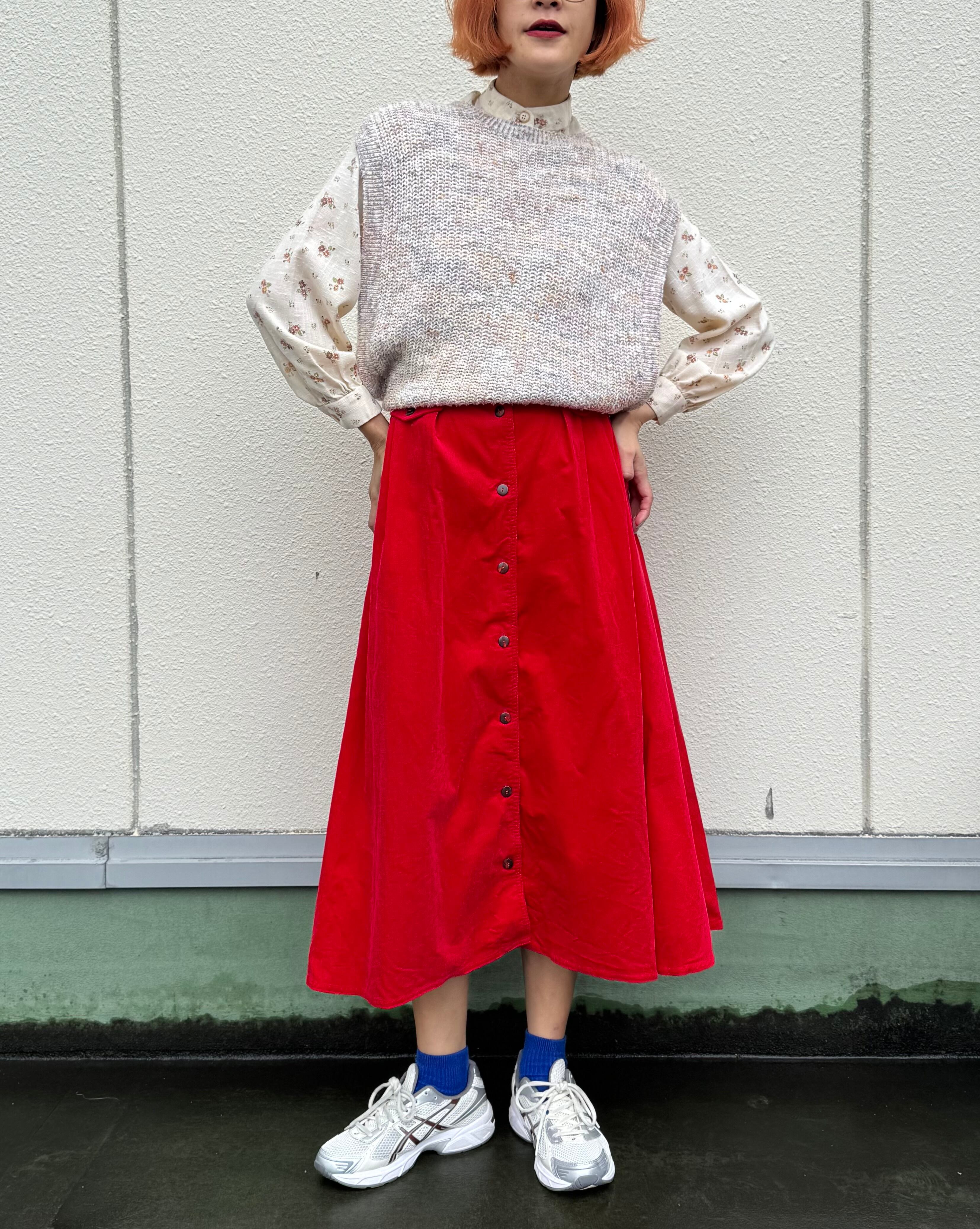 目が覚める様なビビッドな赤のコーデュロイスカート