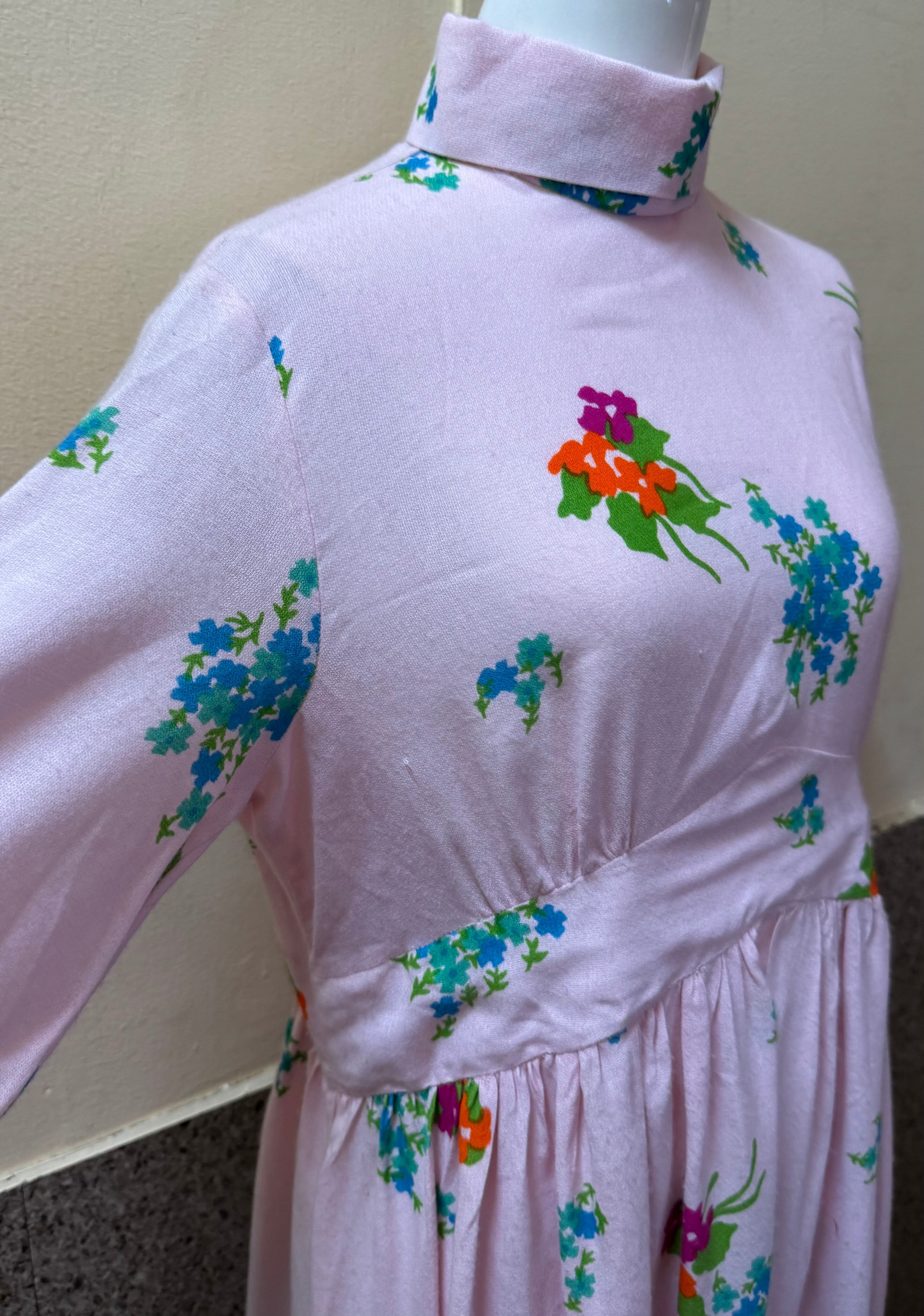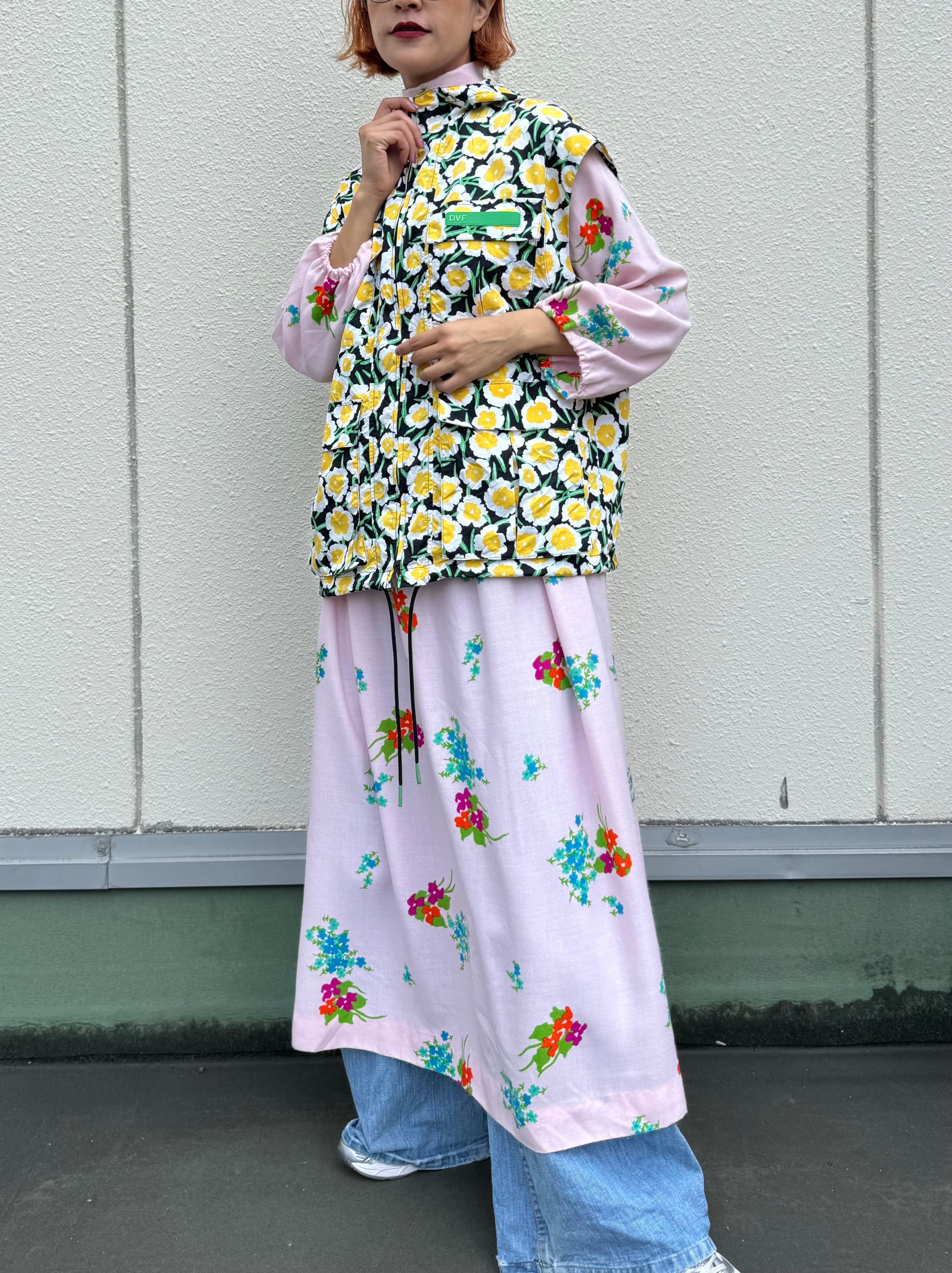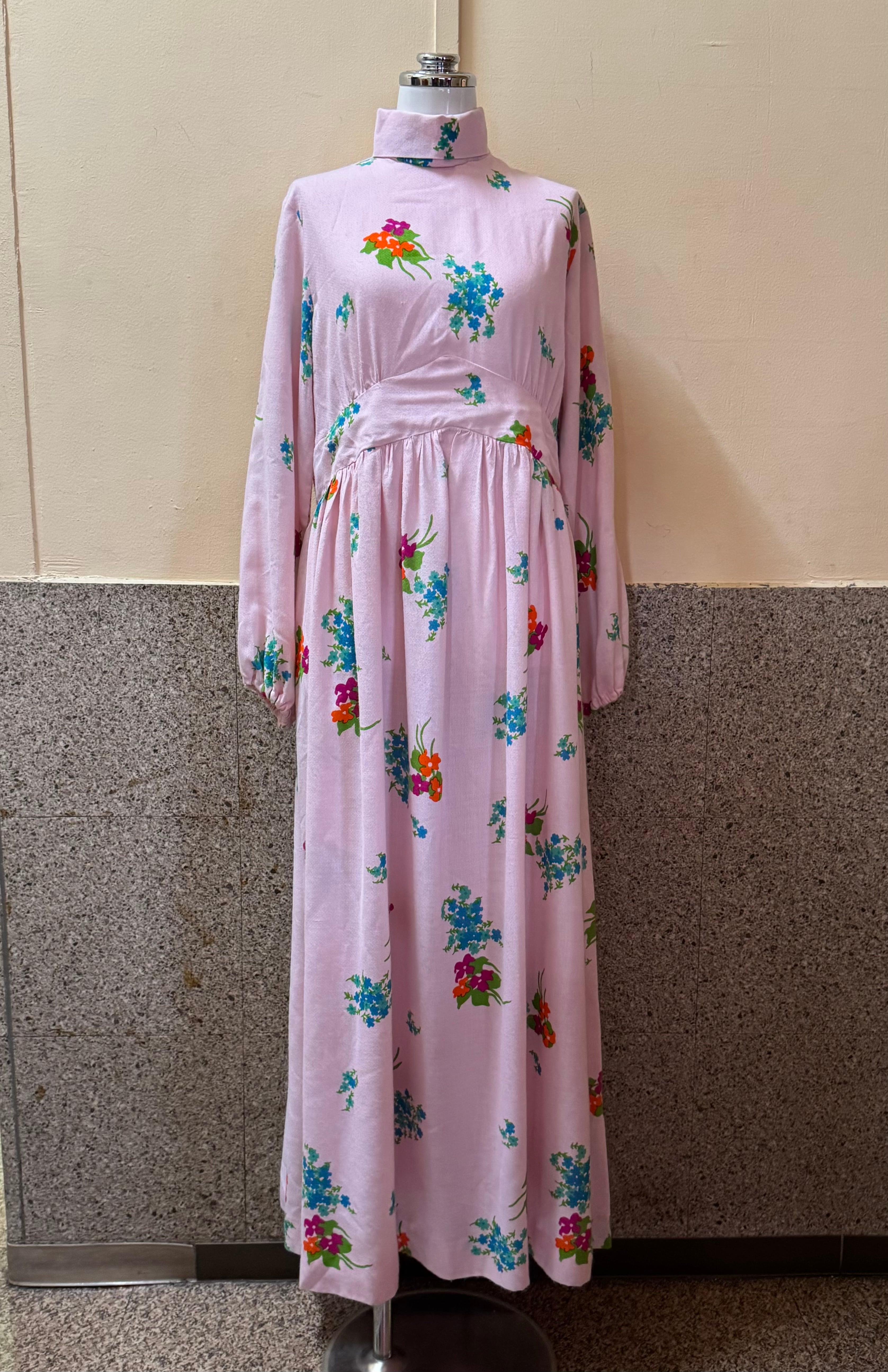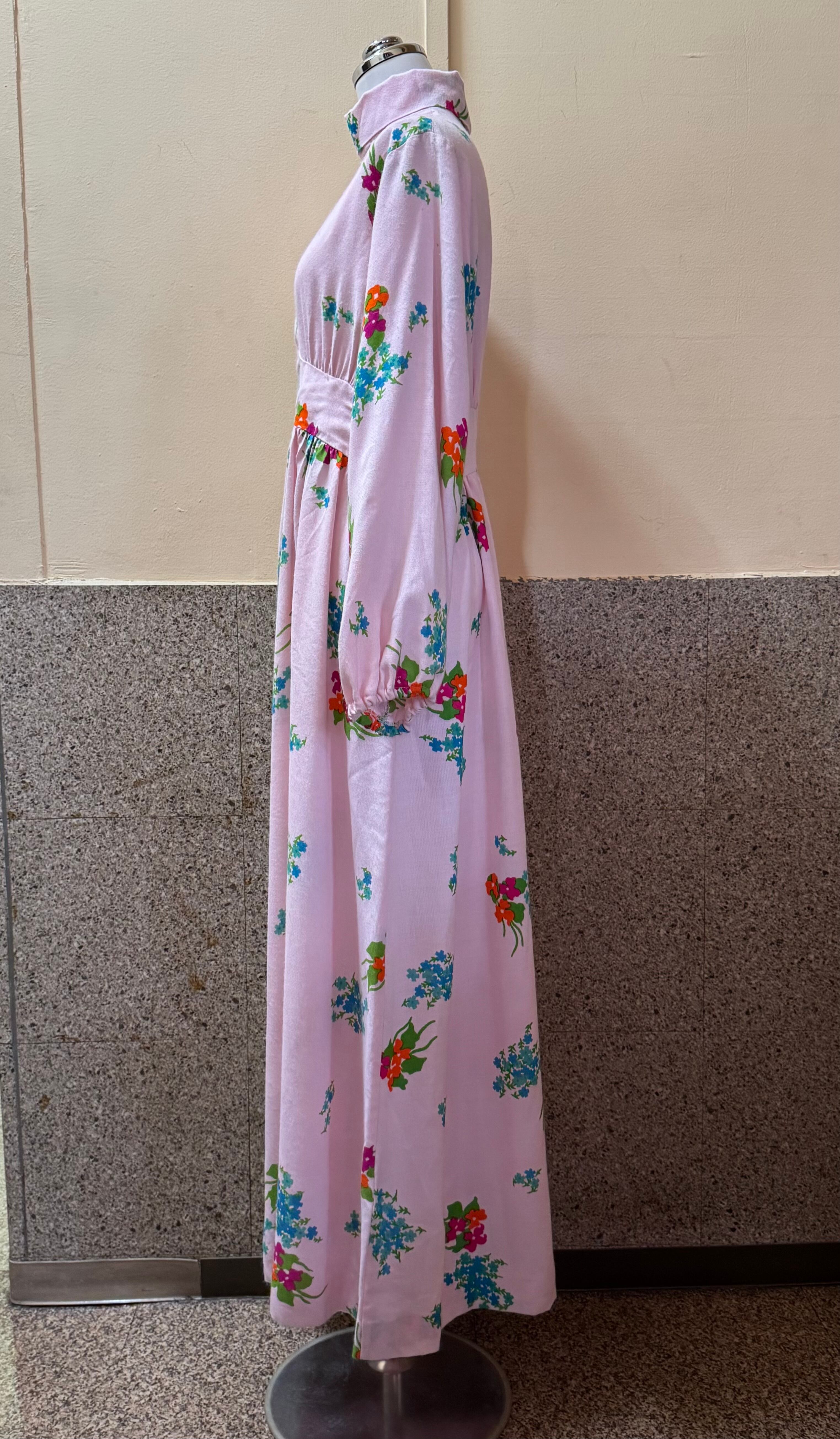 淡いピンクベースの花柄ワンピース