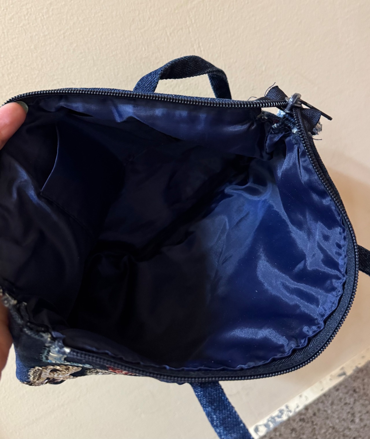 角が擦れてダメージがありますが、デニム地でそれもまた味ですね。