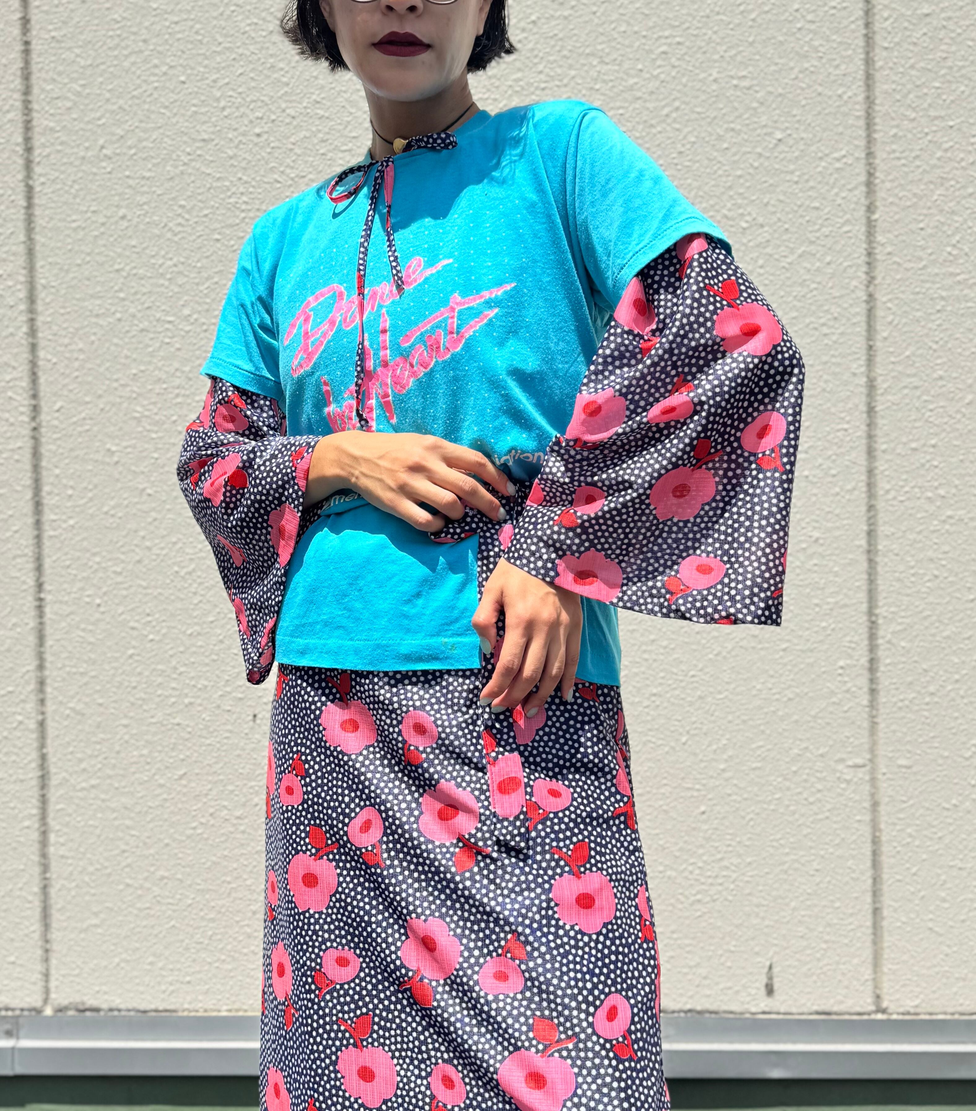 水色×ネオンピンクのcuteなvintage Tee