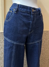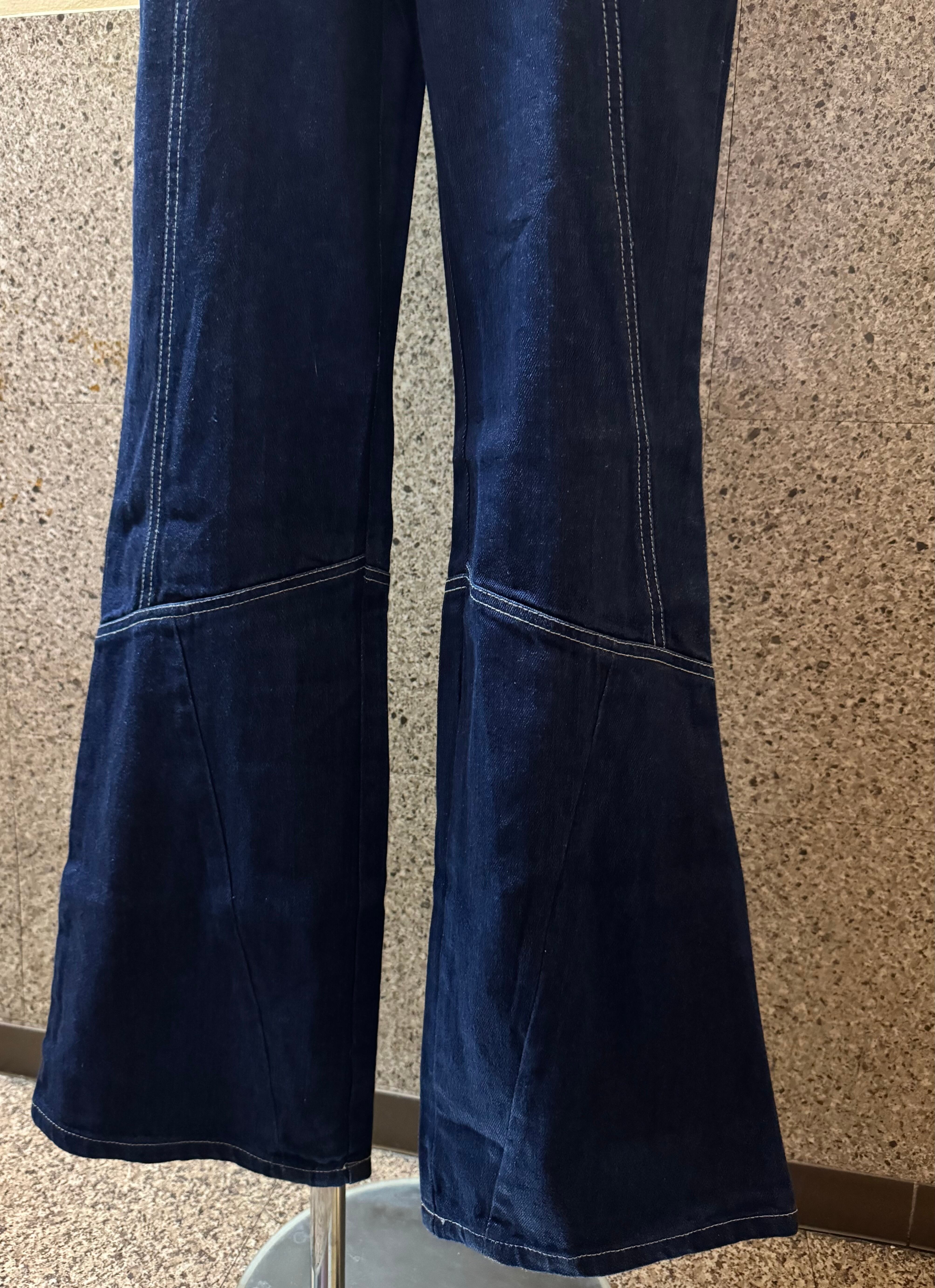 フレアなシルエットと濃いめのインディゴで重ね着に使えそうと思って買い付けました。