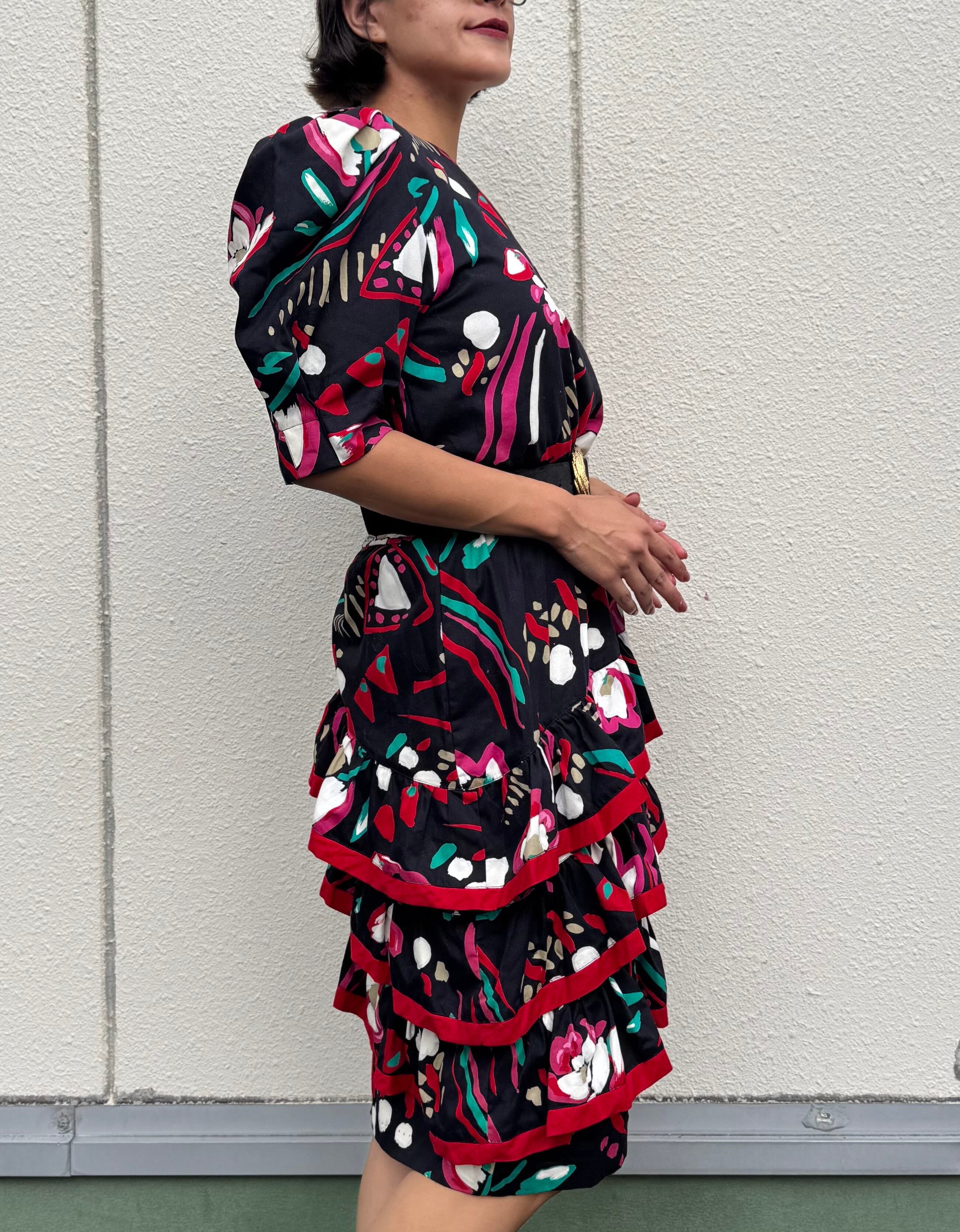 ボリュームのあるパフショルダーにフリルのスカートのThe80s スタイルのワンピース⭐︎