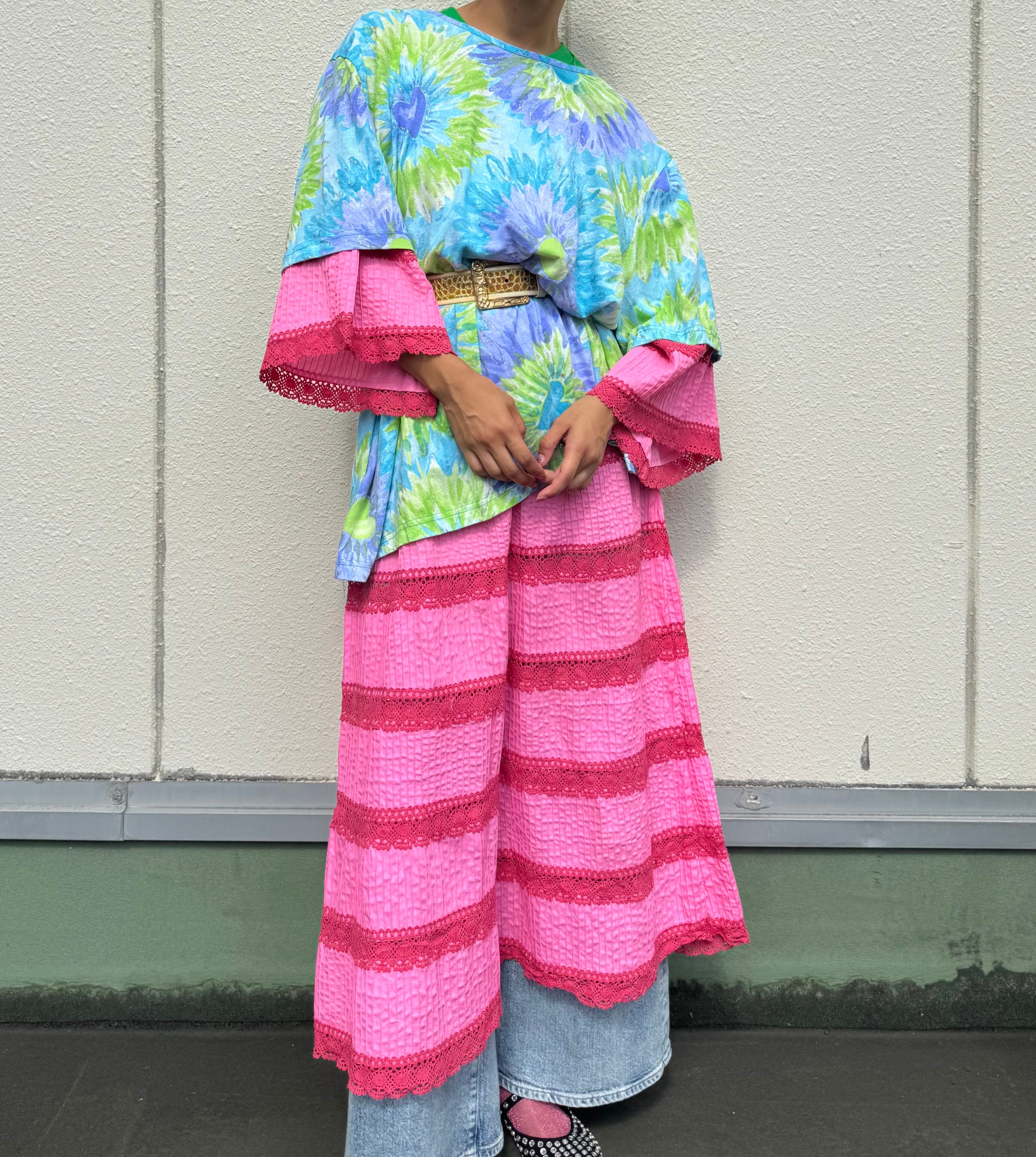 鮮やかなピンクのメキシカンマキシワンピース