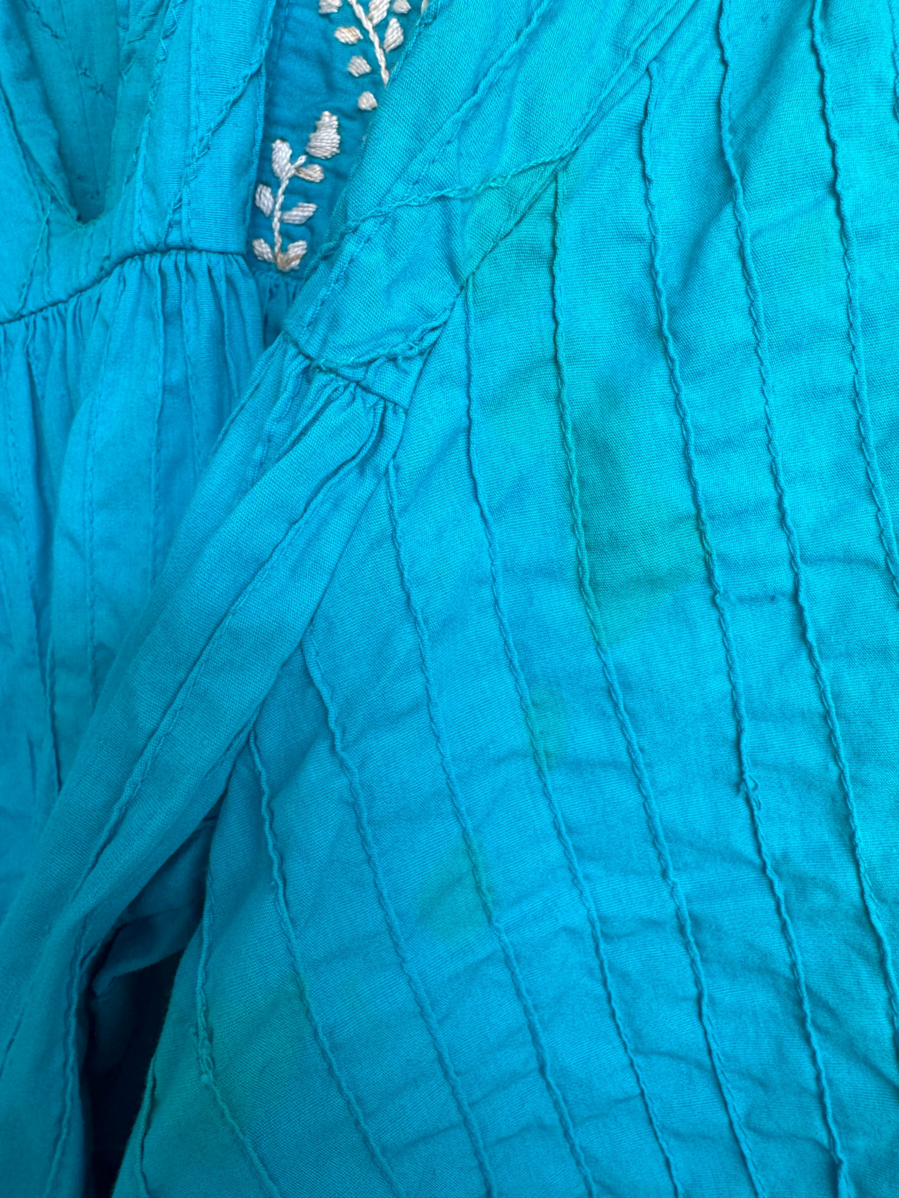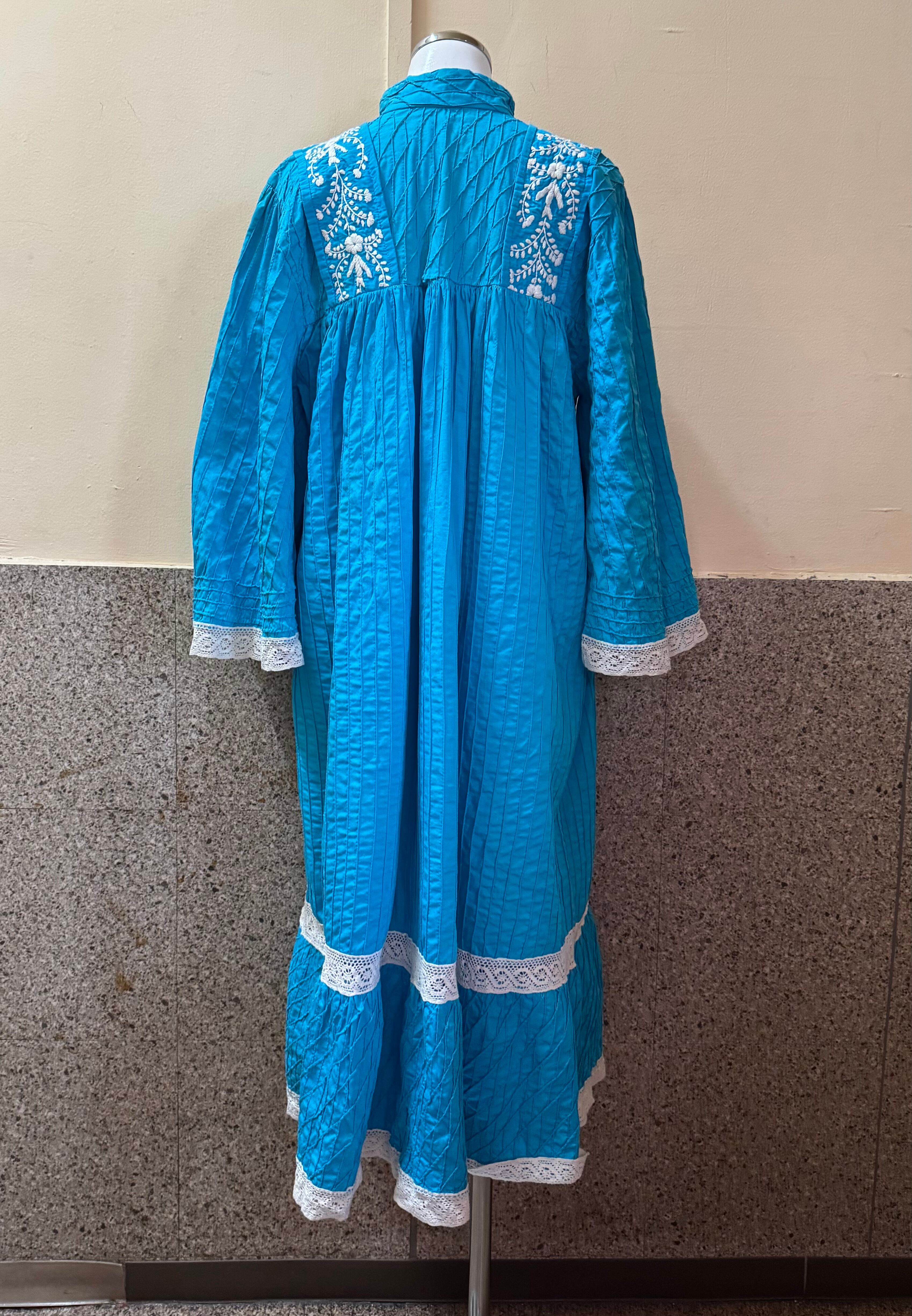 目が醒める様なブルーに白い刺繍が素敵なメキシカンワンピース