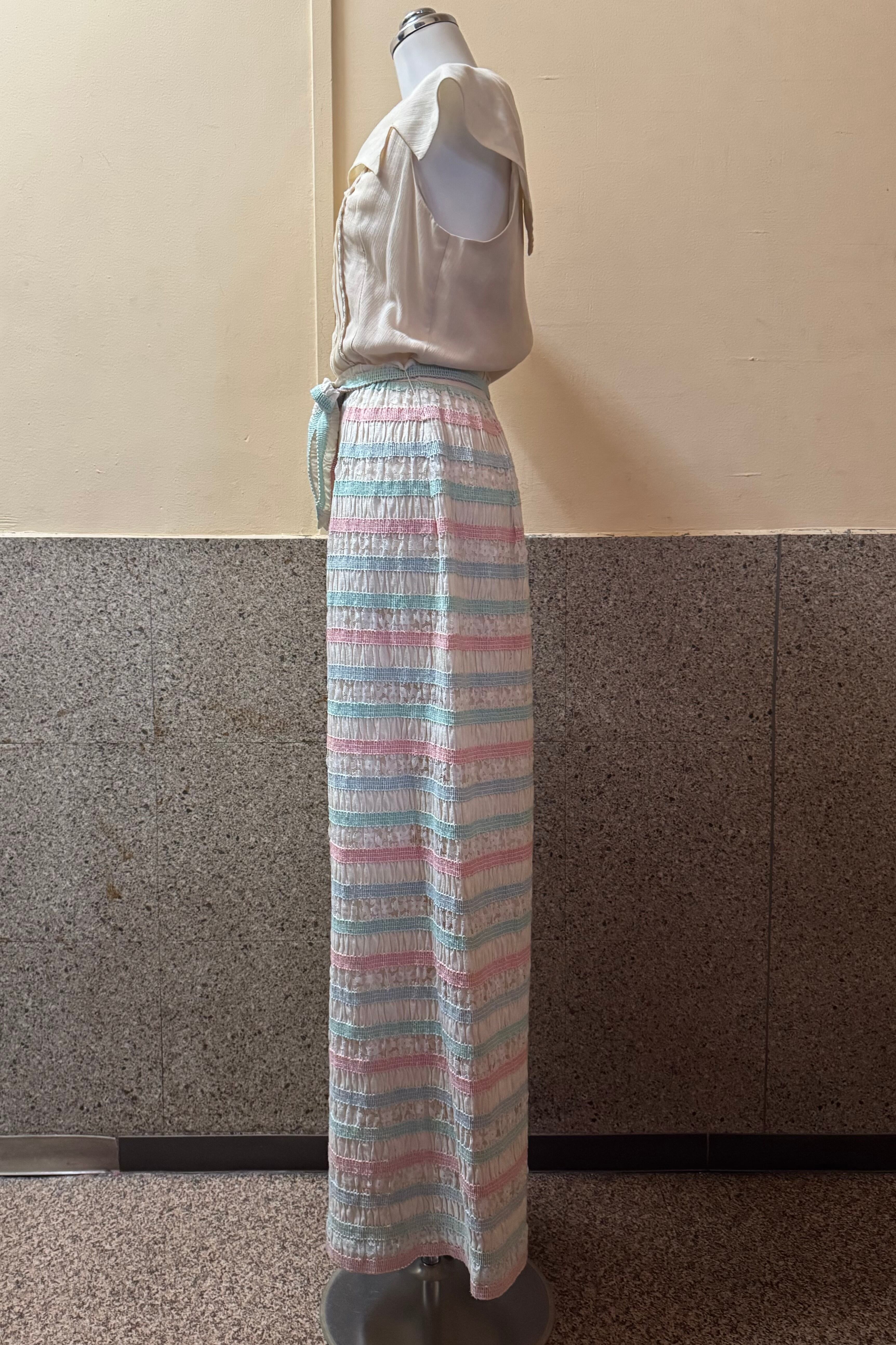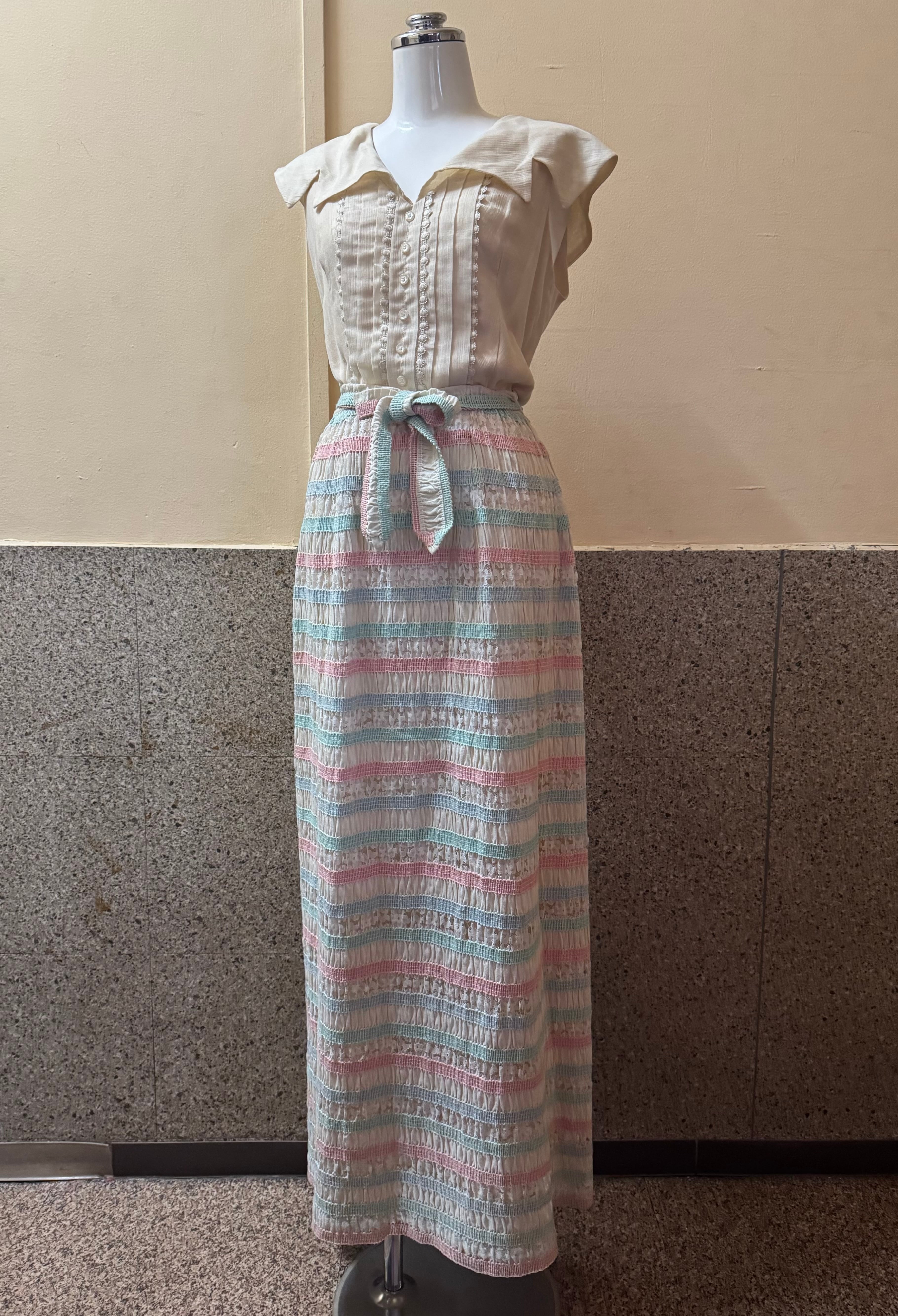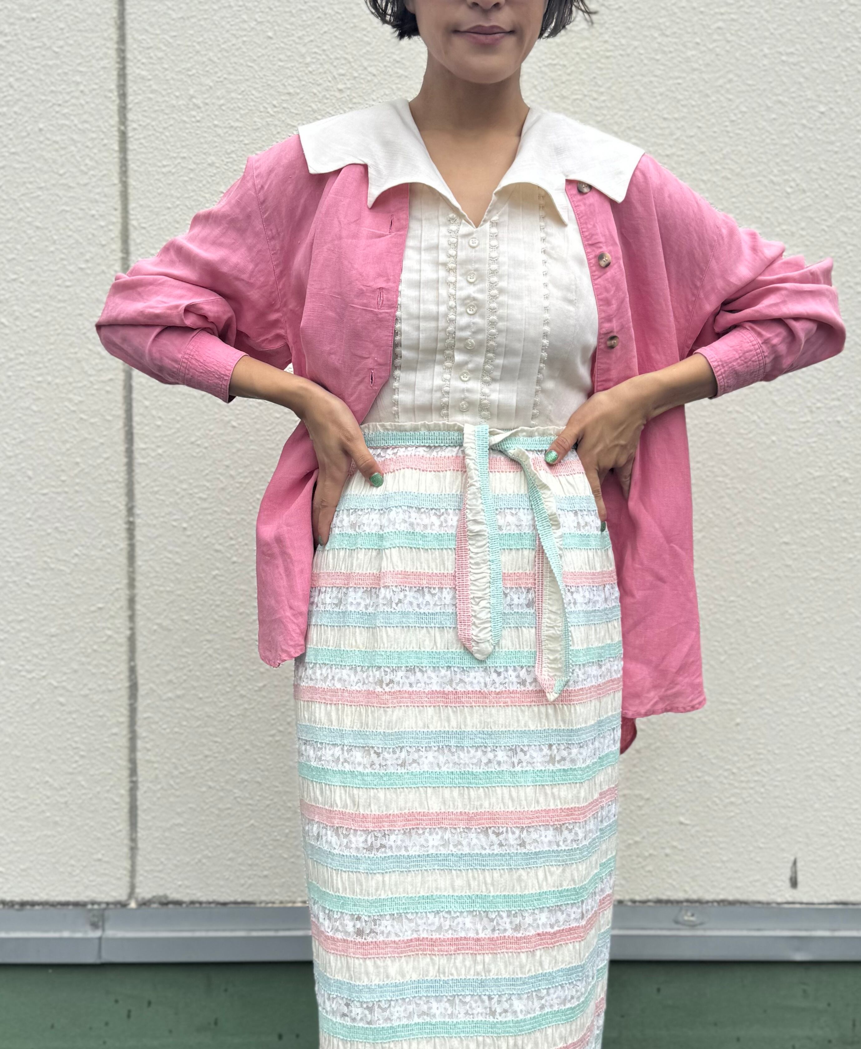 パステルカラーのリボン×レースデザインが素敵なスカート部分と、大きめの襟が特徴的。