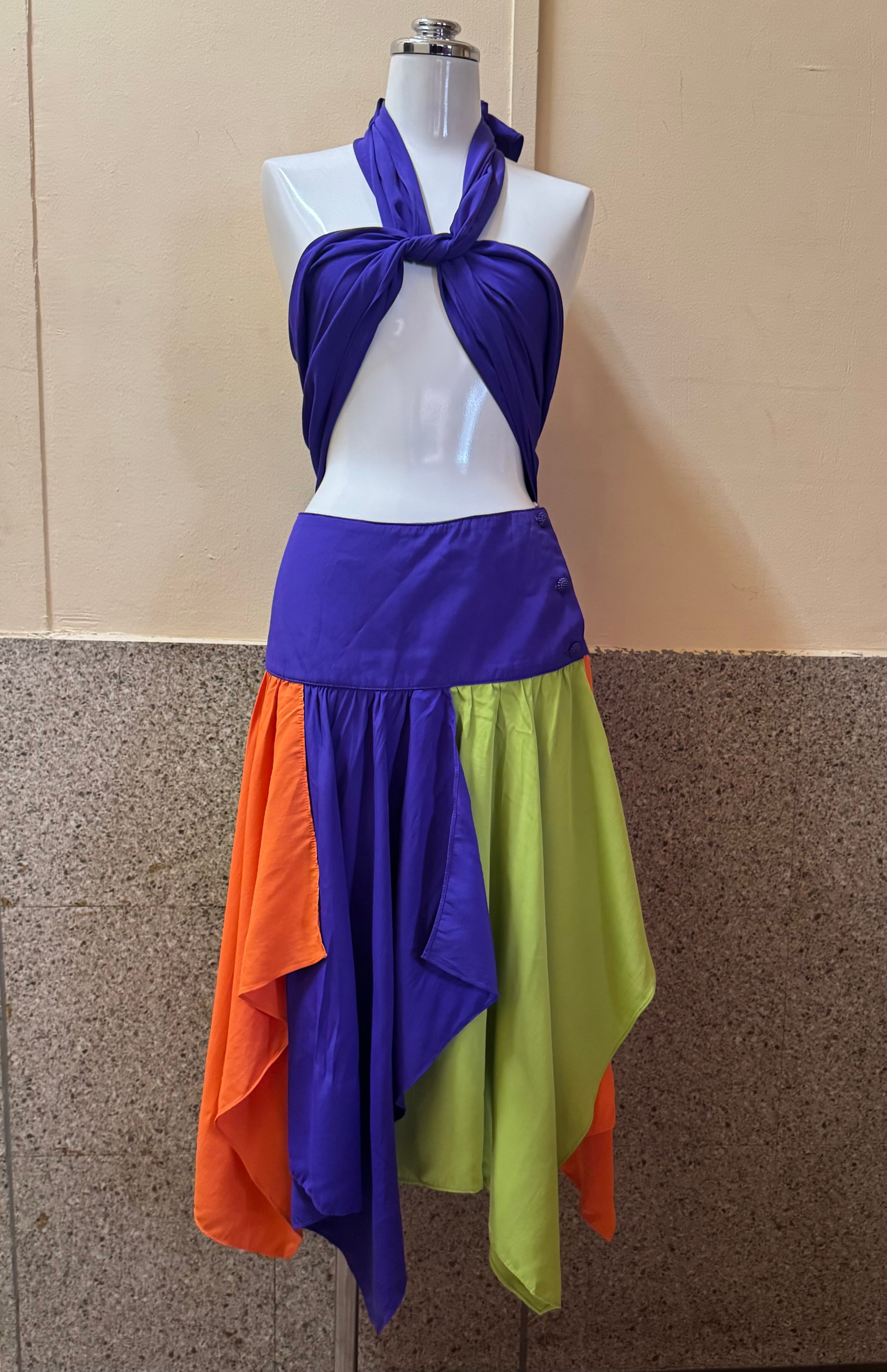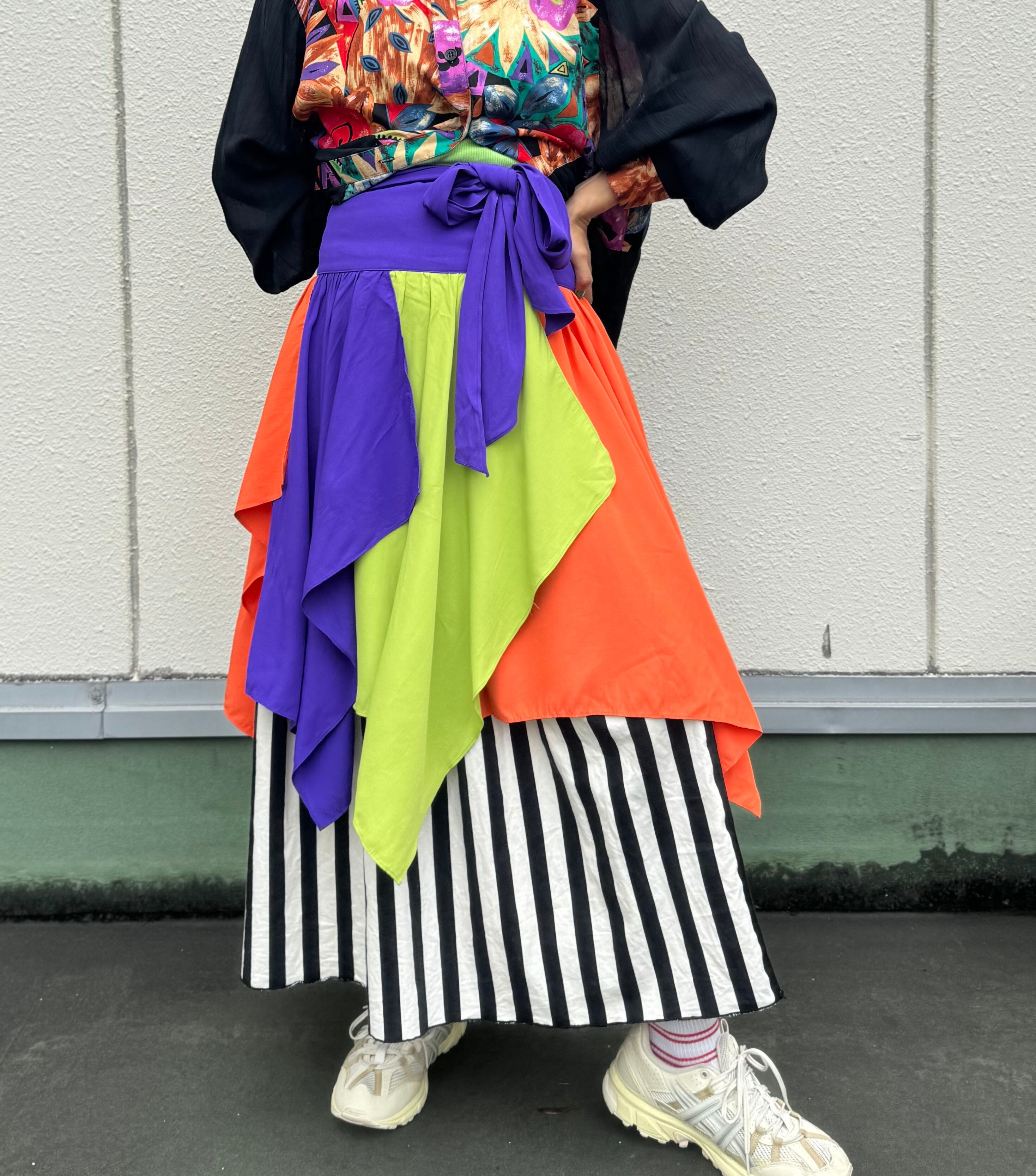 ウエスト部分に付いている生地はウエストに巻くもよし、写真の様にベアトップの様にしてTeeに重ねるのもオススメ。