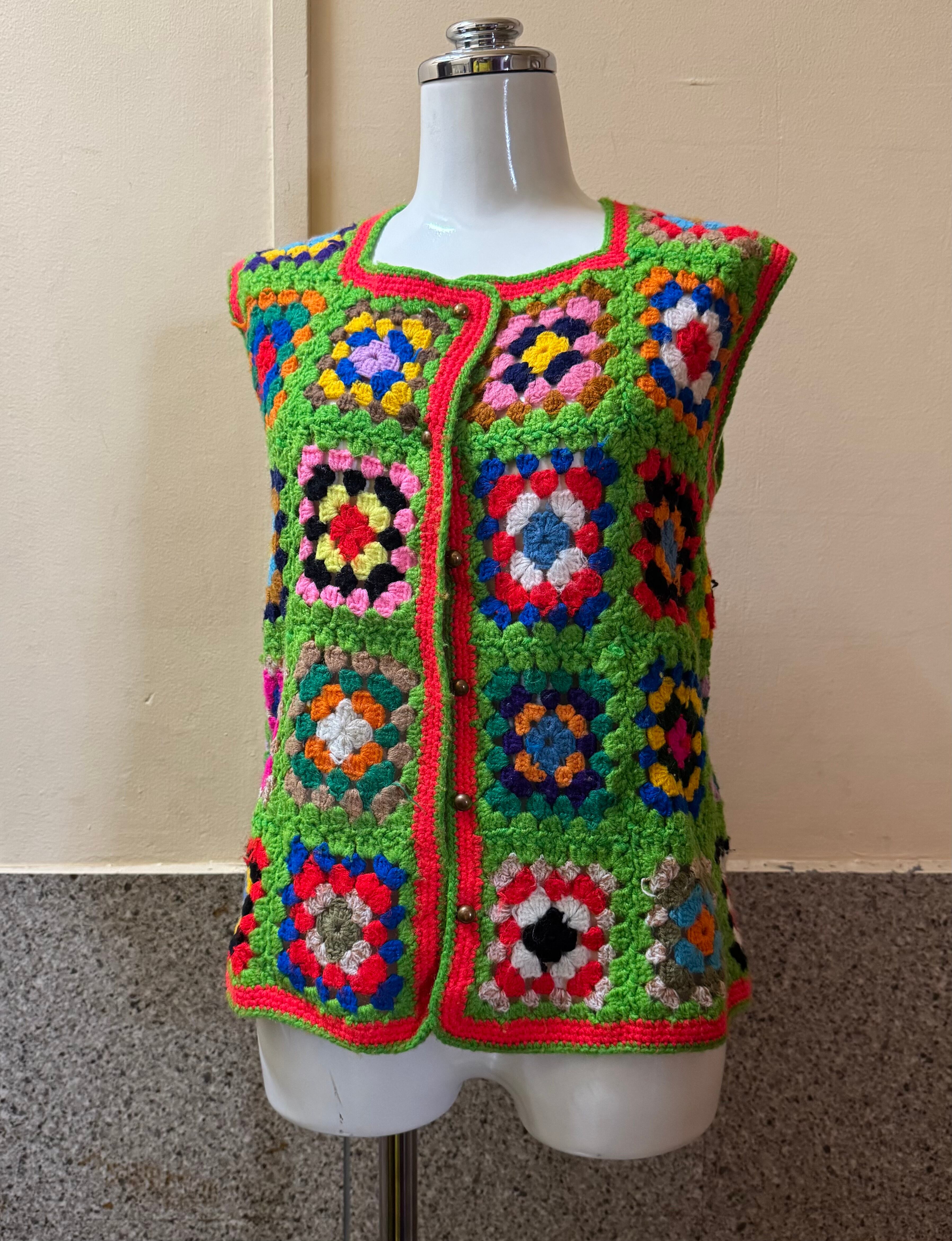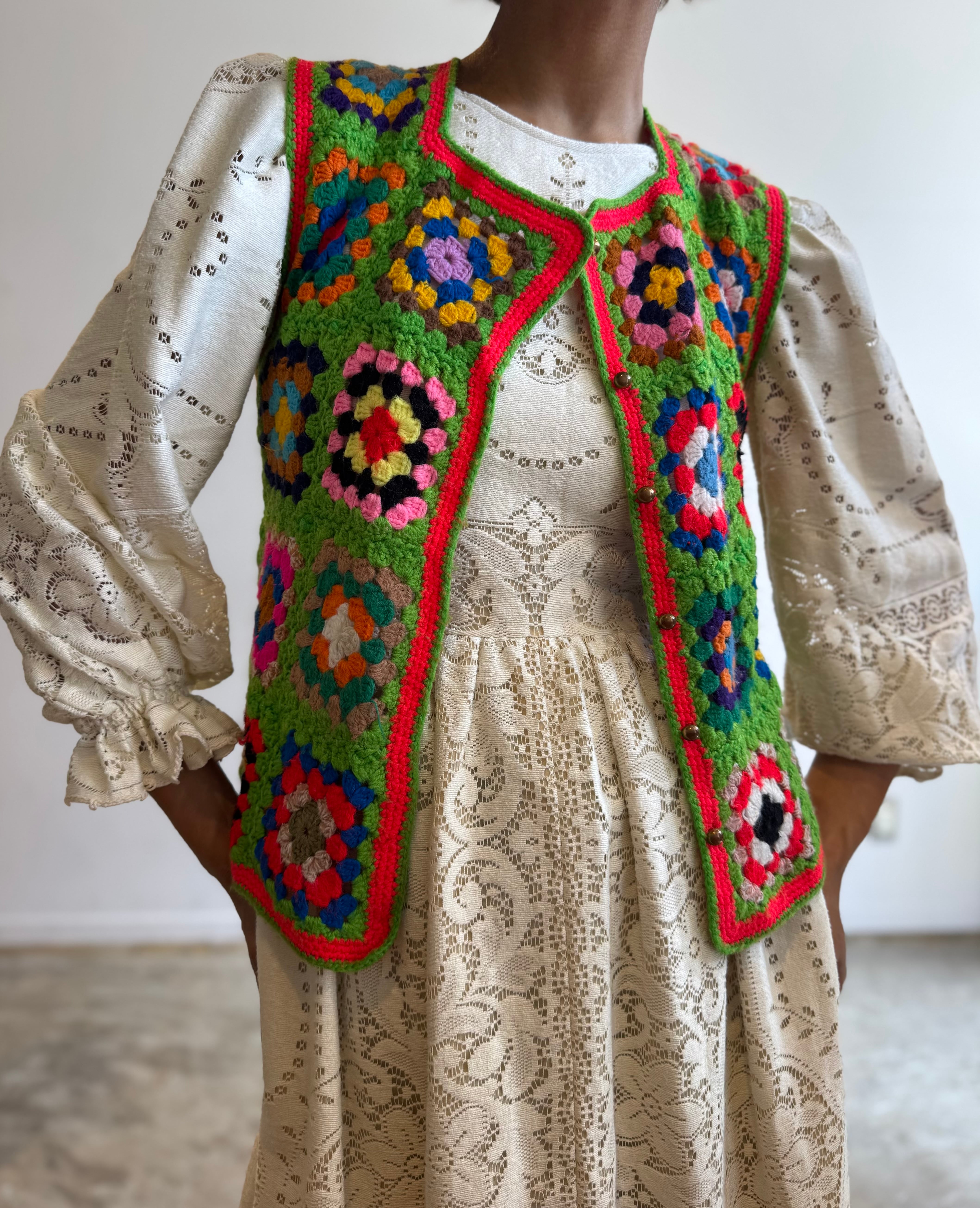 配色が最高なハンドクロシェベスト