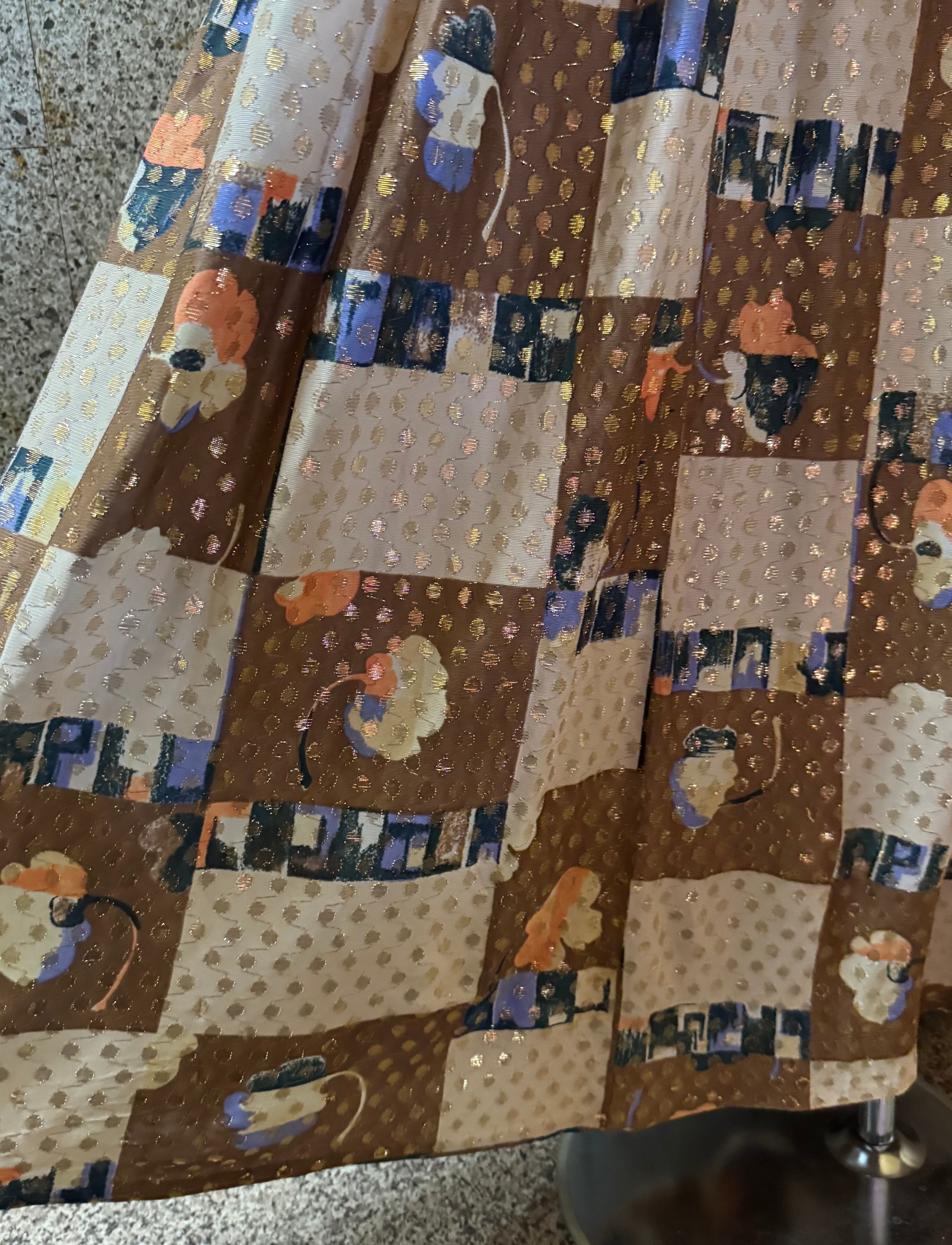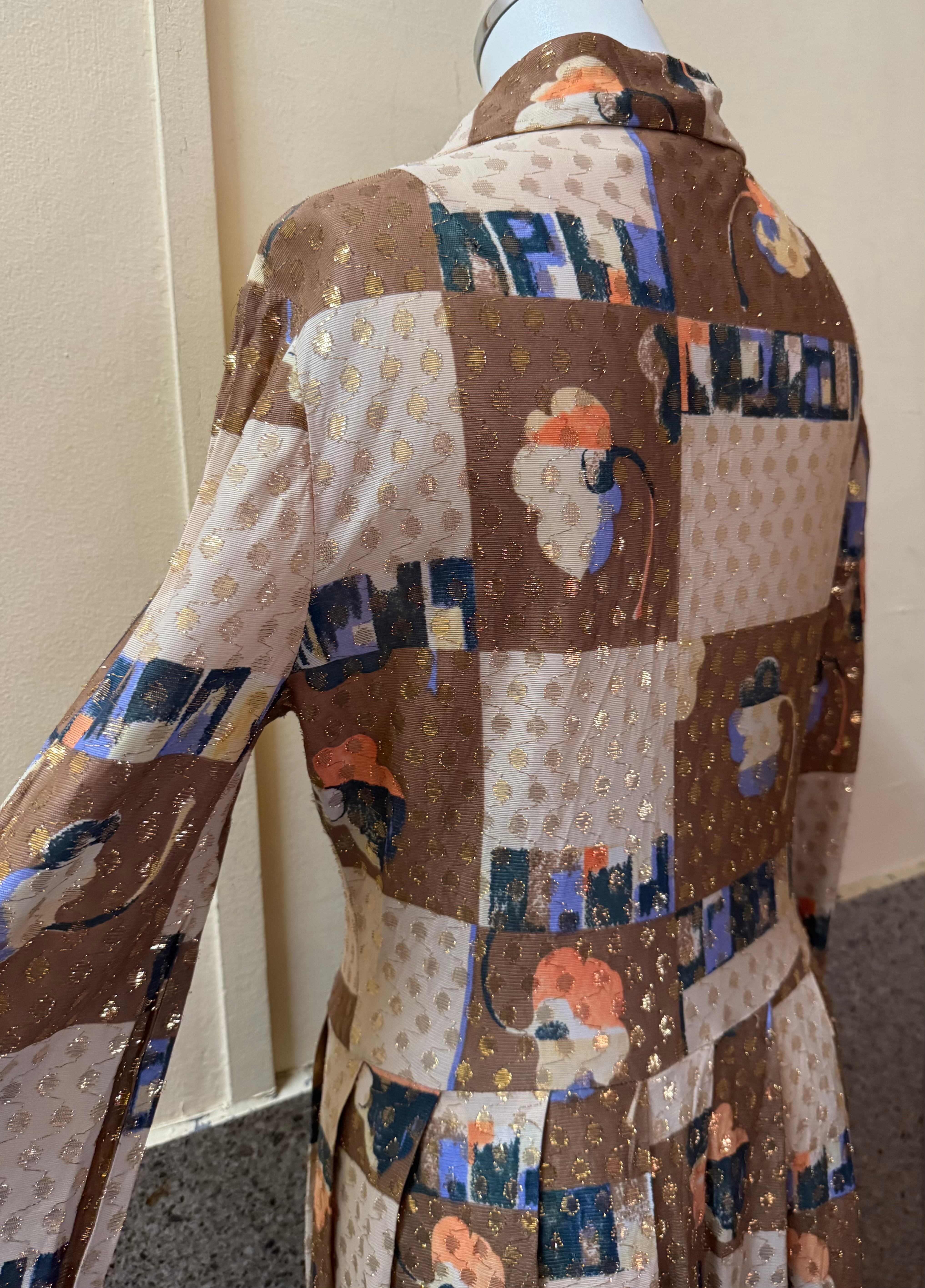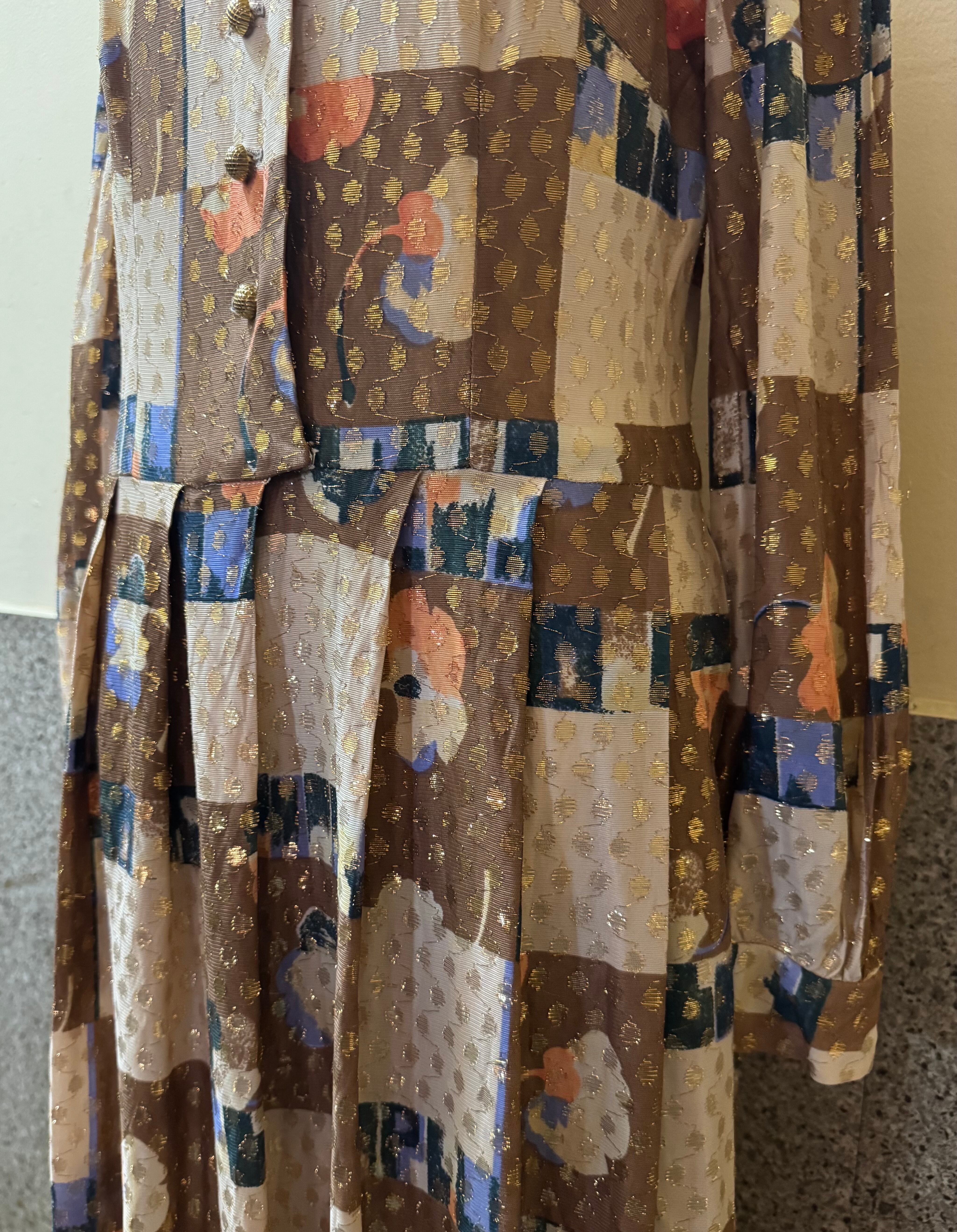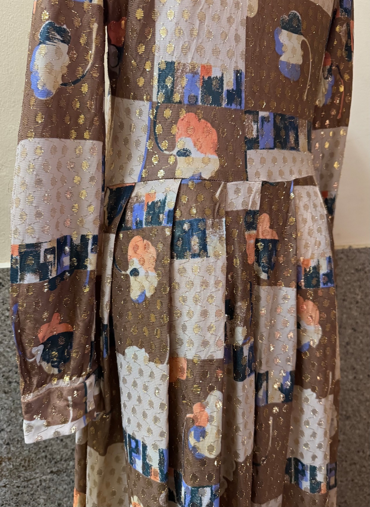 全体的にラメ糸で模様が描かれた70sのワンピース