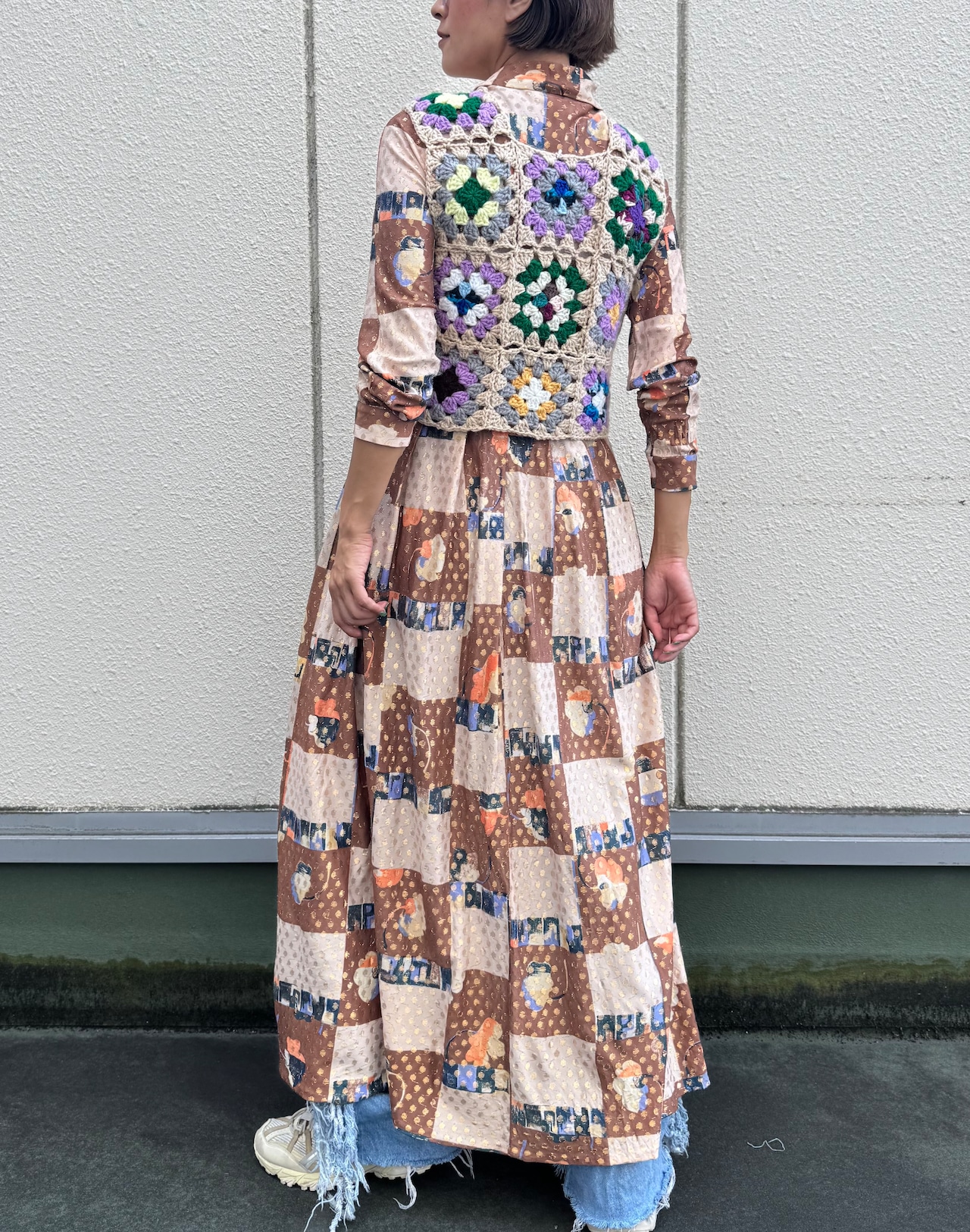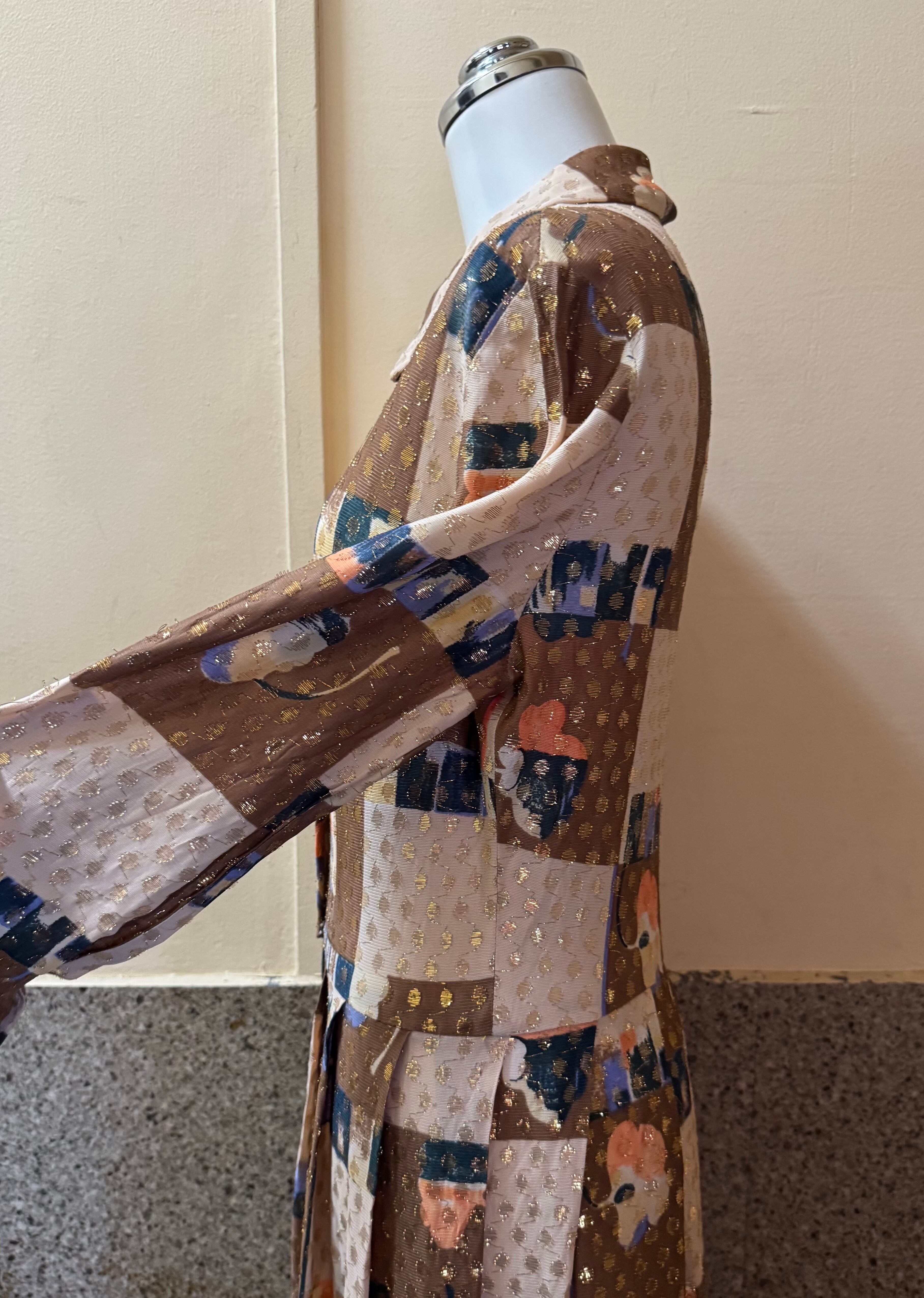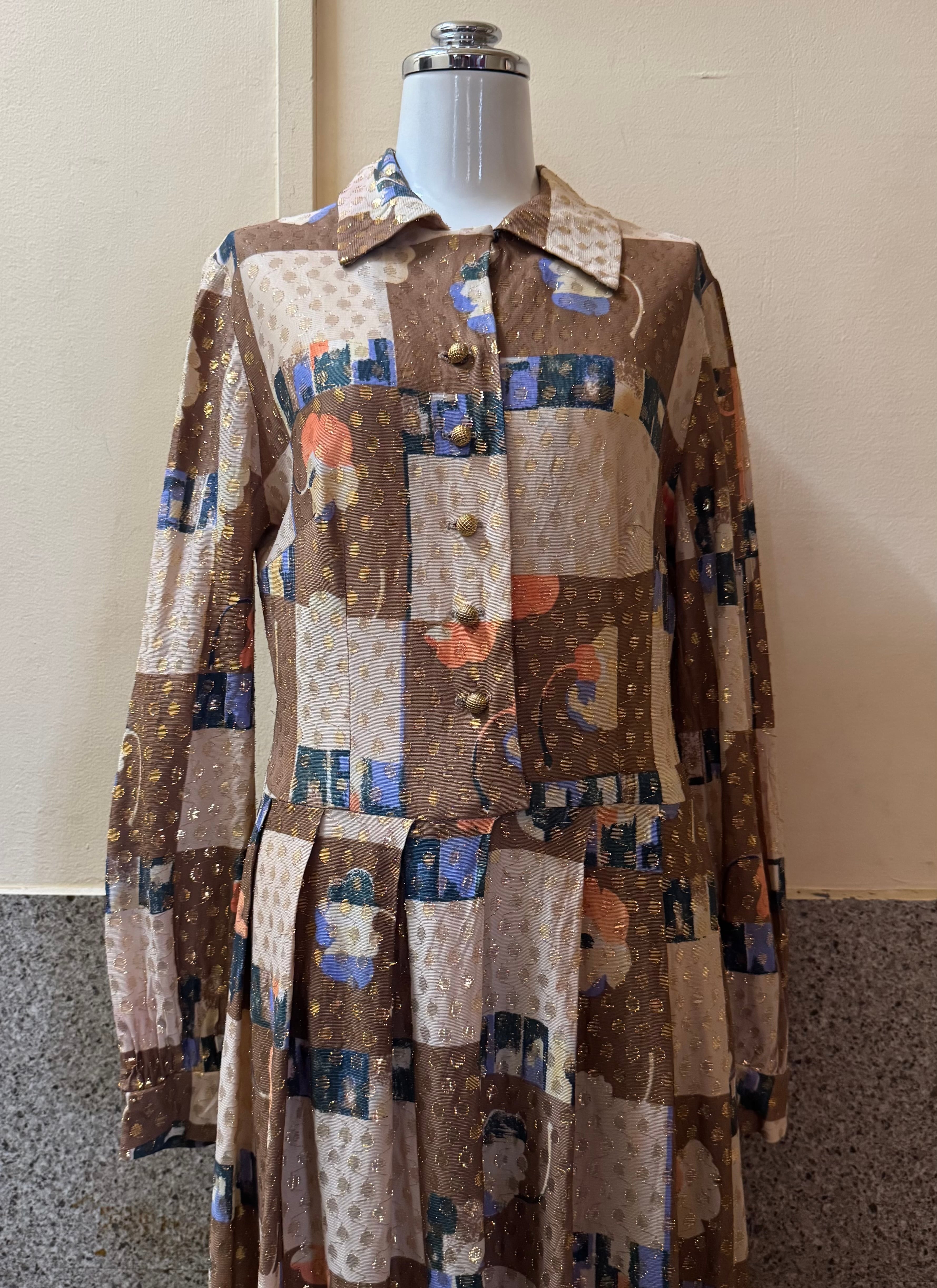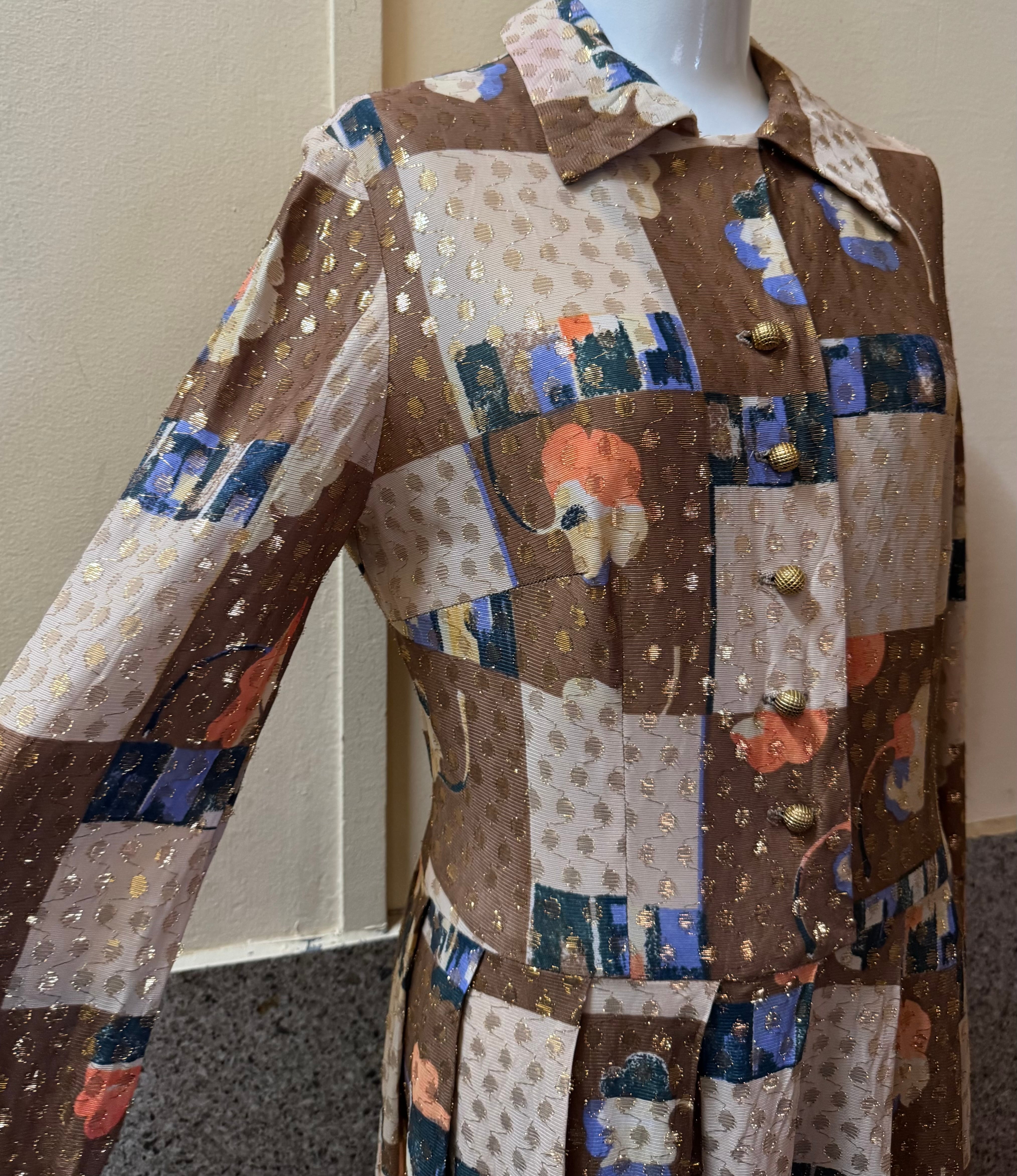 全体的にラメ糸で模様が描かれた70sのワンピース