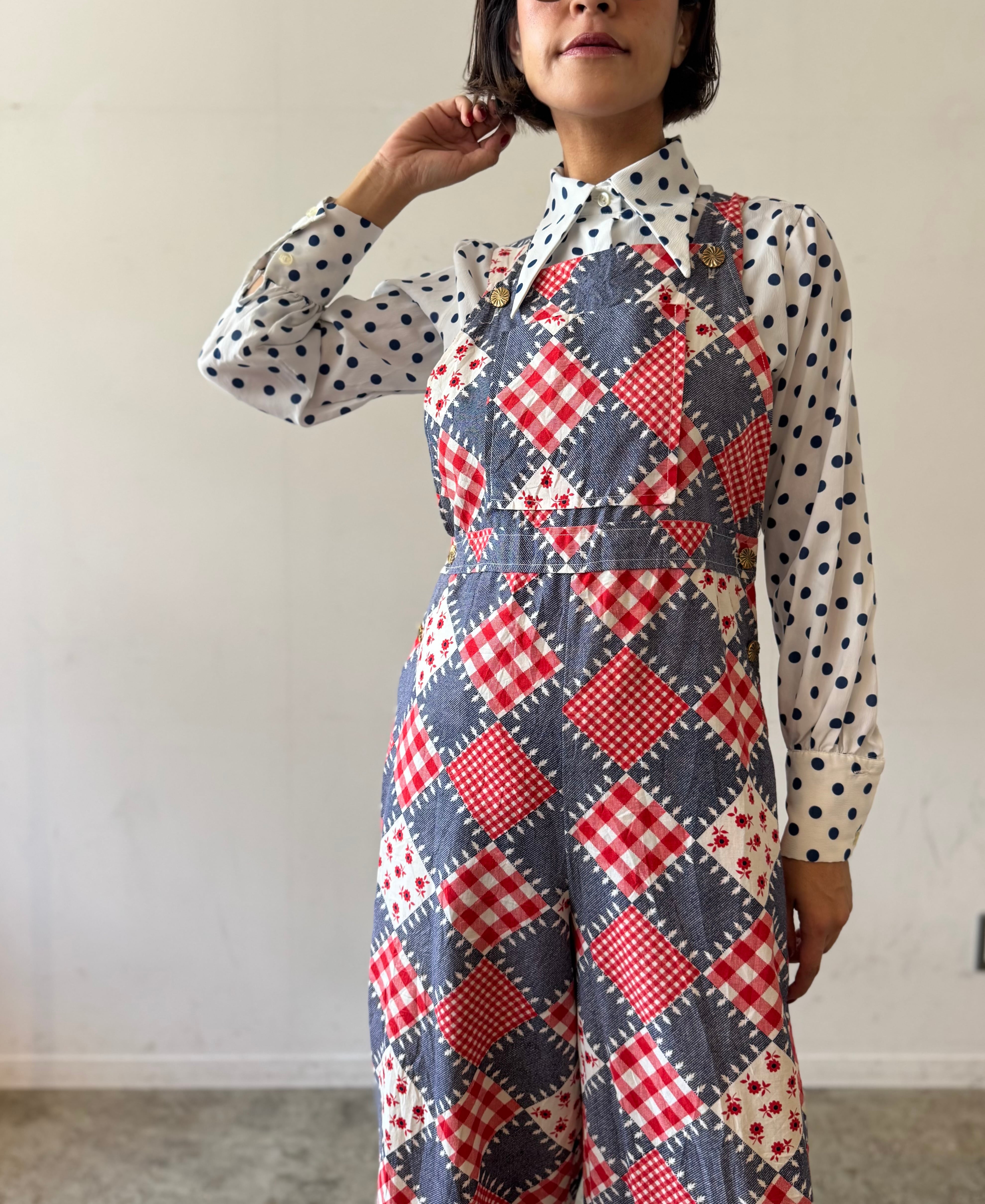 シャープな襟が特徴的な70sのポリシャツ