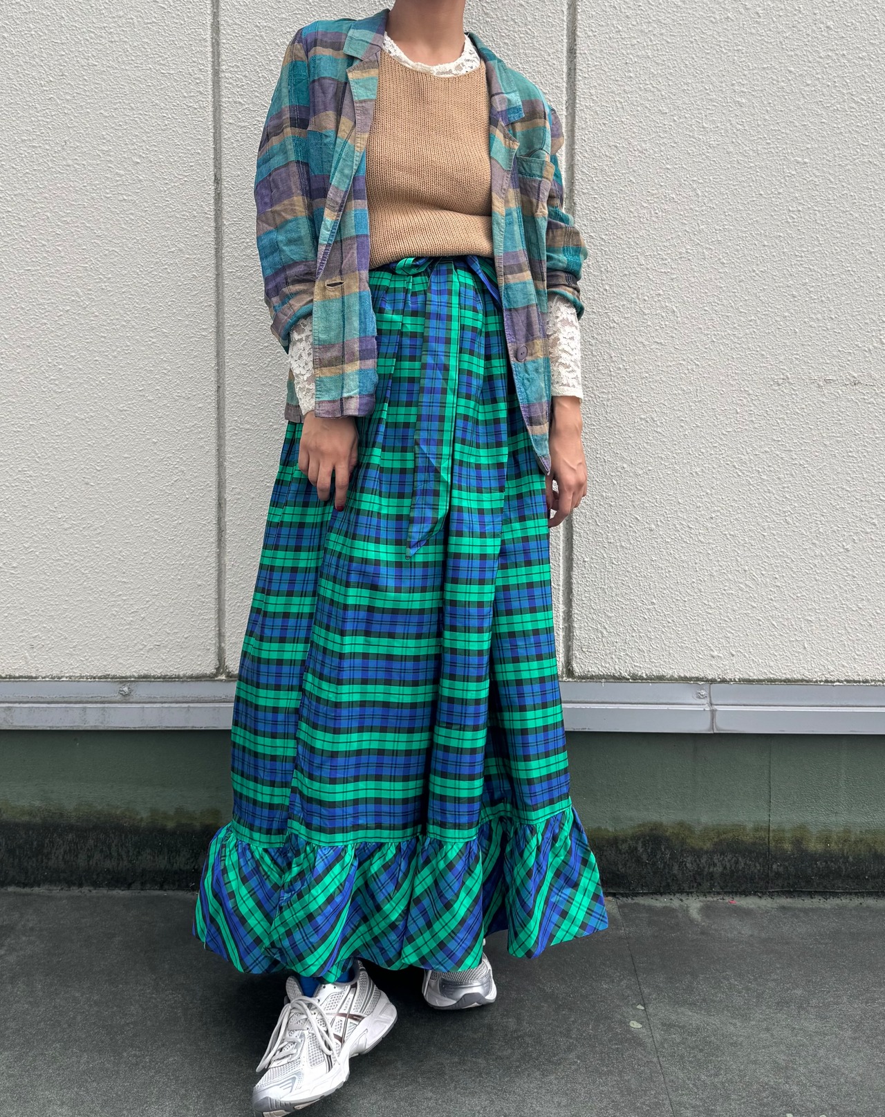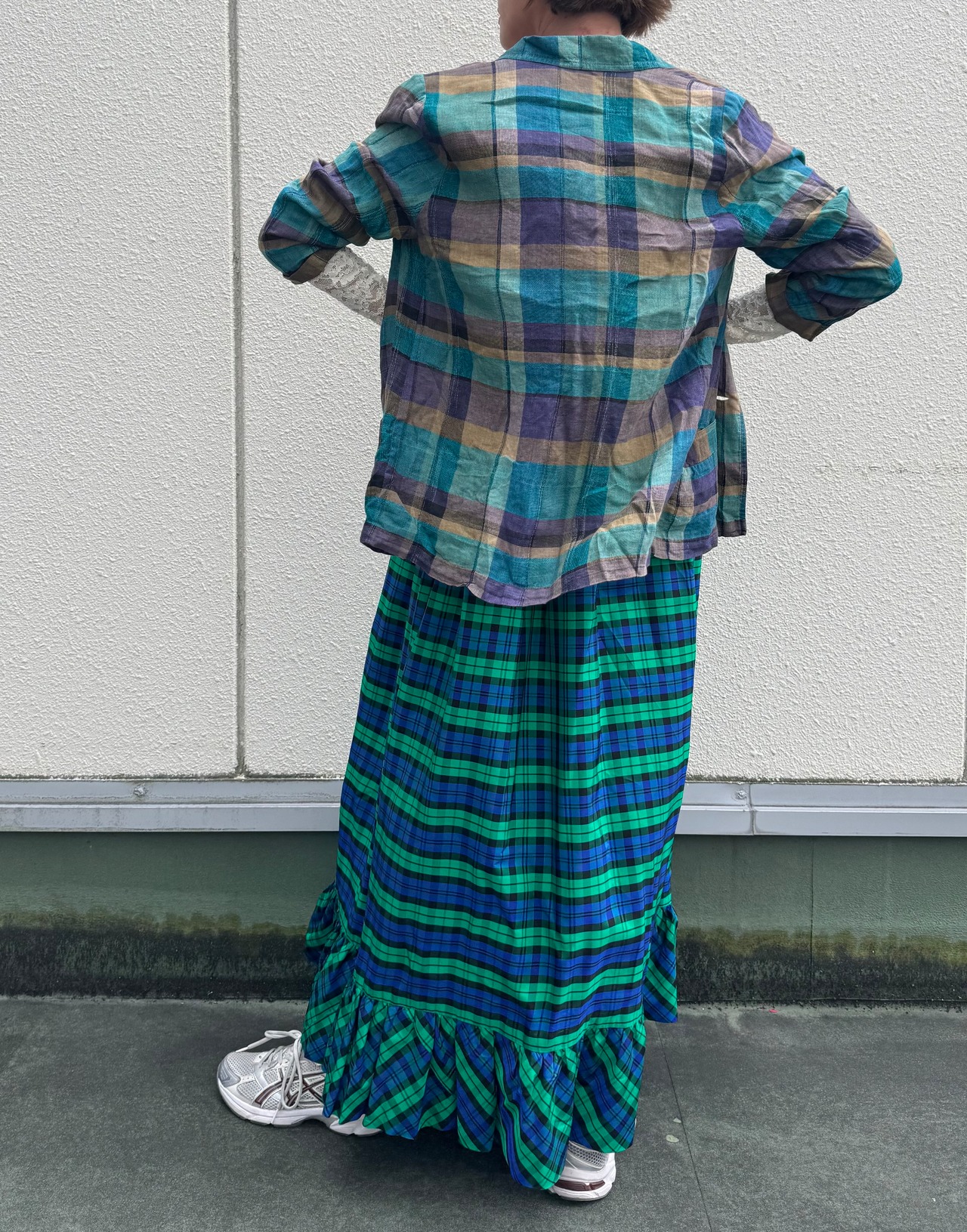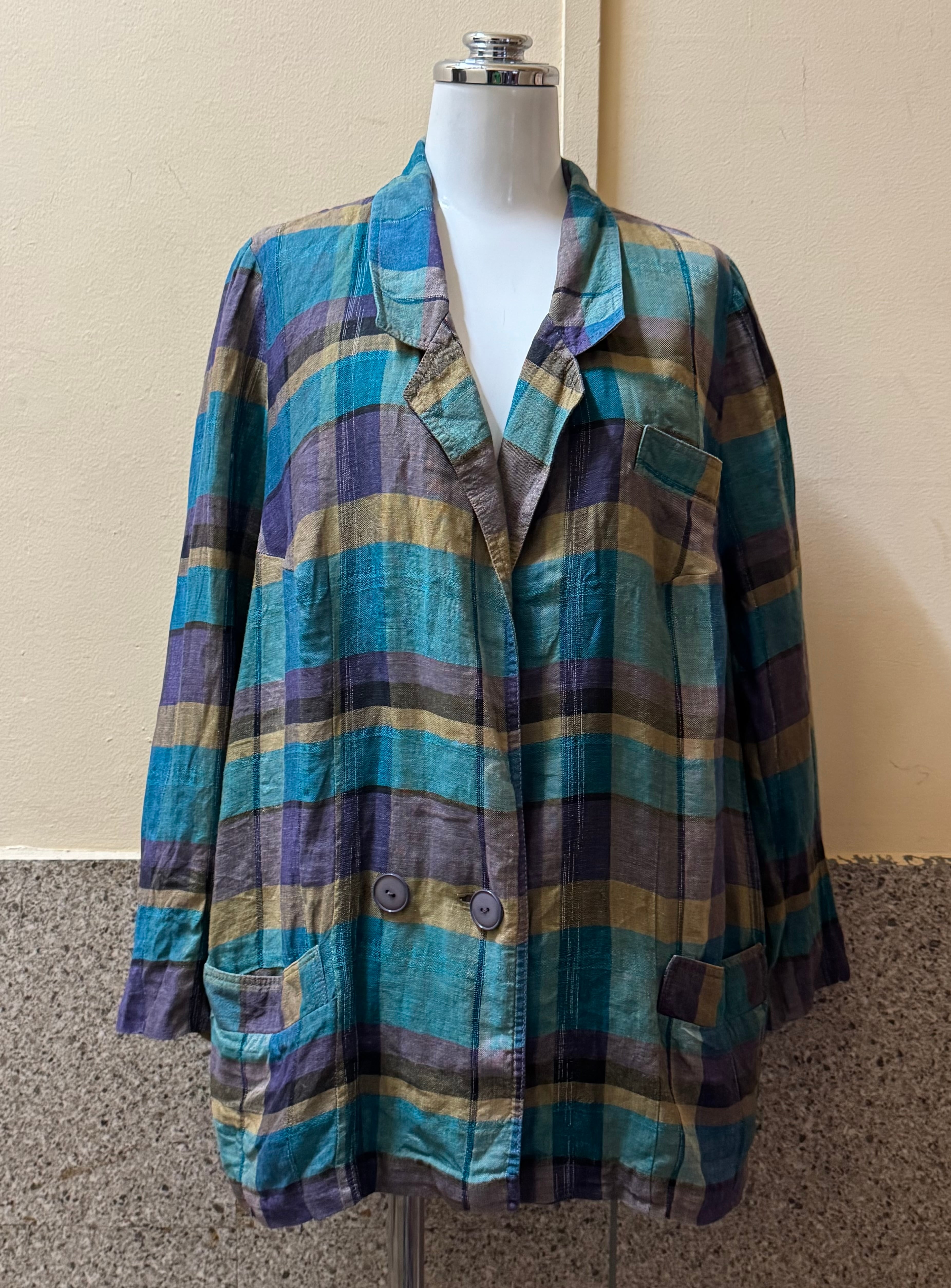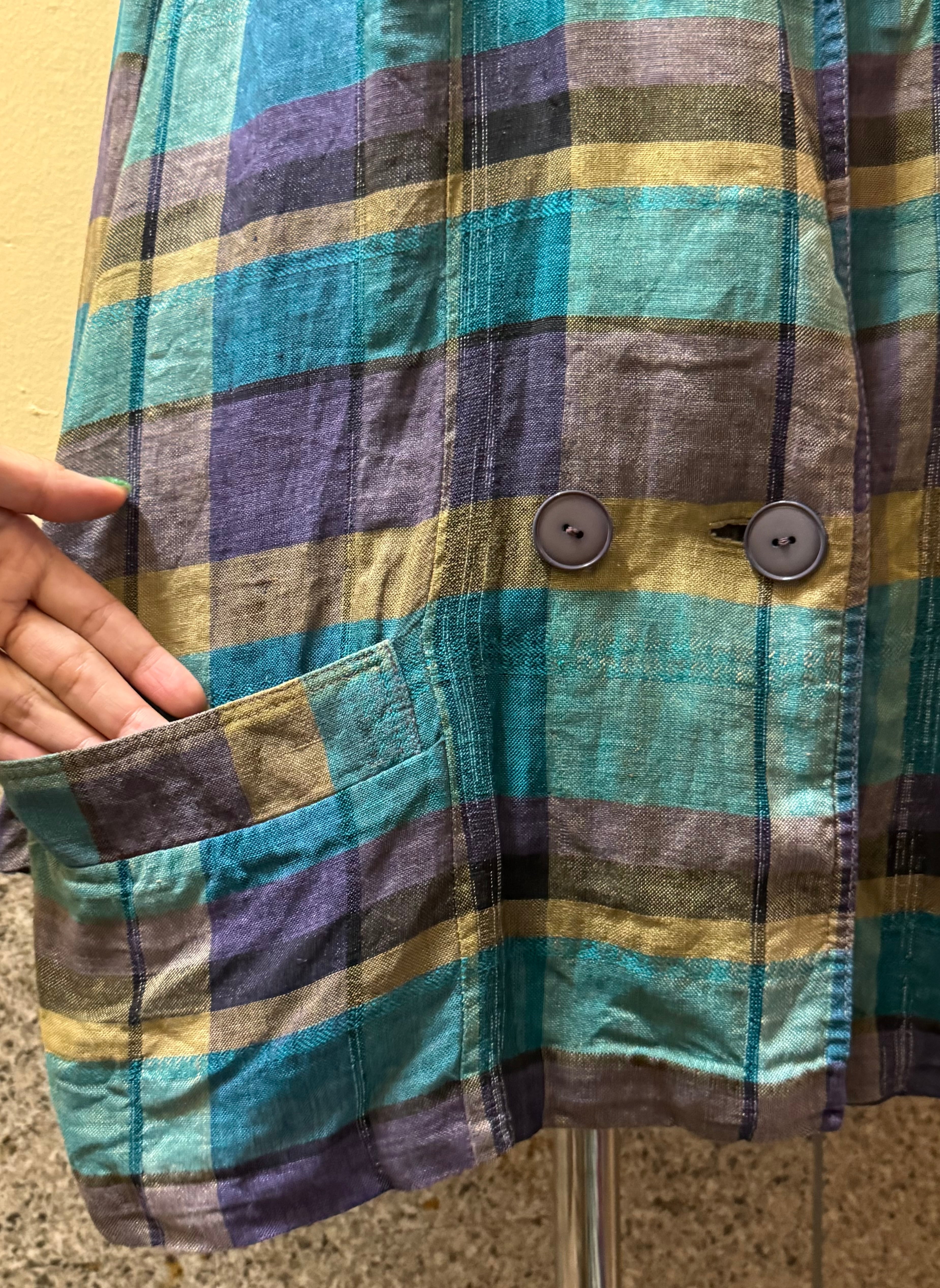 表記はないですが恐らくリネン混の軽い素材感のチェック柄ジャケット