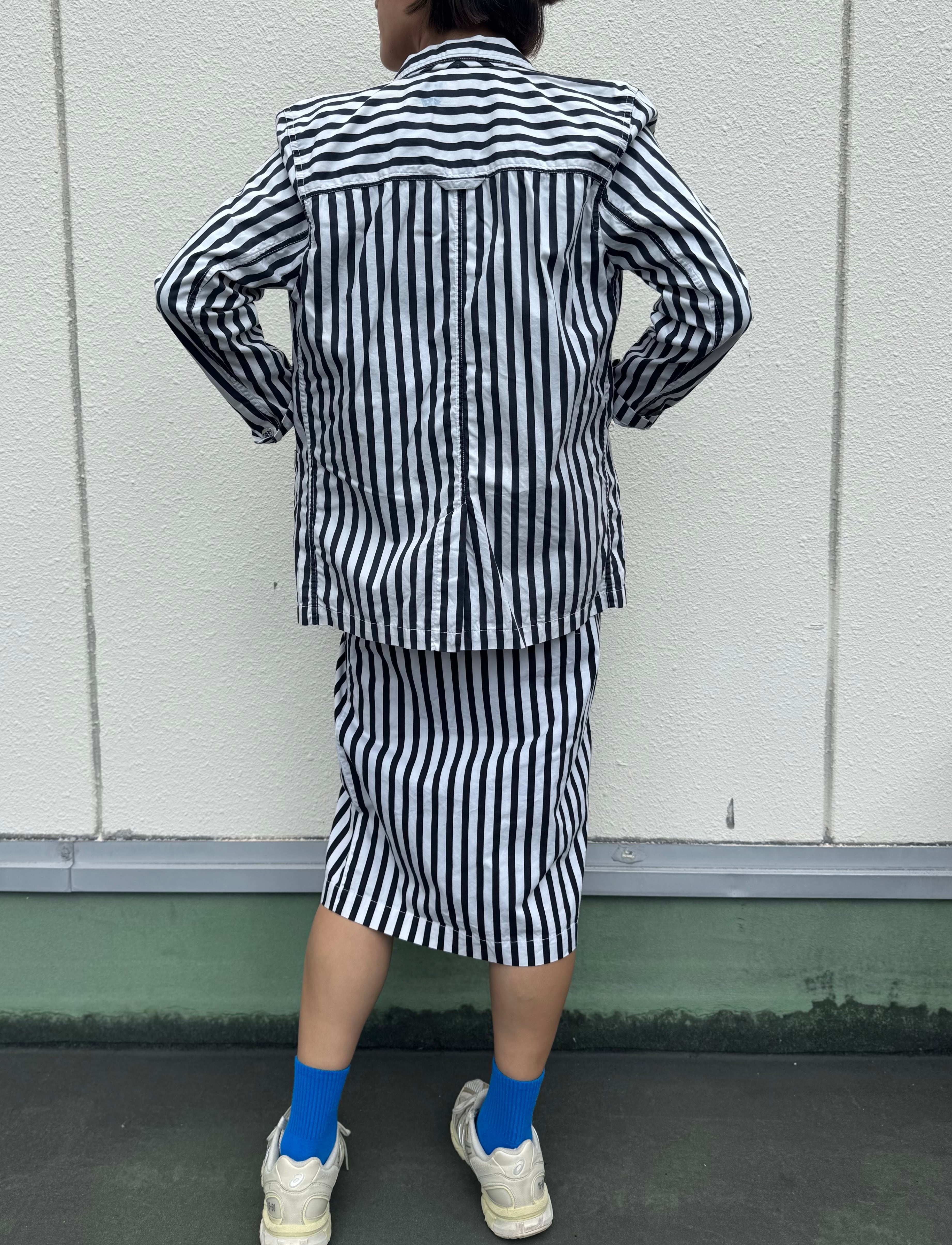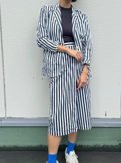 太めのストライプが素敵なジャケット×スカートのセットアップ