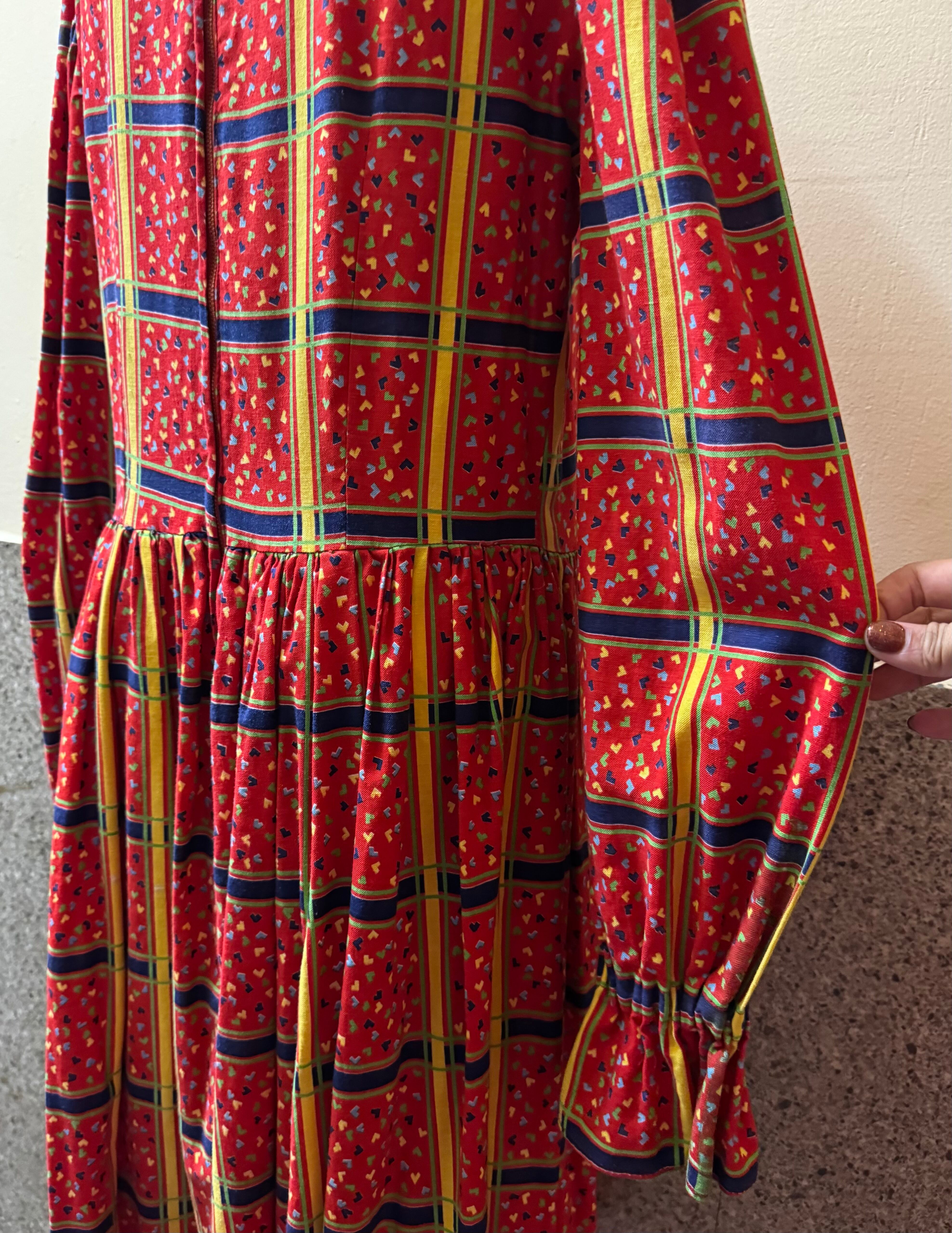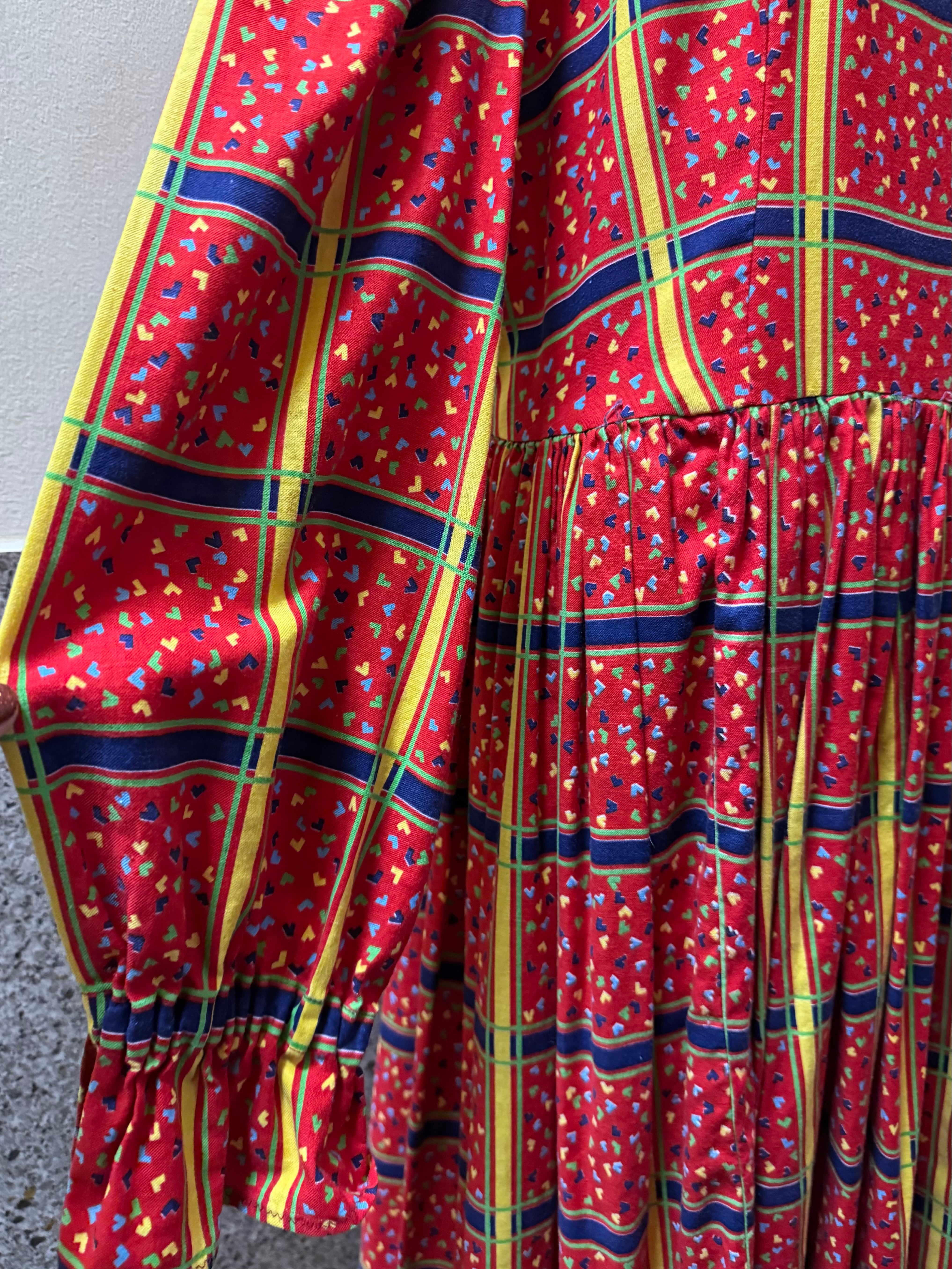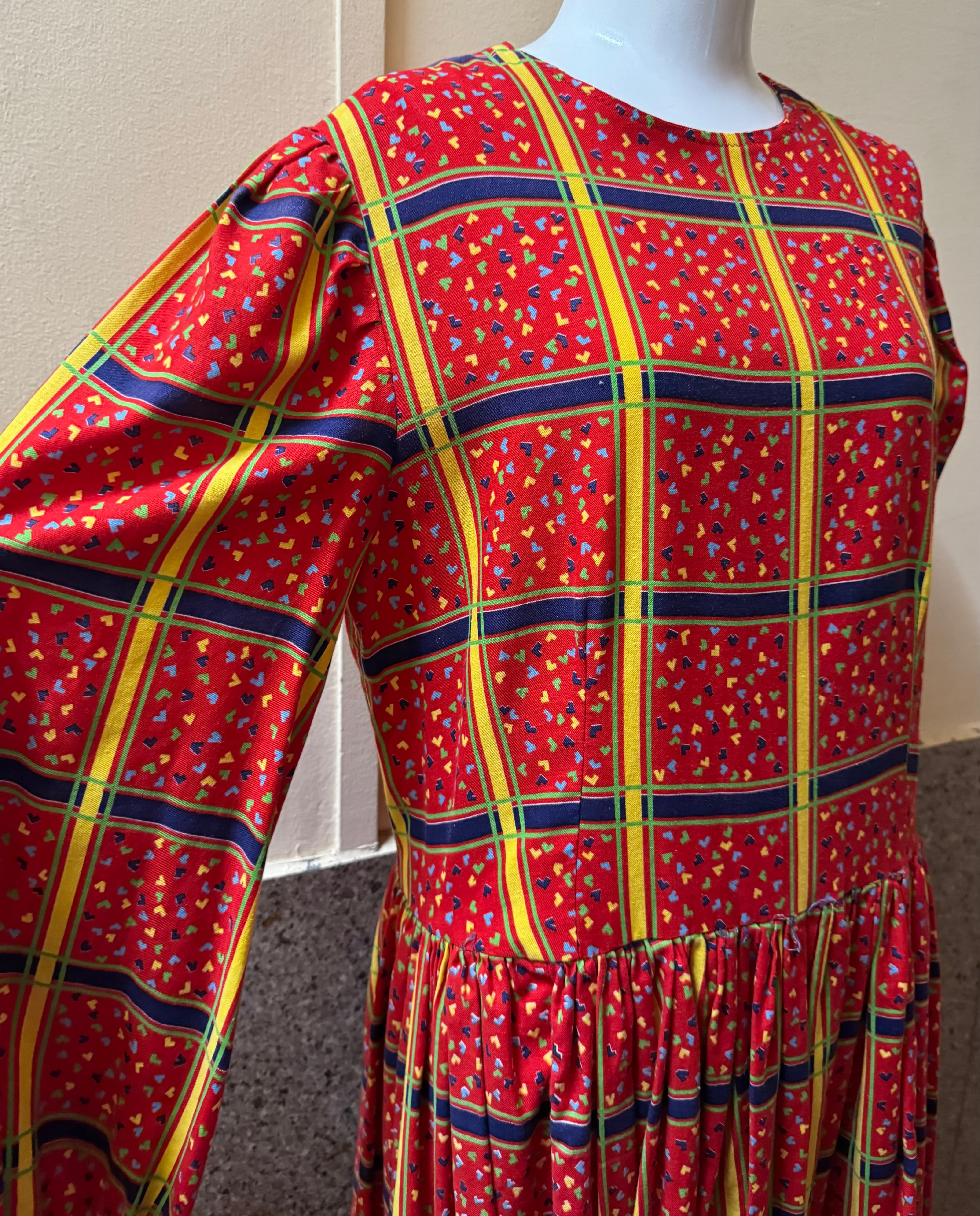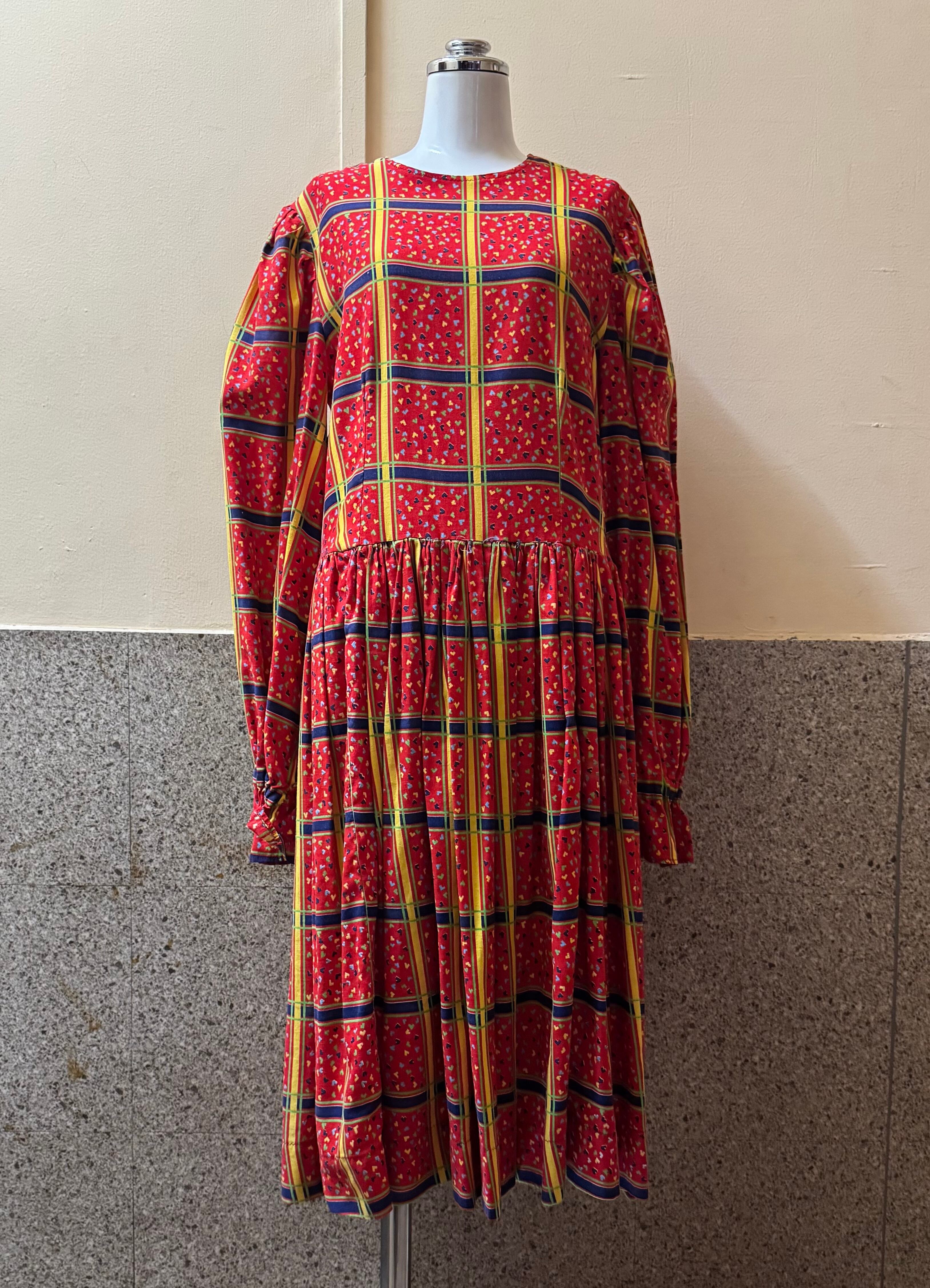 可愛いテキスタイルデザインのハンドメイドワンピース