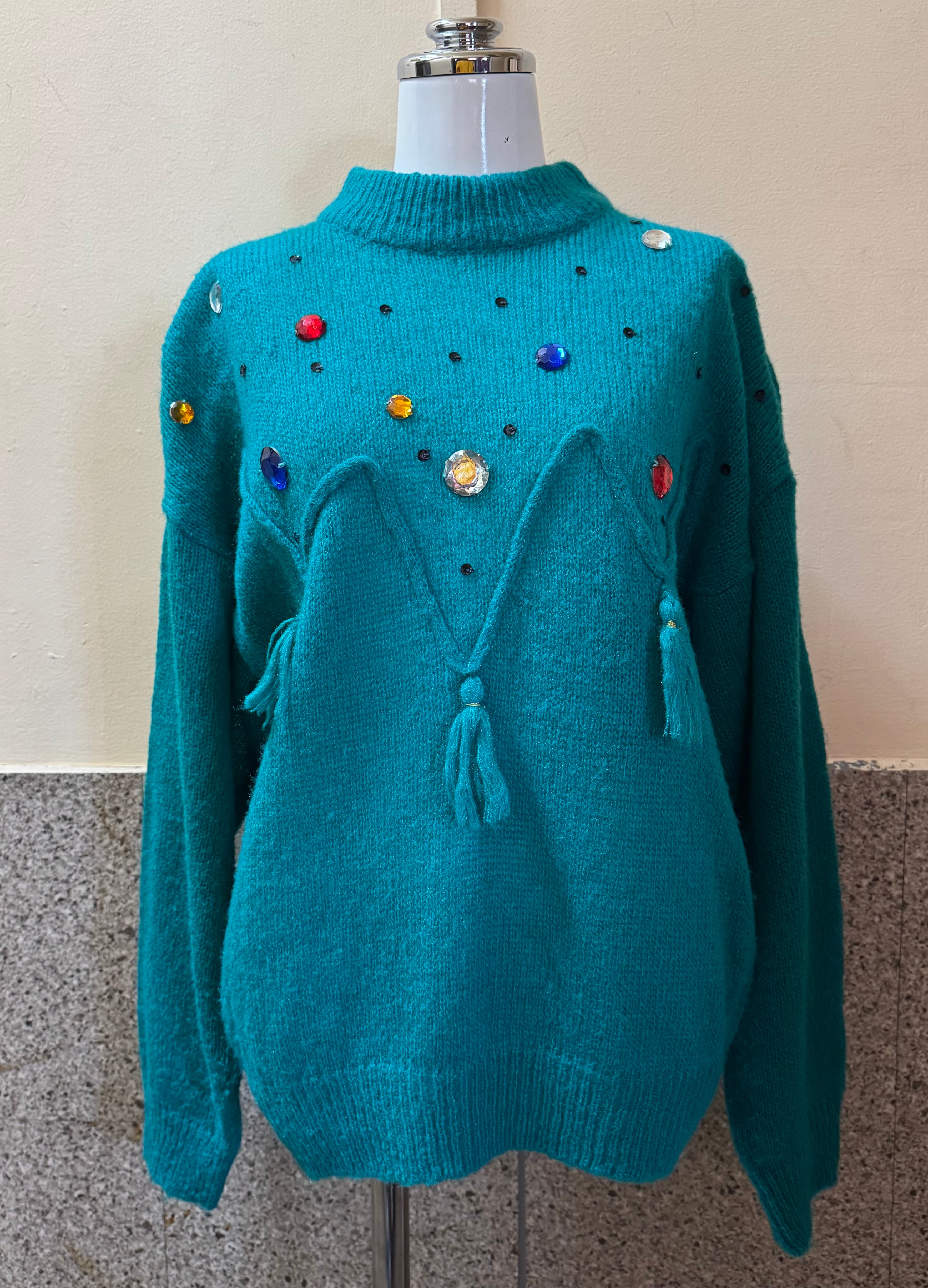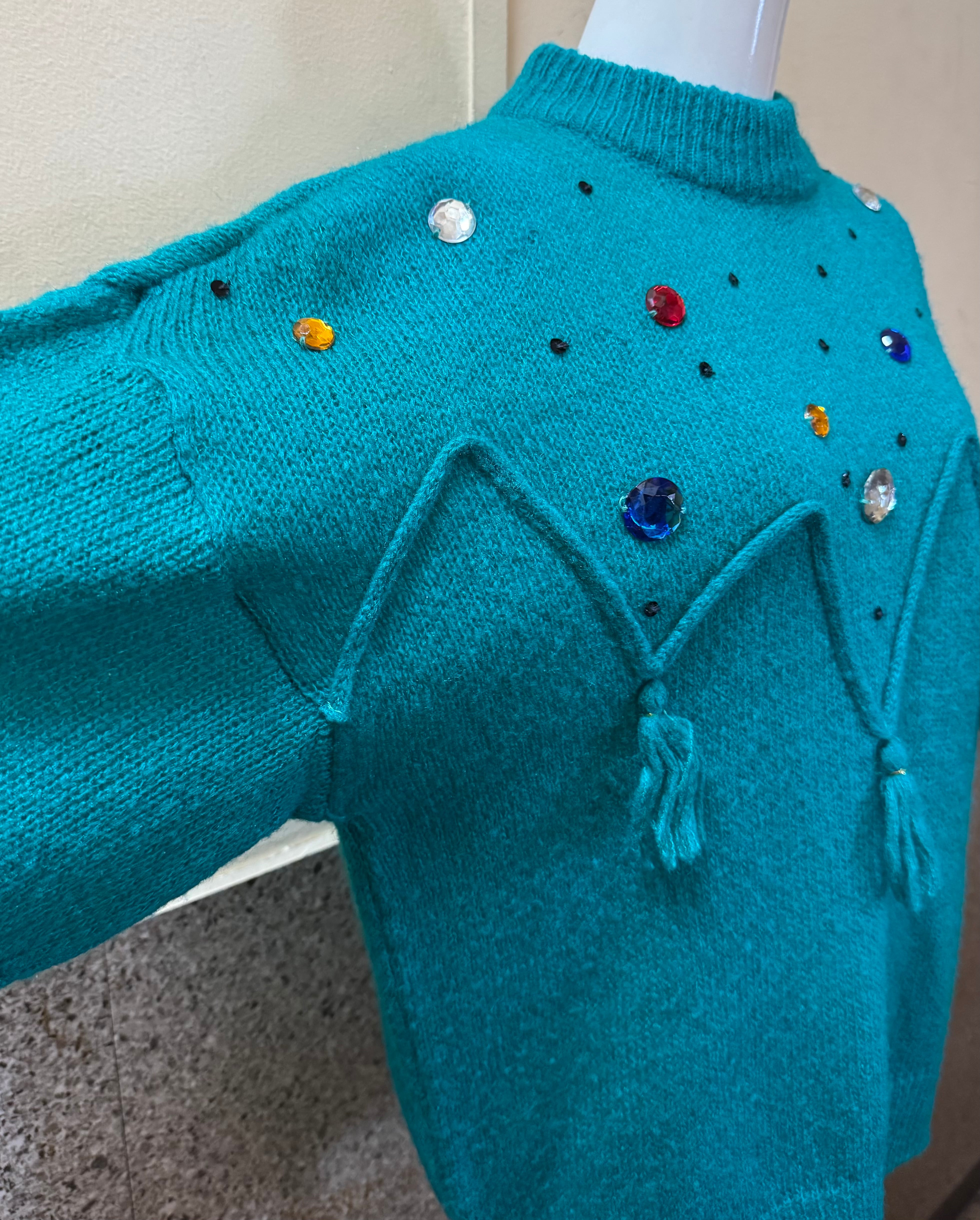 ビジュー×タッセルのデザインがキュートなふわふわアクリルニットセーター