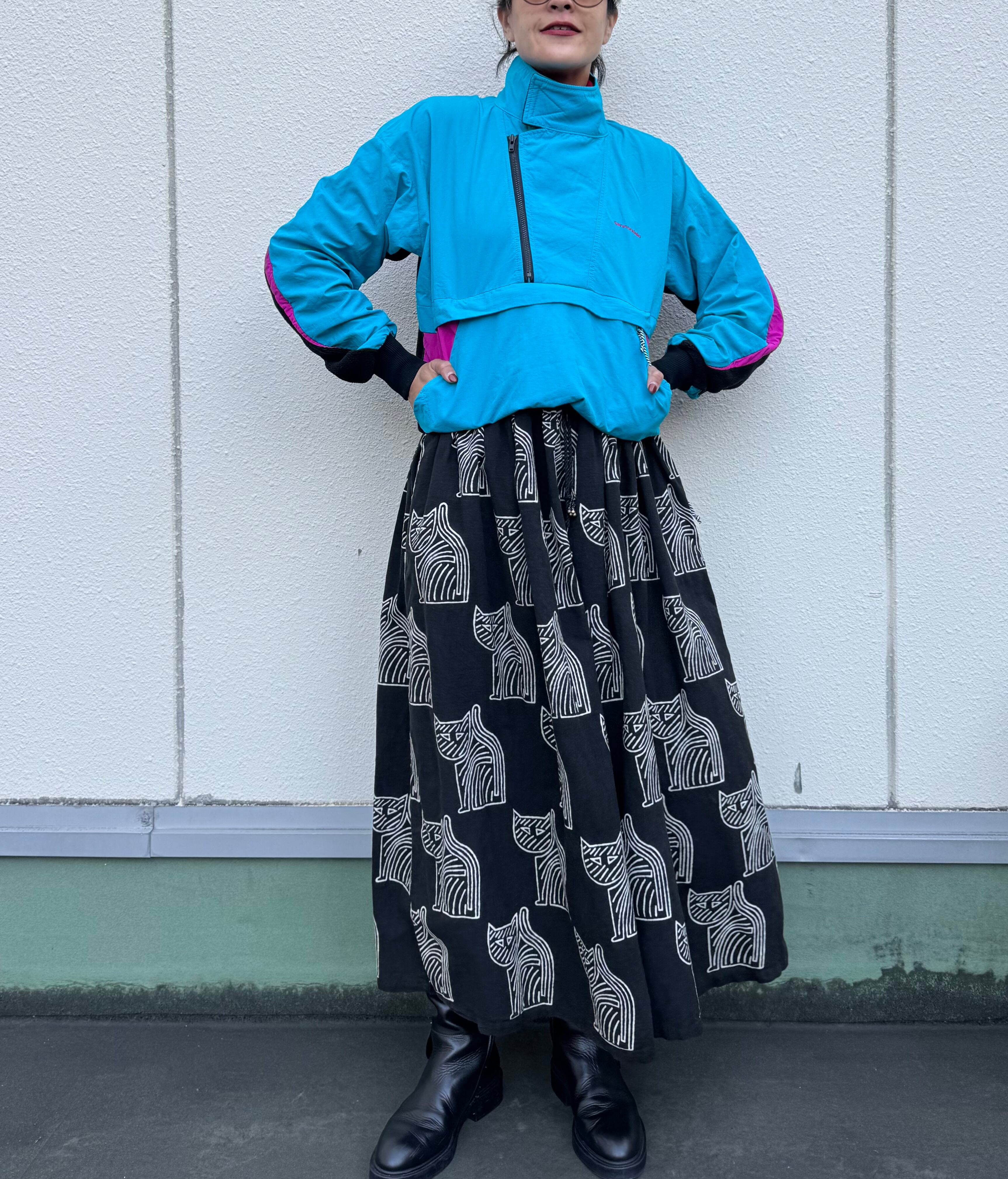インド綿のスカートでエスニックな雰囲気のネコちゃん。珍しいし可愛いです。
