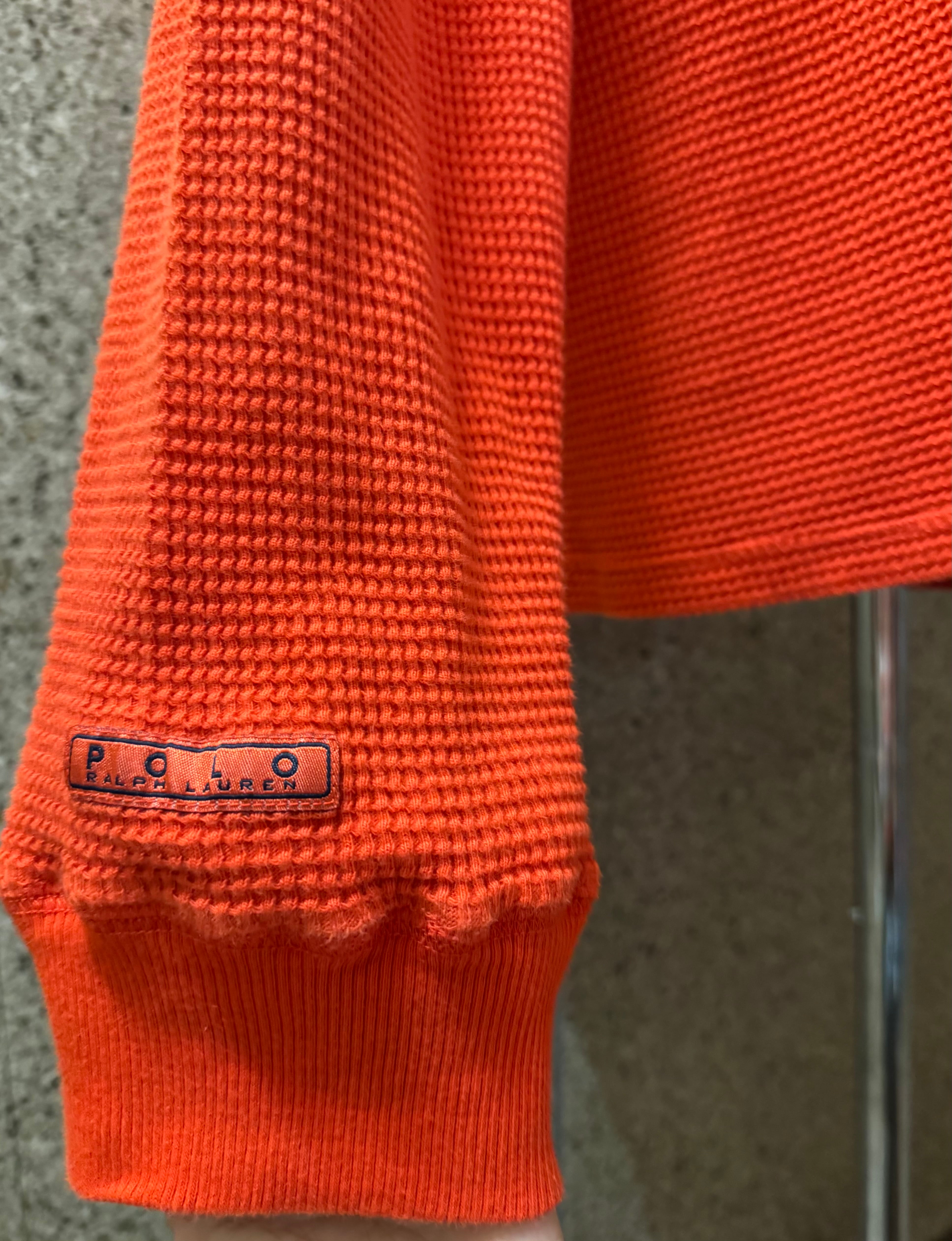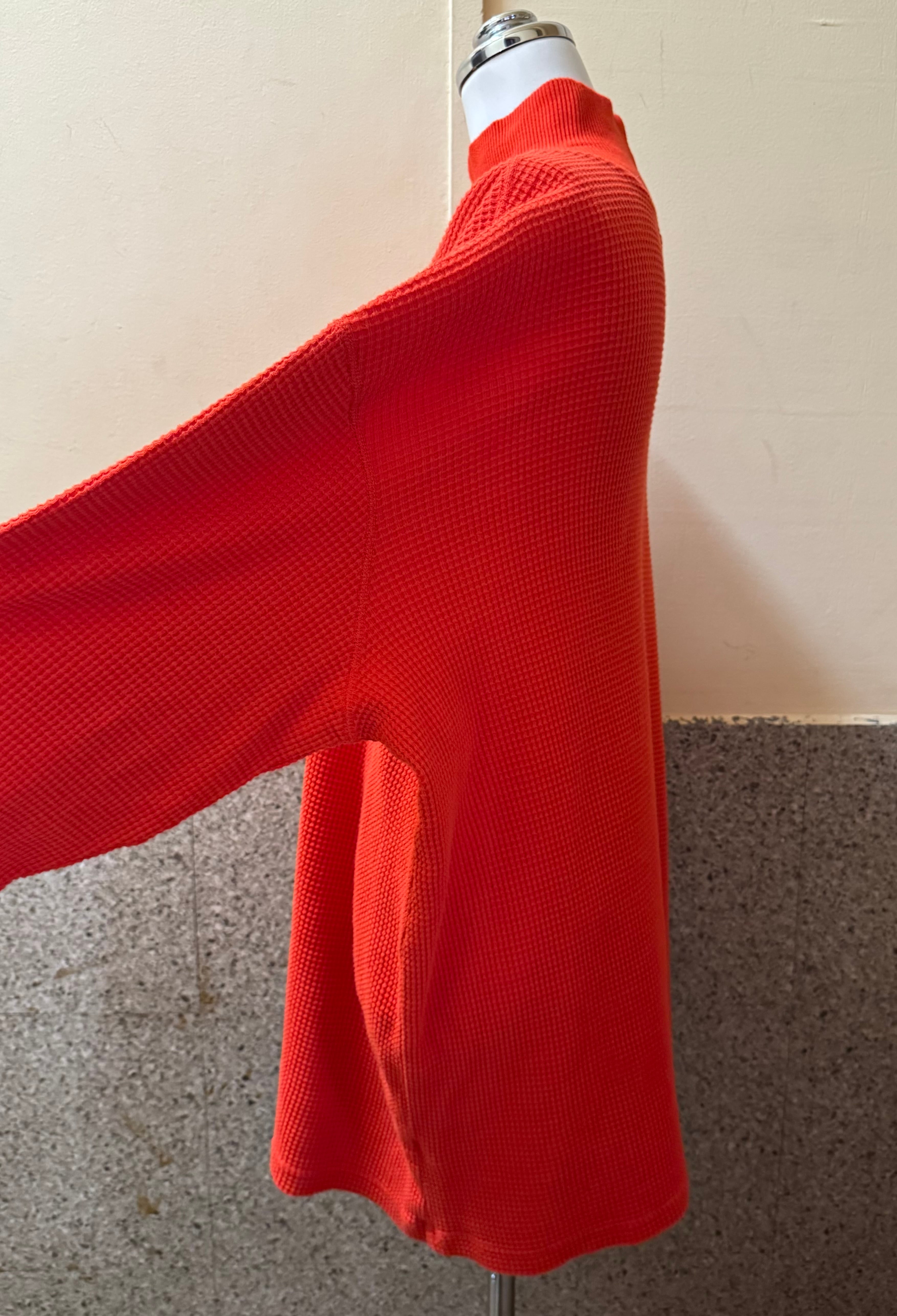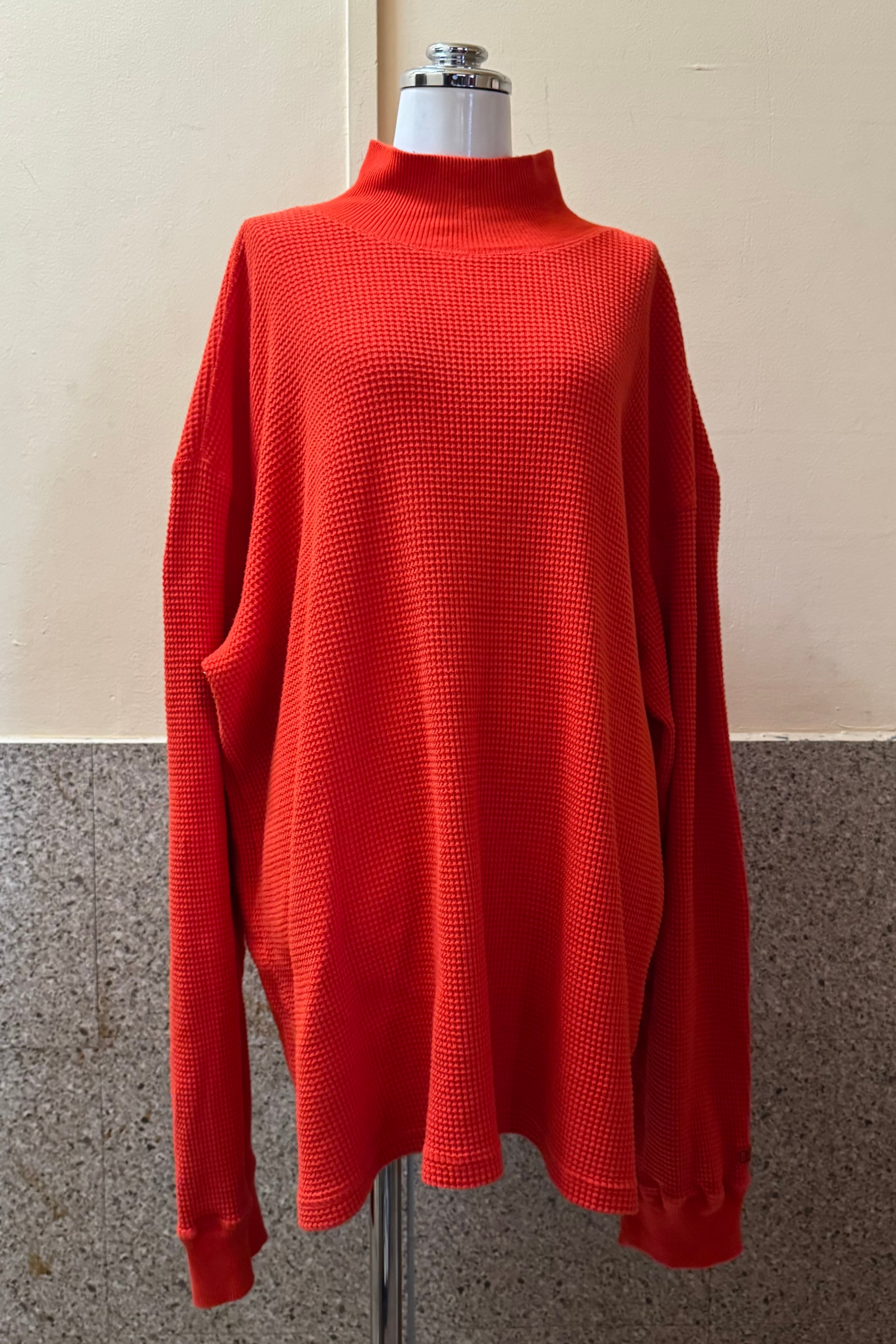 朱赤の様な色味が秋冬のスタイリングの差し色にピッタリな一枚です。