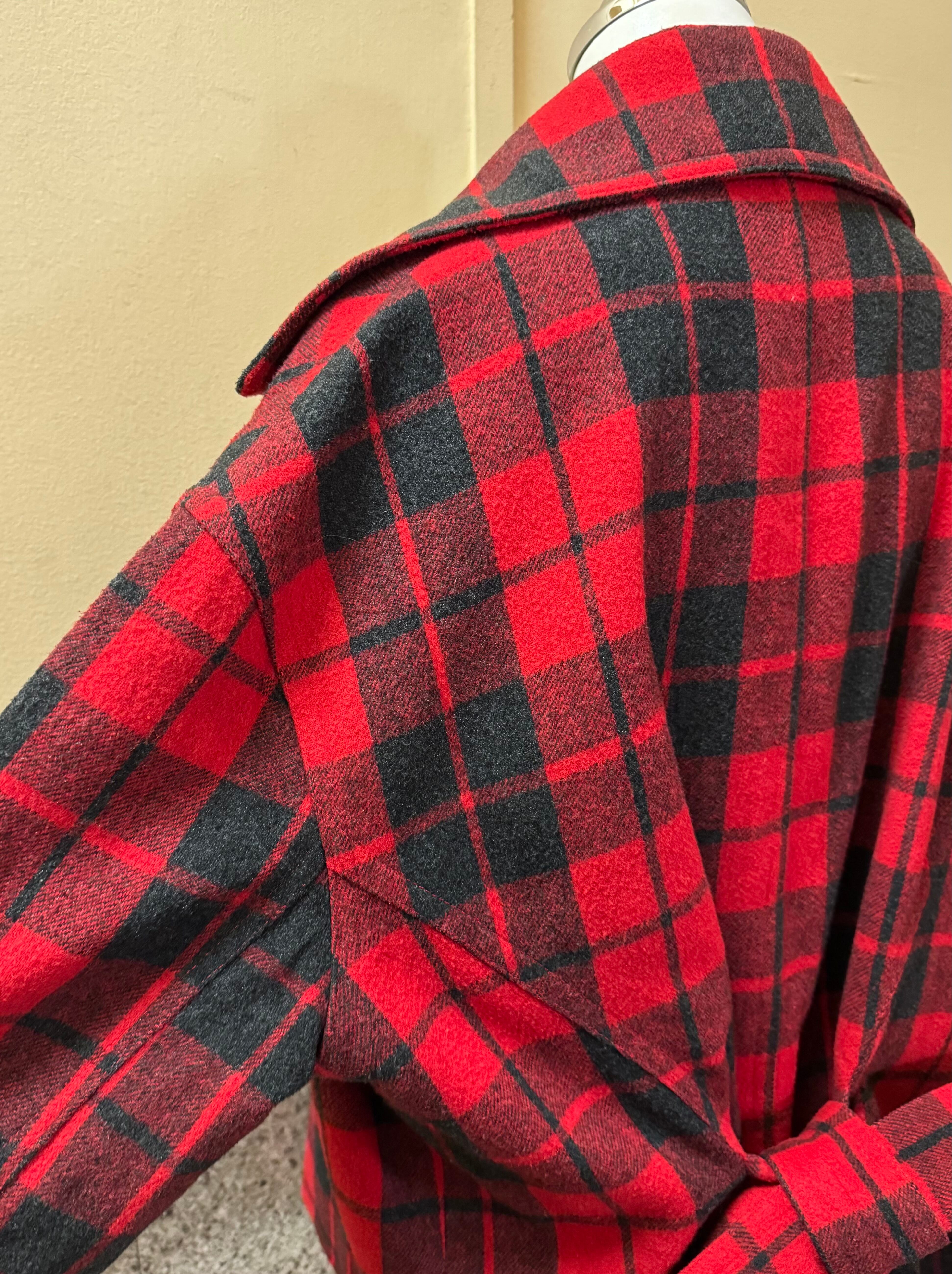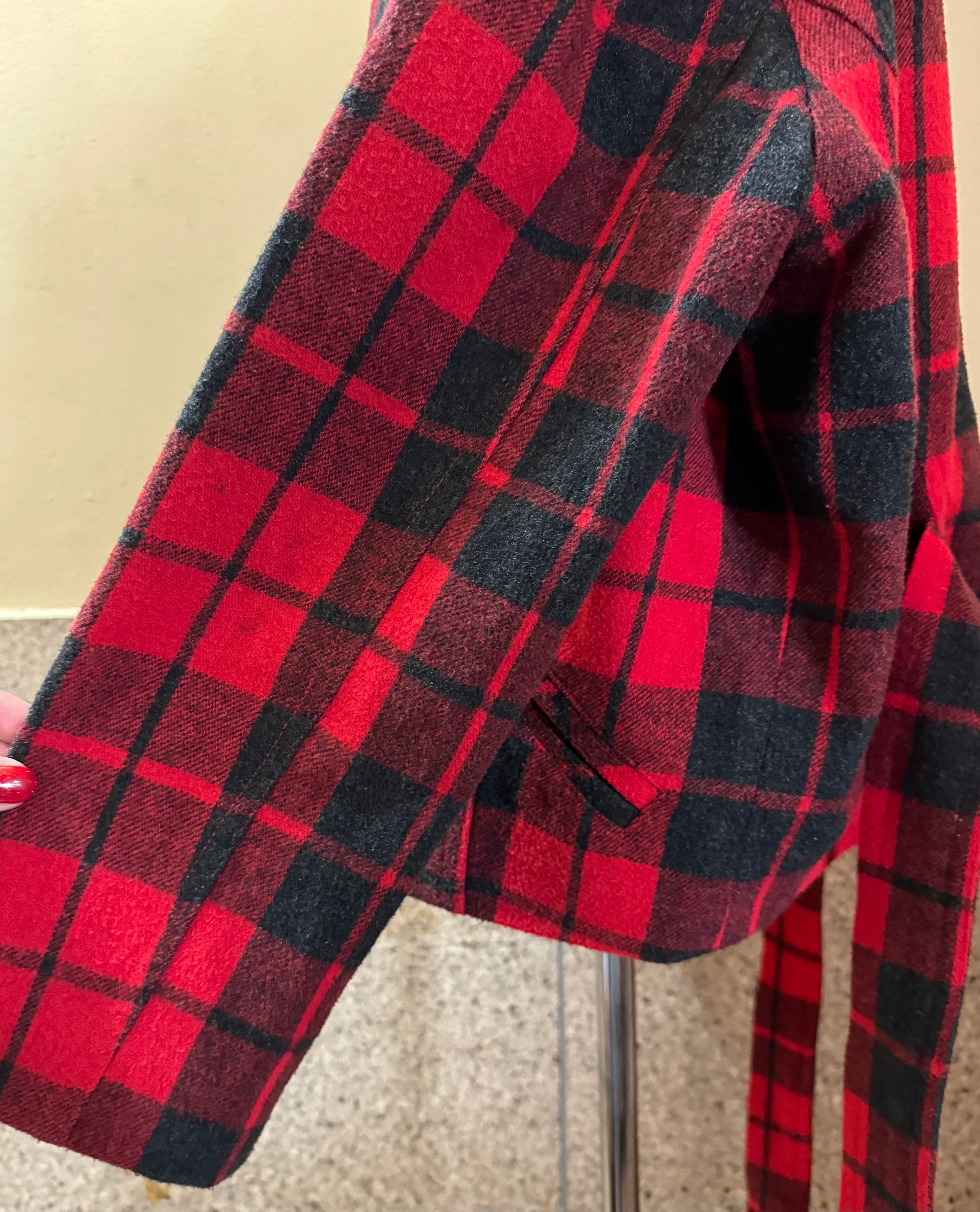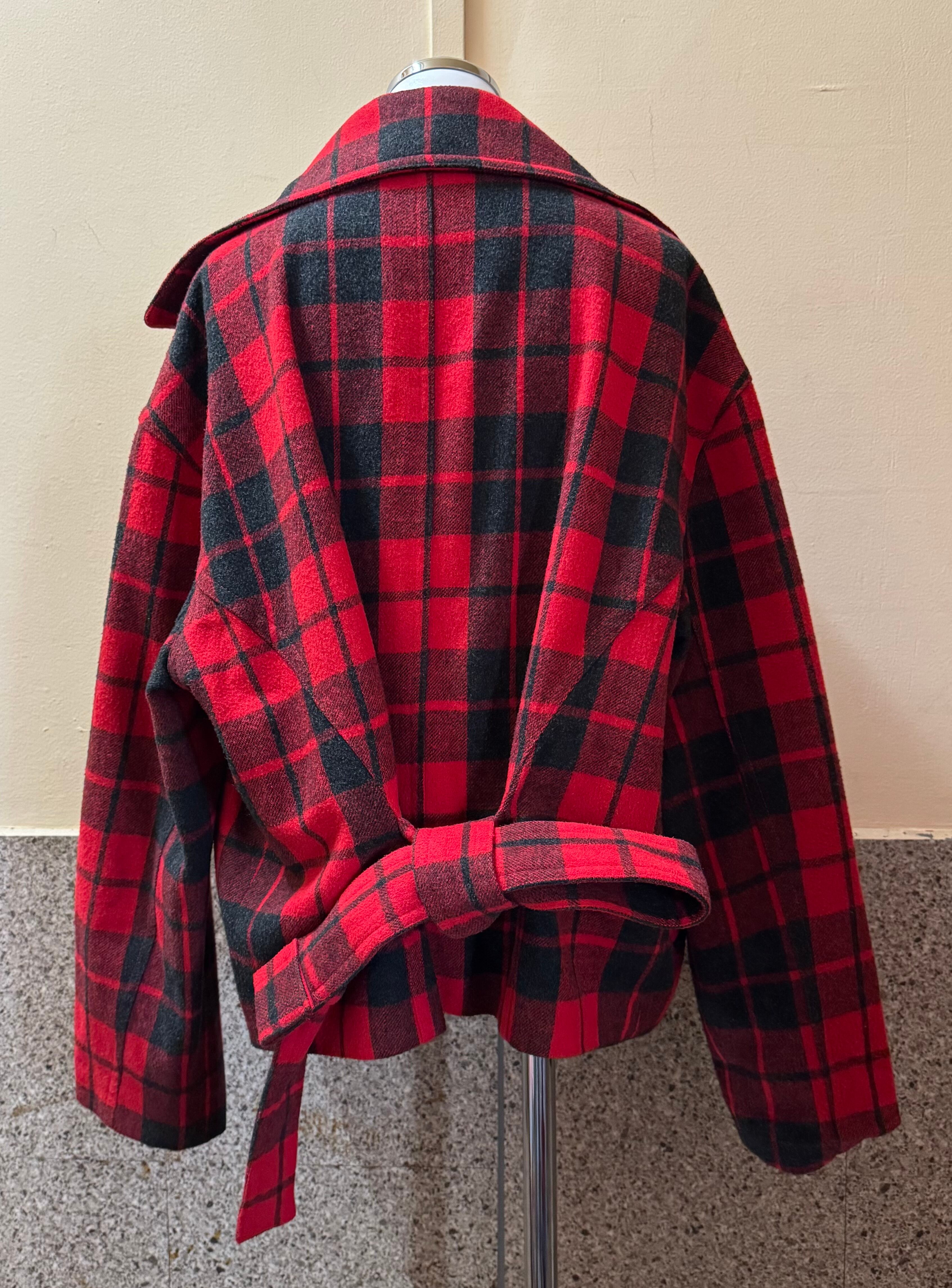 腰辺りの紐が縫い付けられたライダースジャケットの様なシルエットデザインです。
