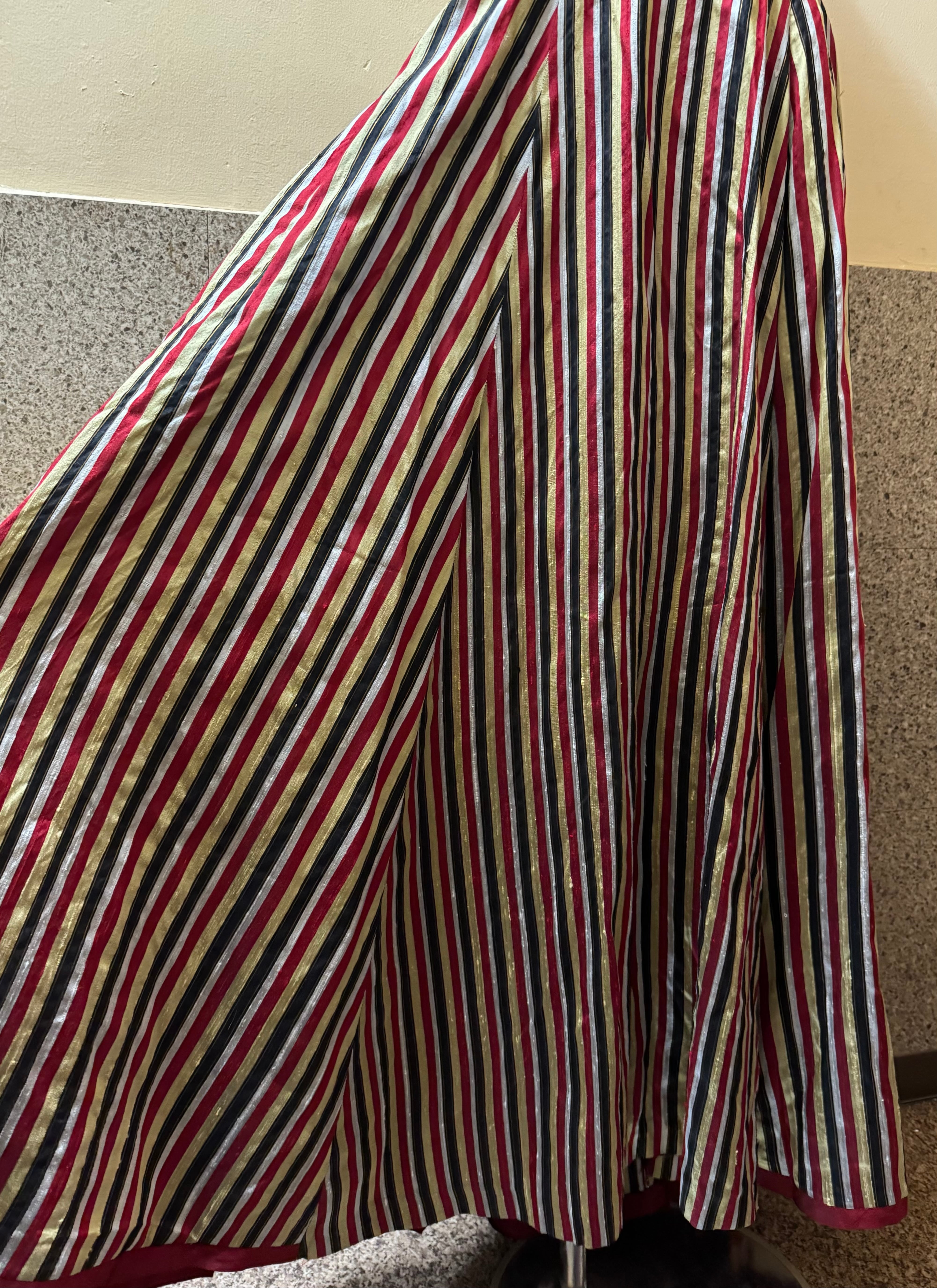 配色が素敵なシルク素材のマキシスカート