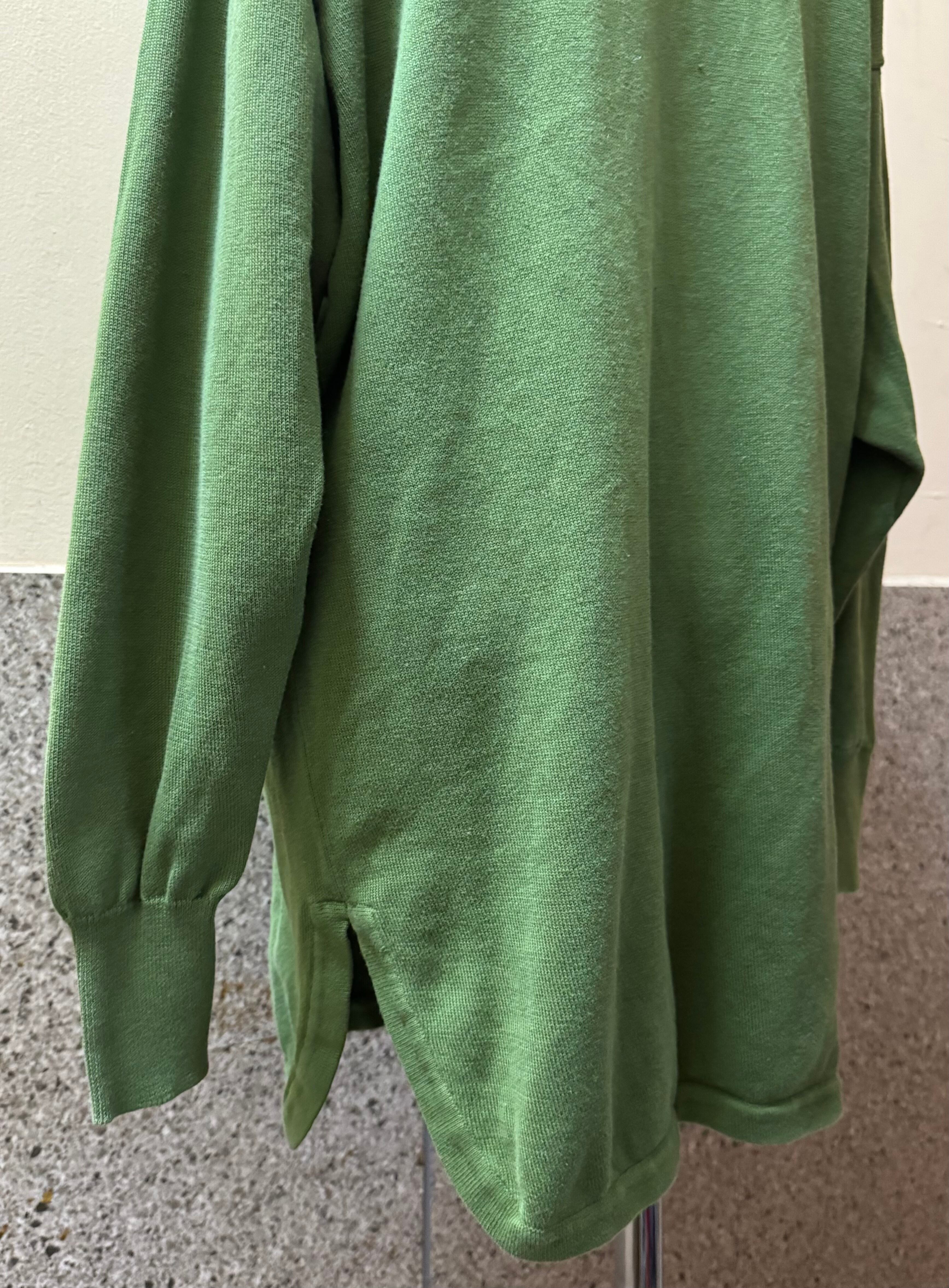 ゆるっとした首元と肩の落ちたデザイン、着丈も長く重ね着にもオススメです。