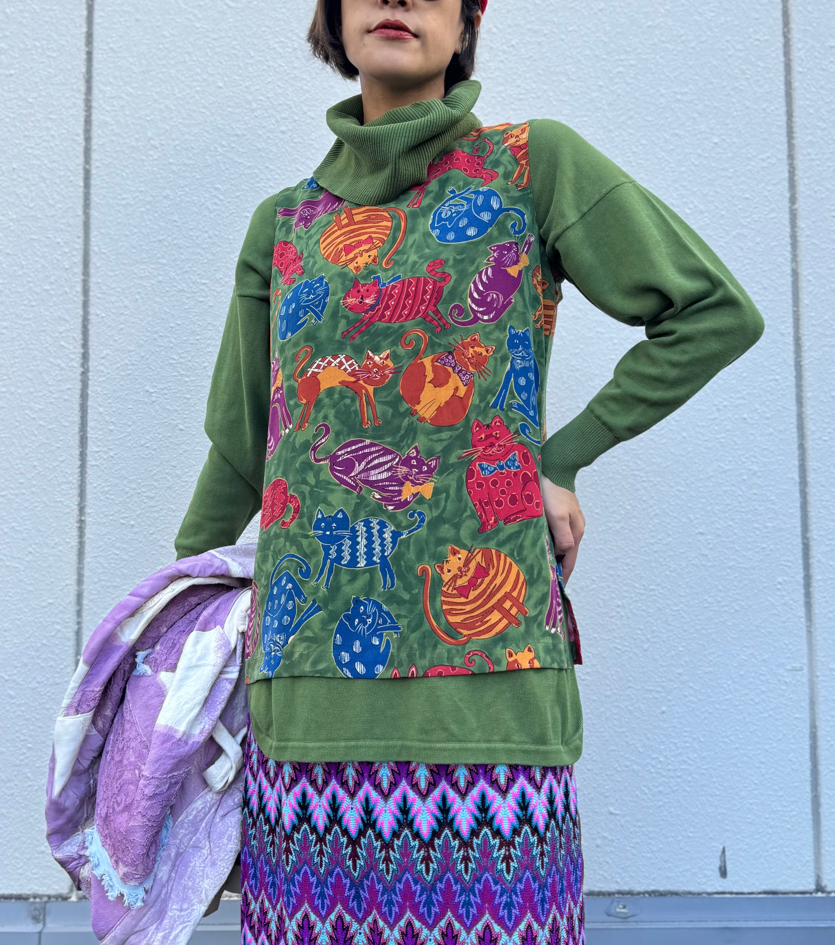 カラフルなネコちゃんモチーフのスリーブレスブラウス
