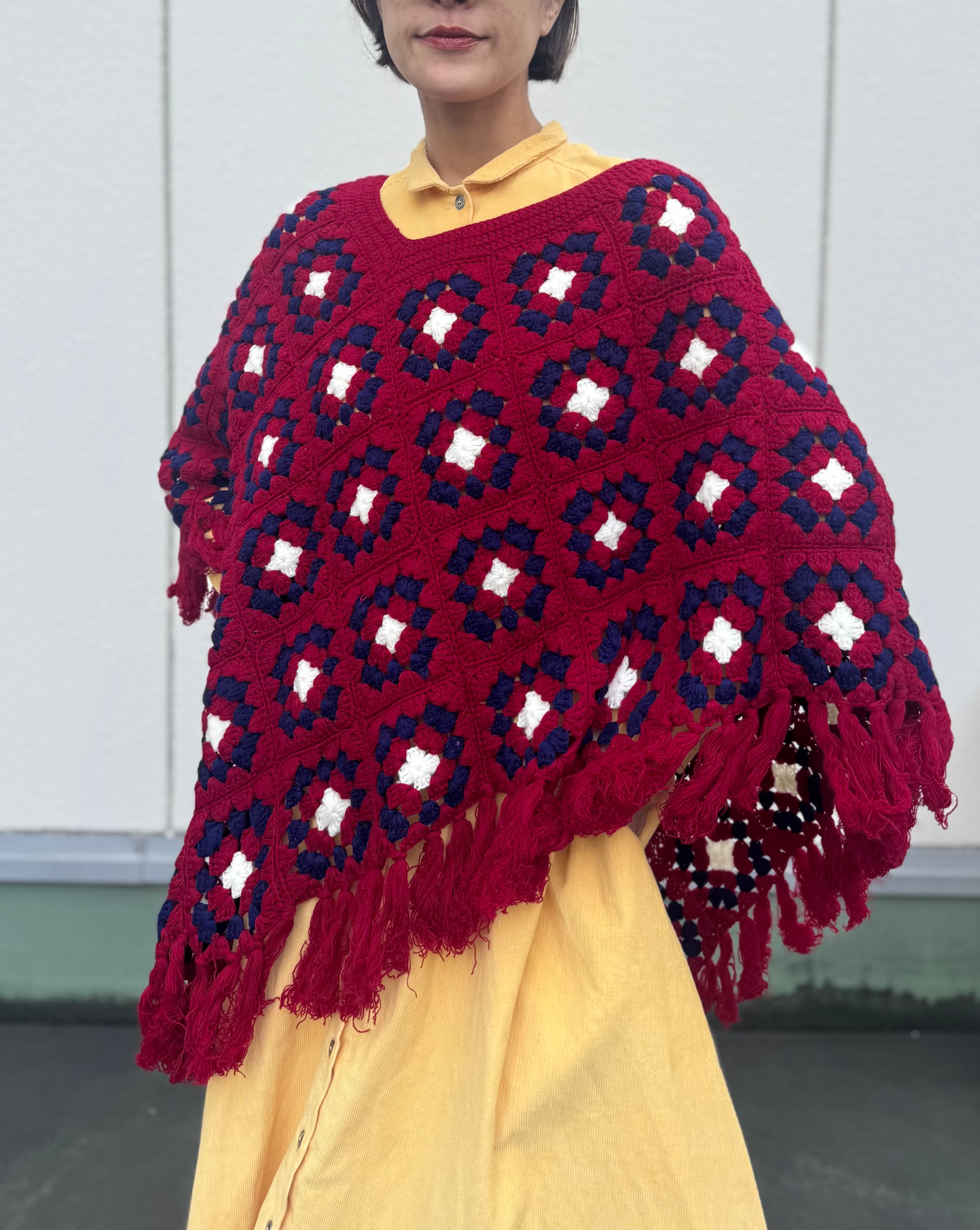 手編みのグラニーニットポンチョ