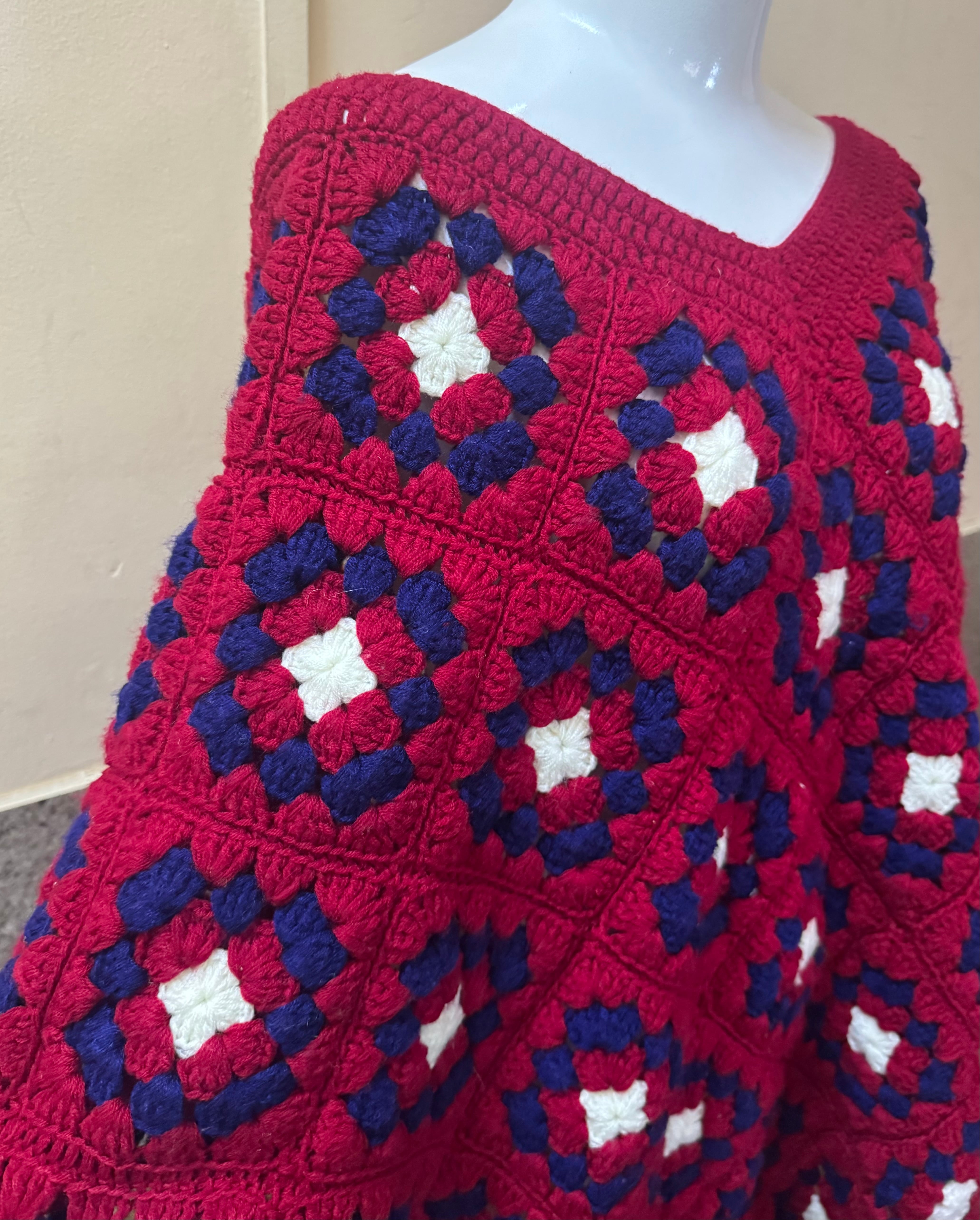 70s Granny Hand Knit Poncho 74