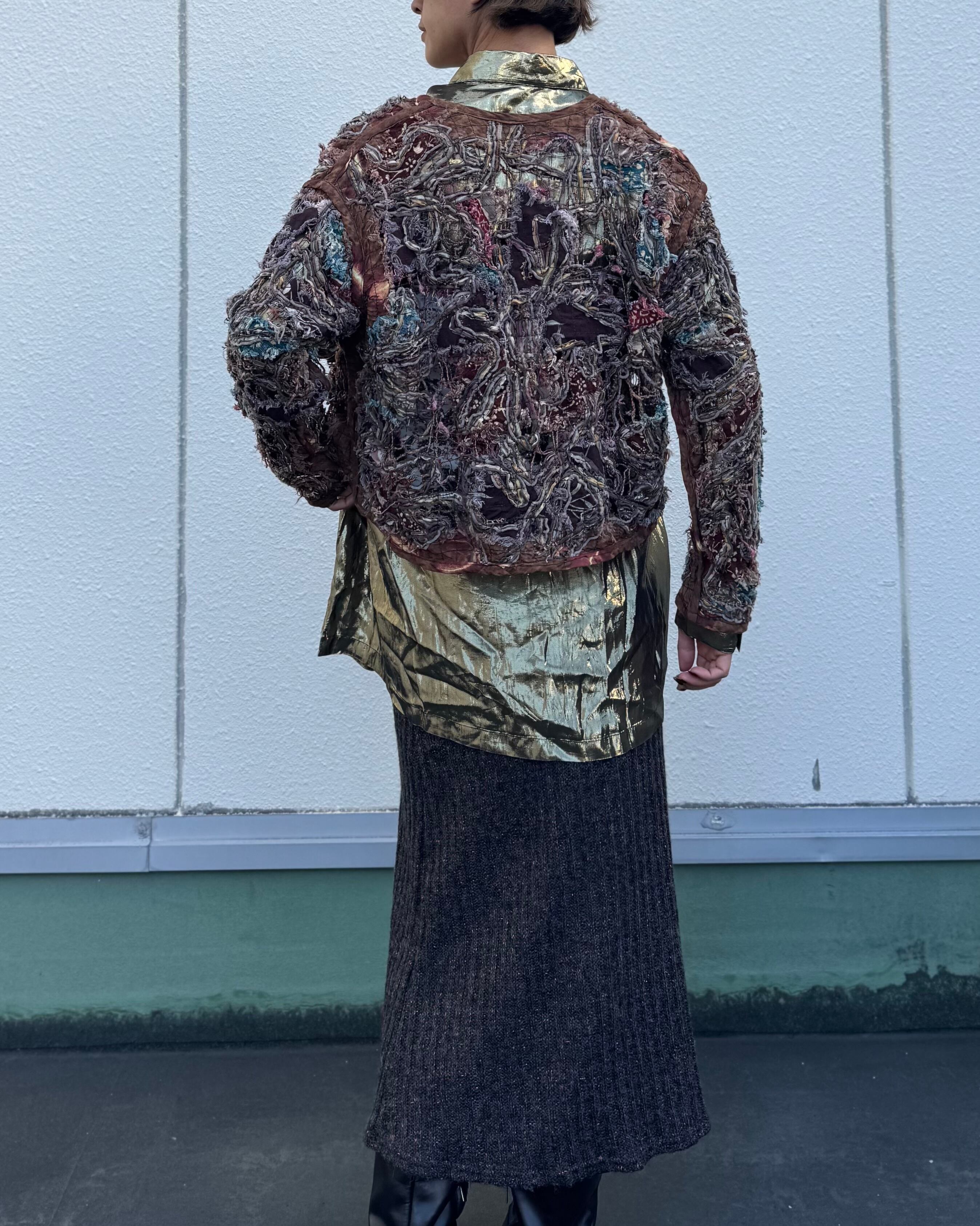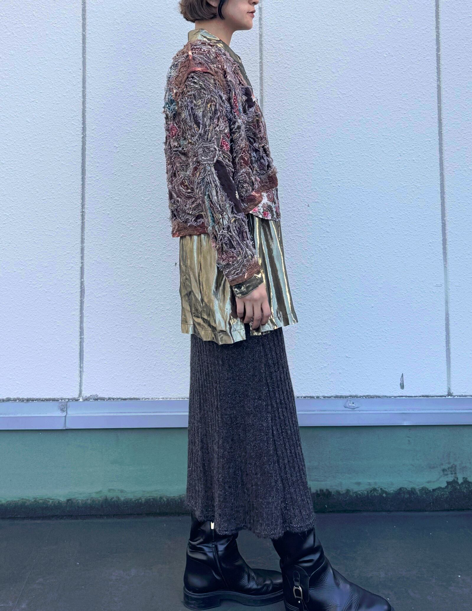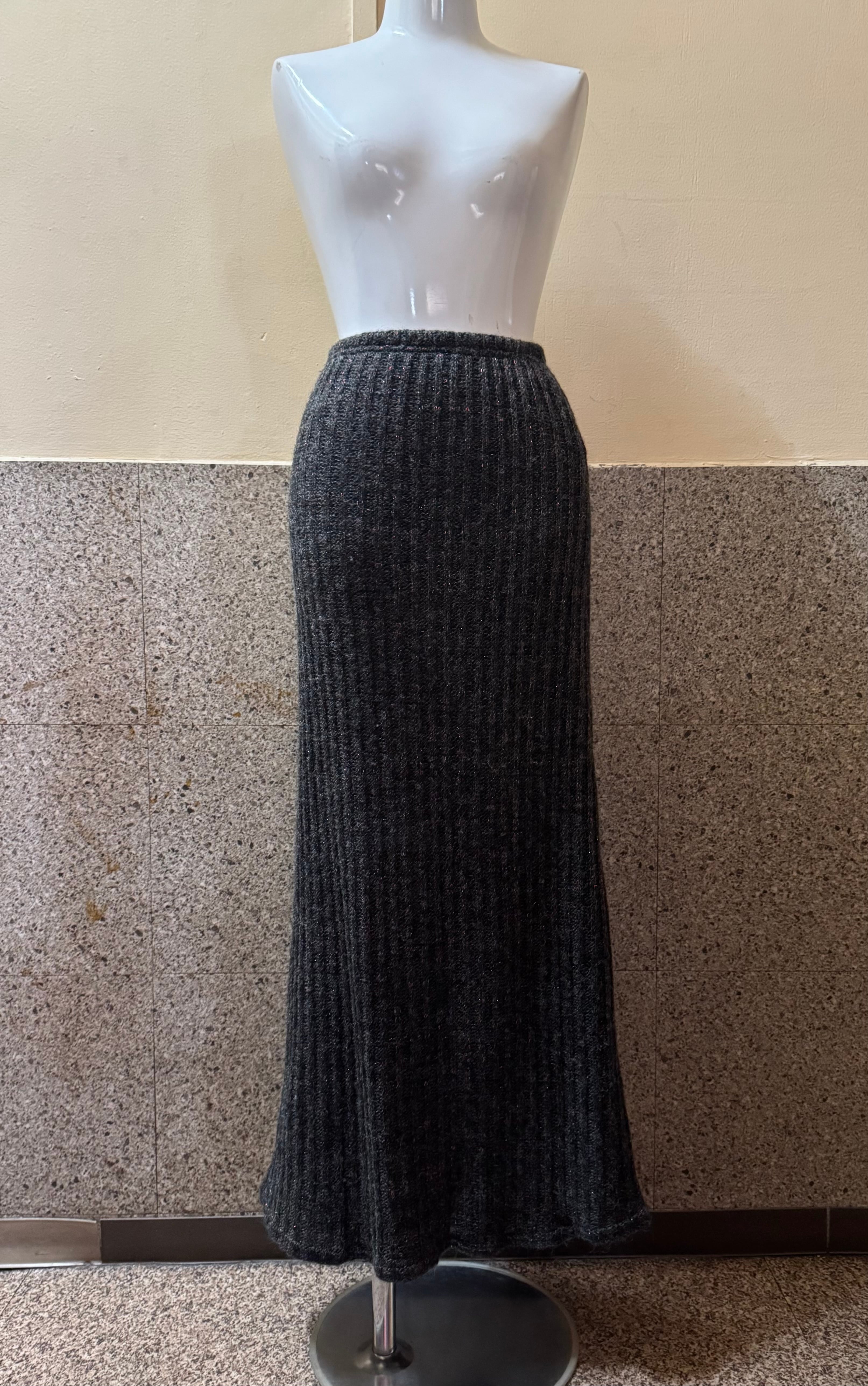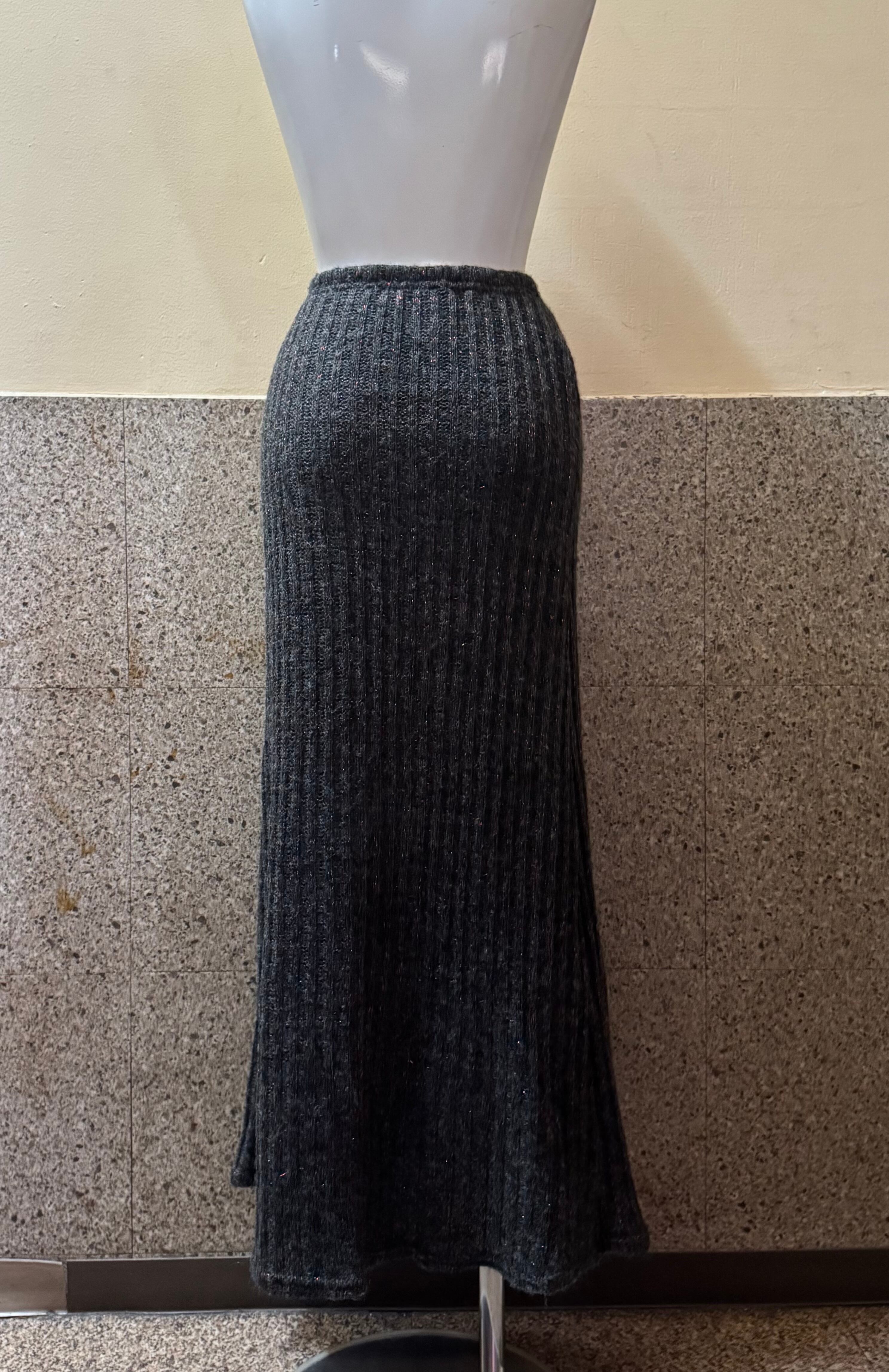 チャコールグレーに赤のメタリックが編み込まれたニットスカート