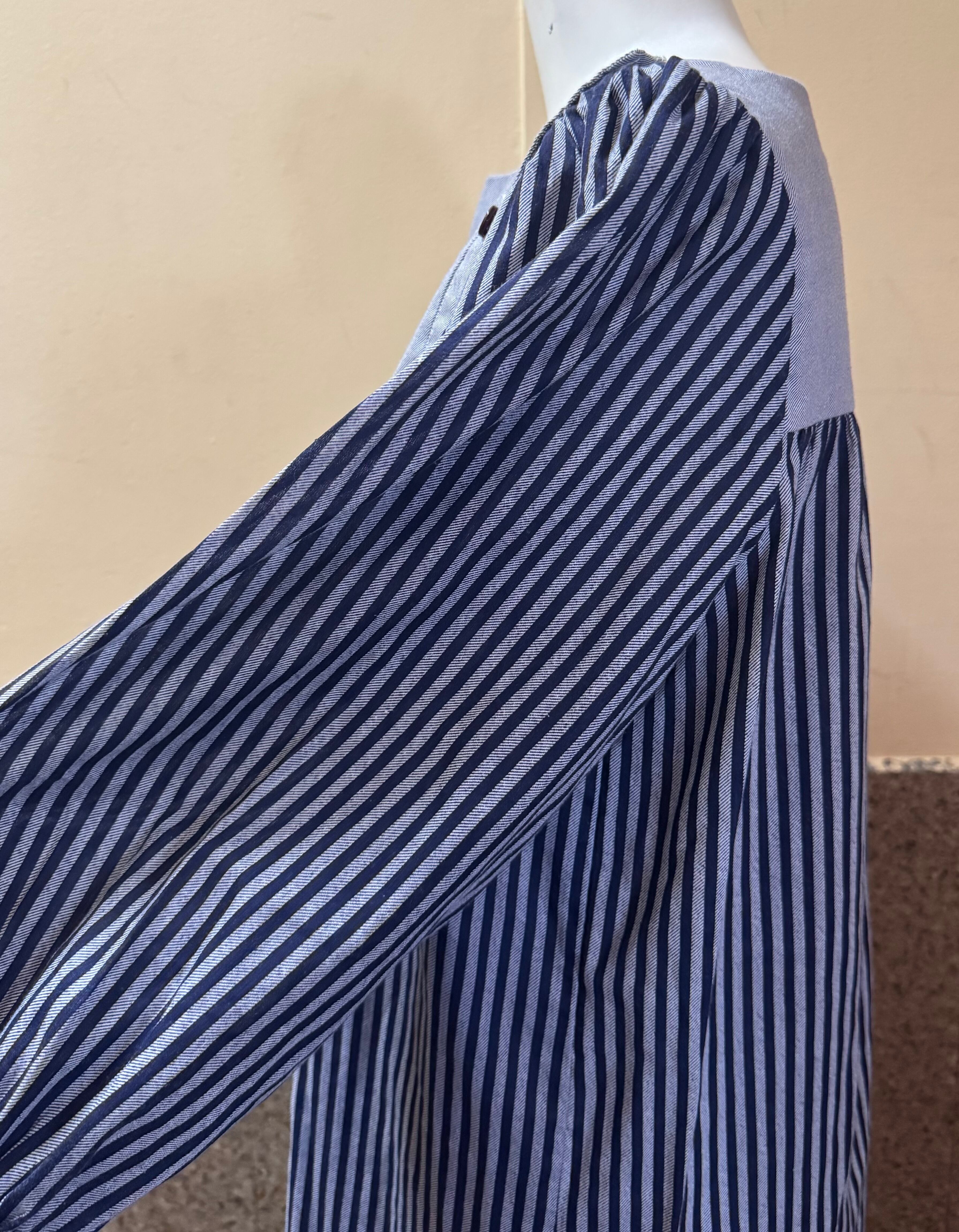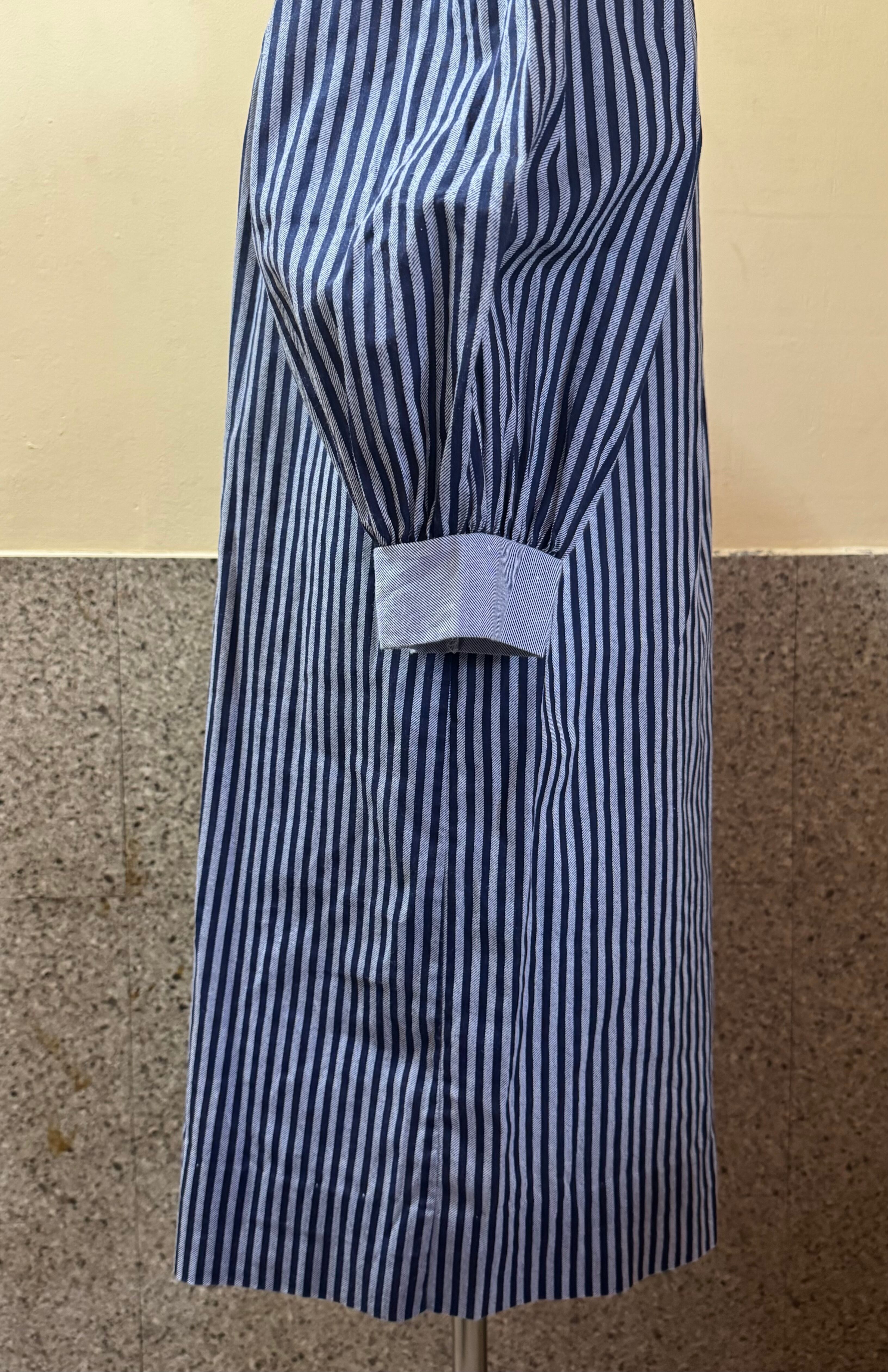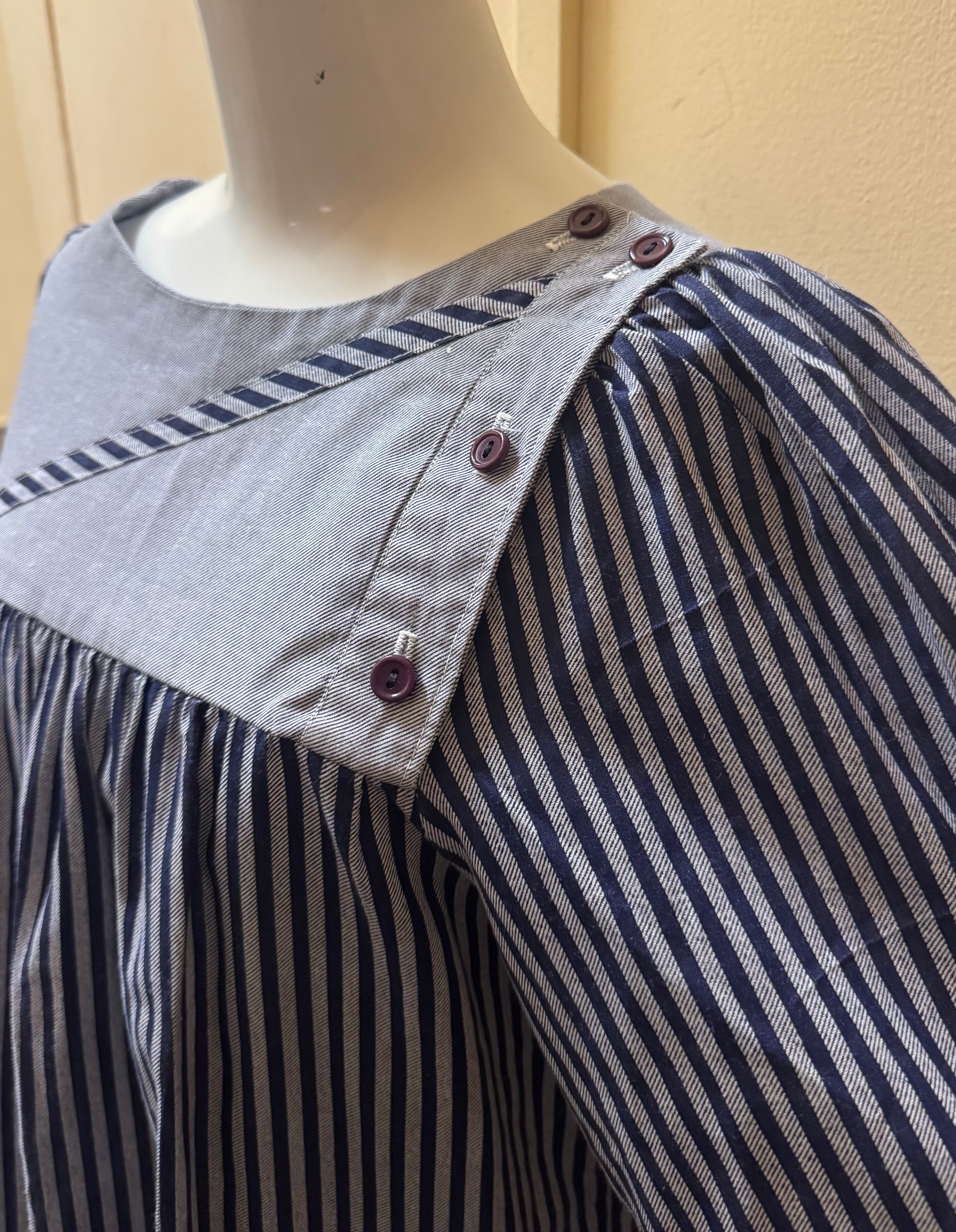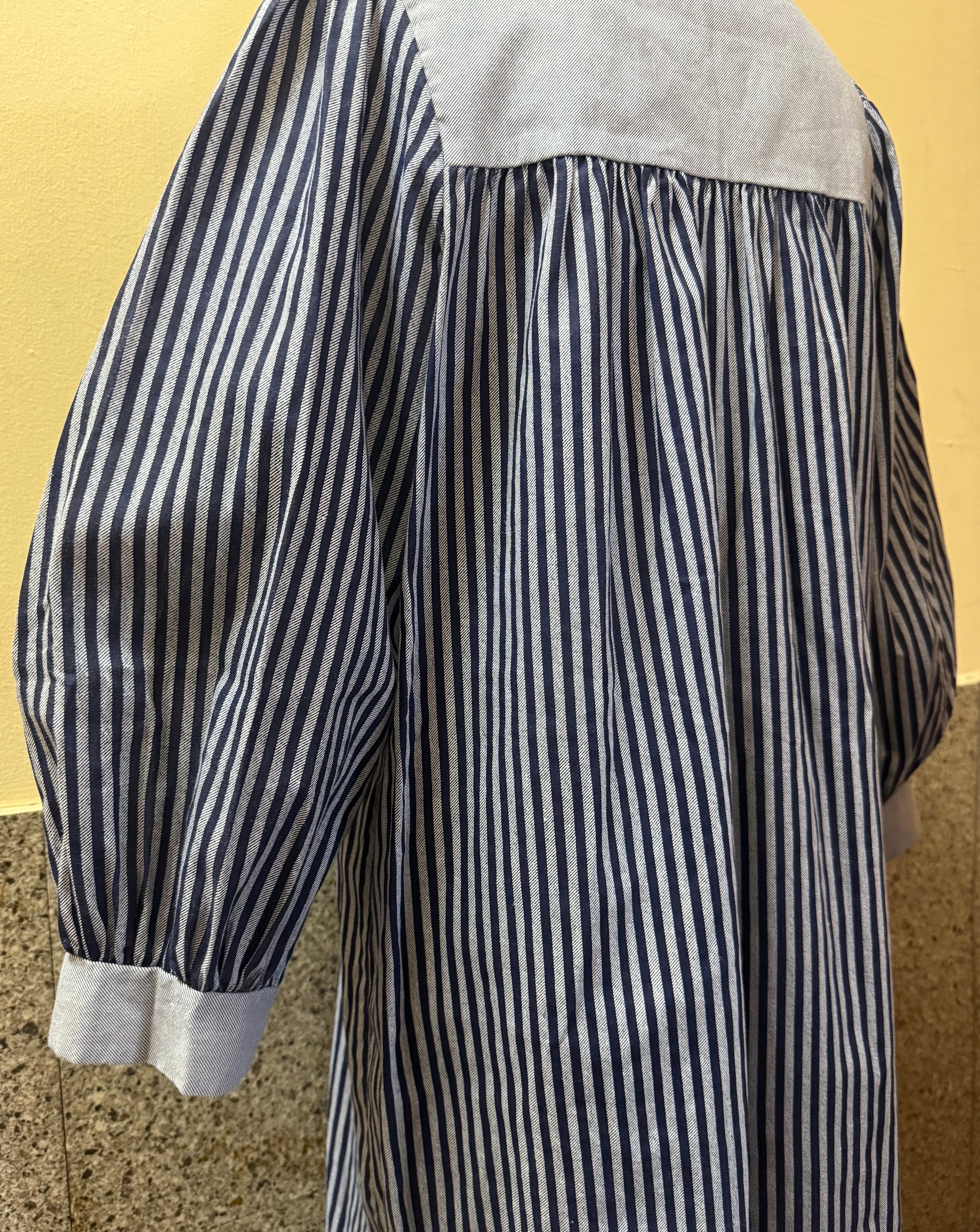 スモックのようなデザインのストライプワンピース