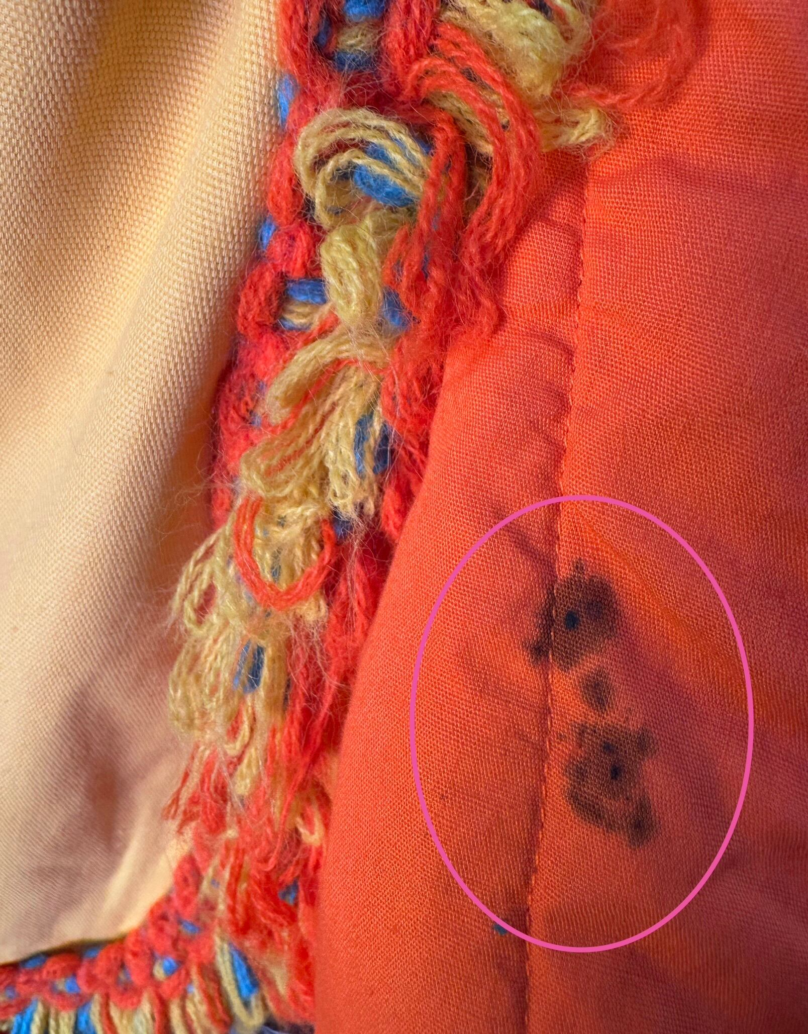 所々薄らとしたシミがありますが、着用時にほとんど目立たない程度です(画像参照)