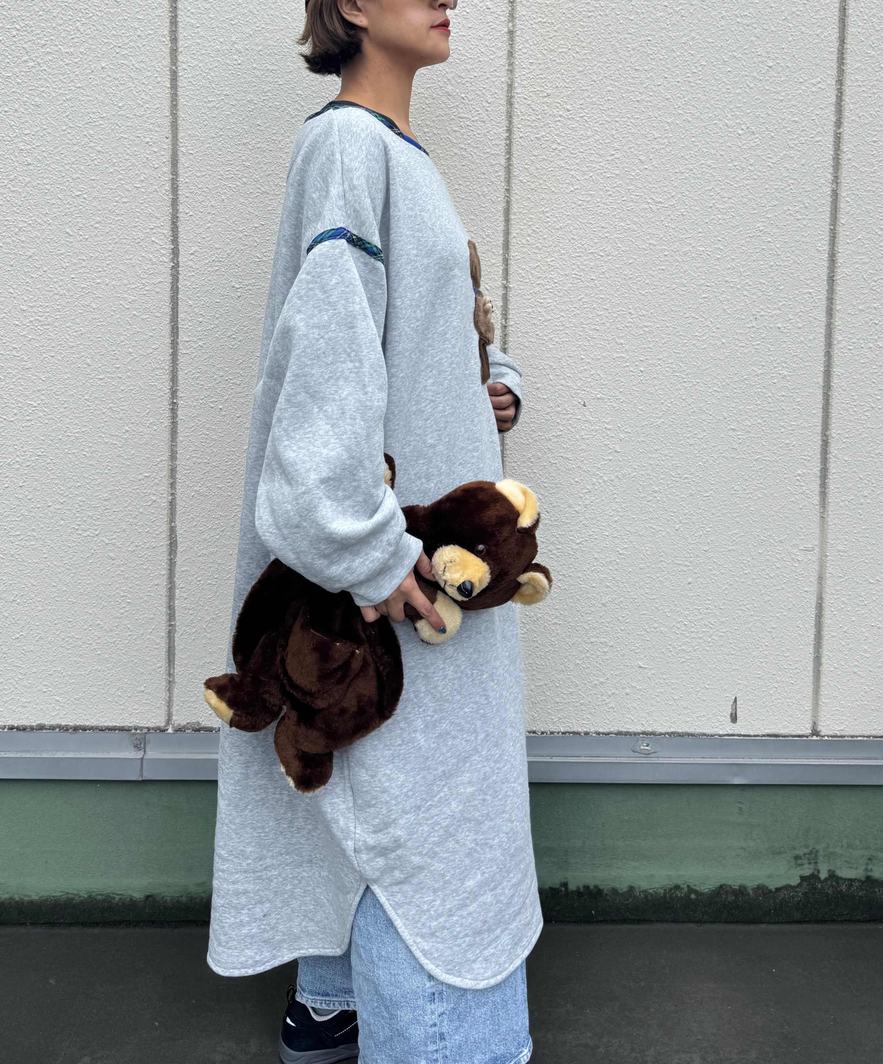 フロントにクマモチーフがデザインされたスウェット素材のロングワンピース
