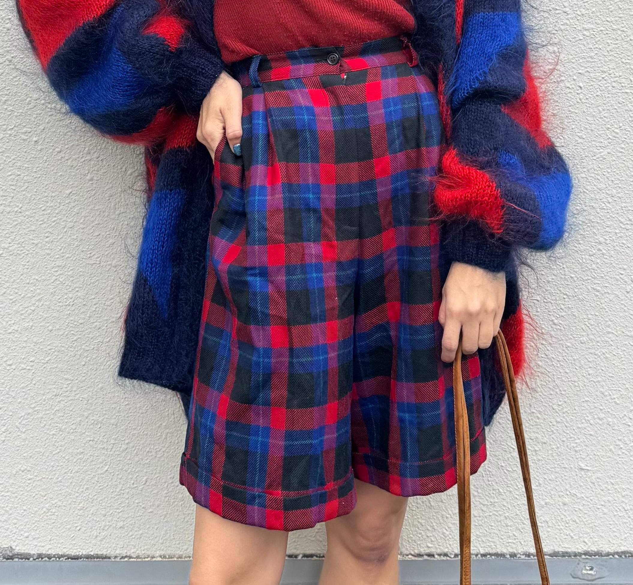 膝上丈のチェック柄ショーツ