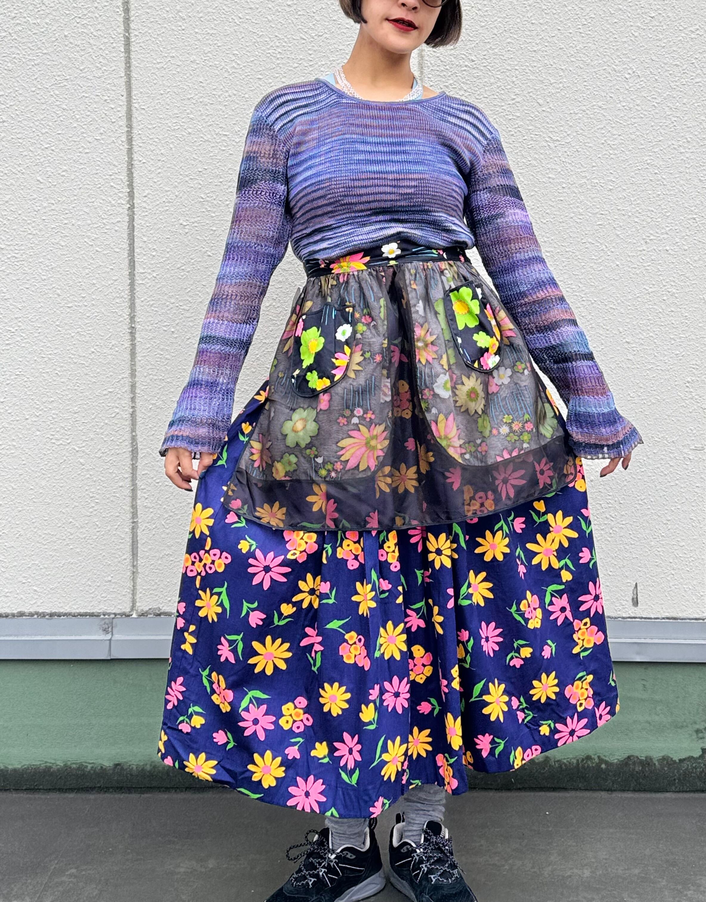 60-70年代頃の生地で作られたハンドメイドのスカートです。