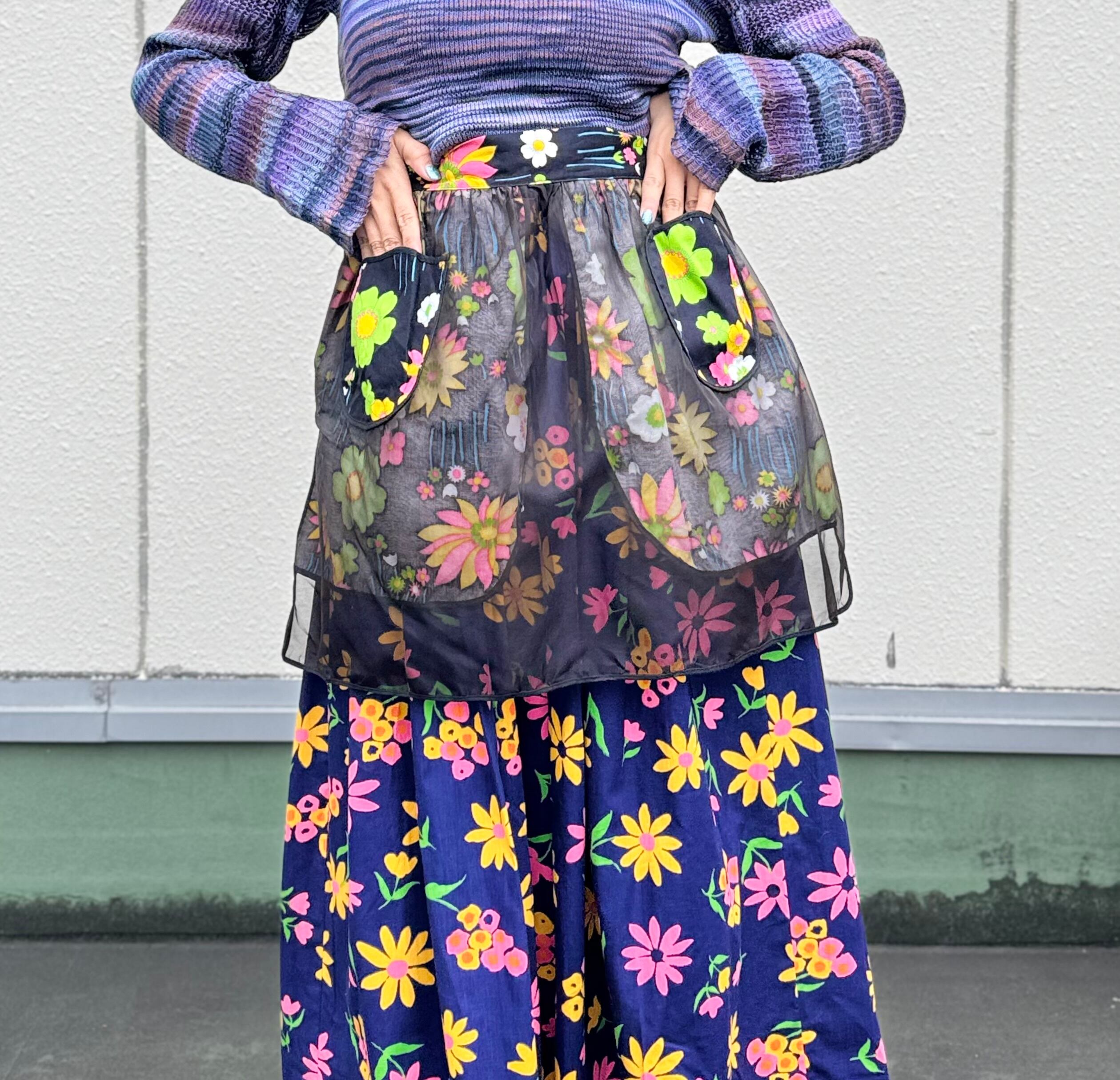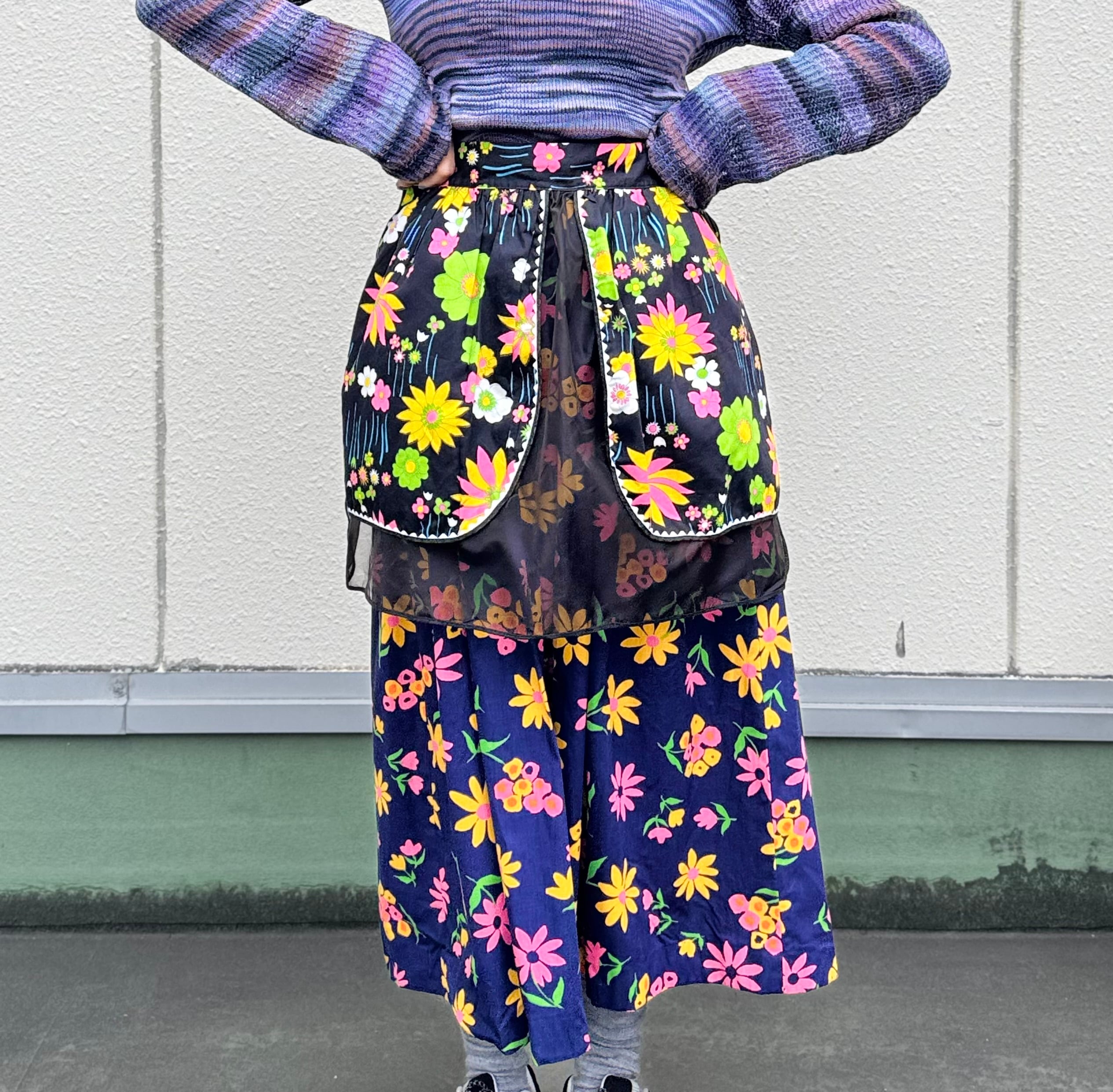 黒地にネオンカラーの花柄が素敵で、デニムなどにレイヤードするにもオススメ。