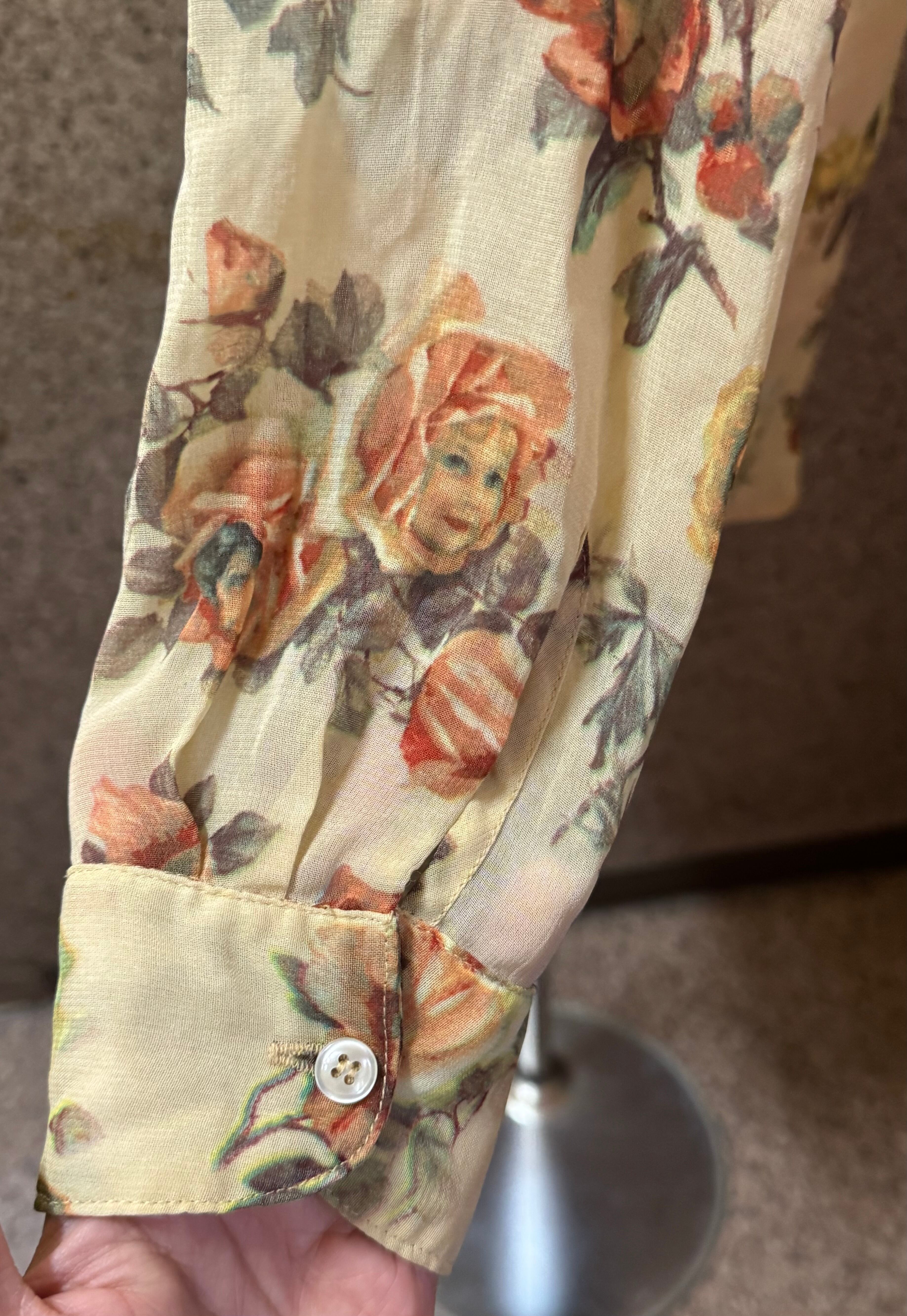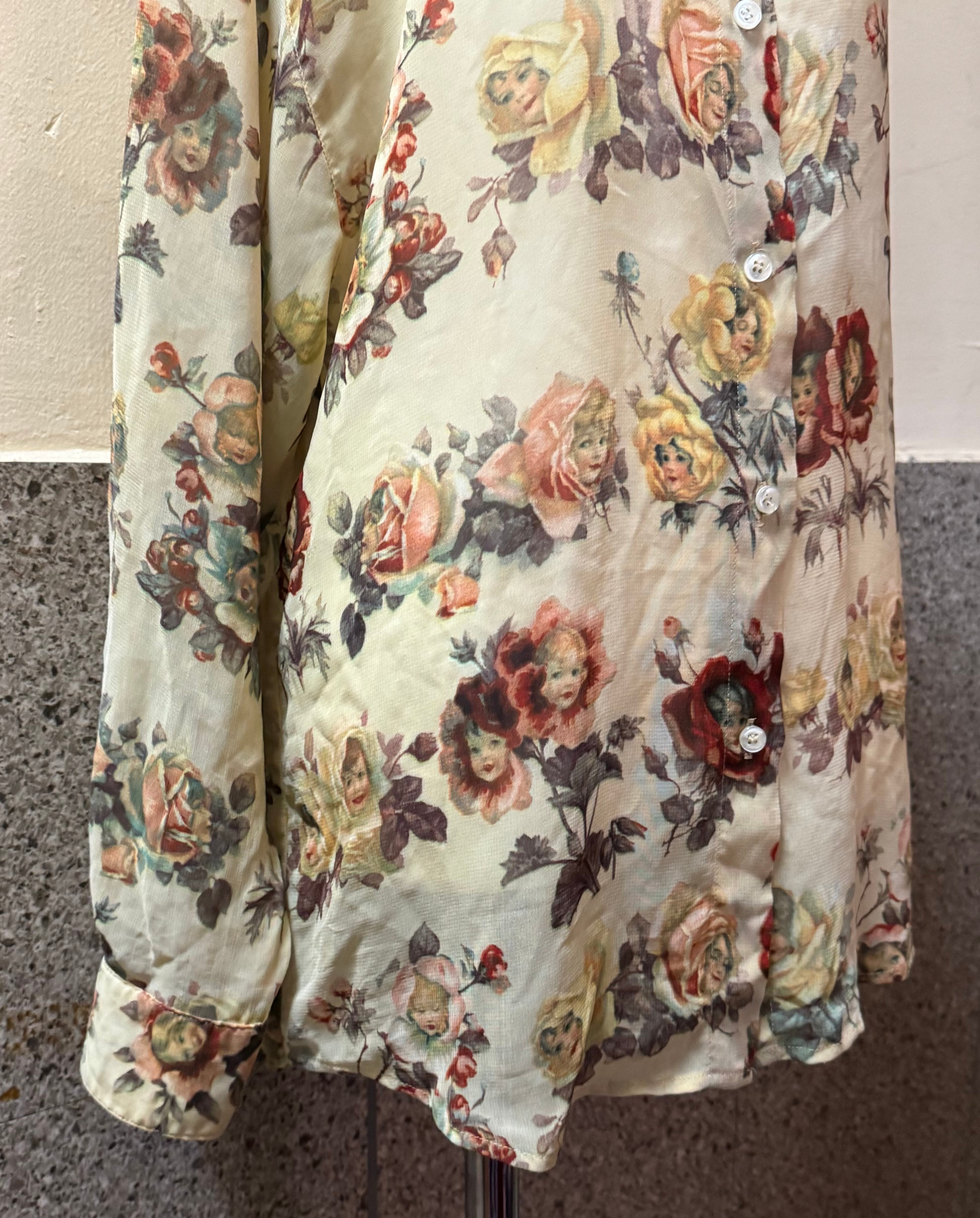 エンジェルモチーフのプリントが素敵なシアーなシャツ