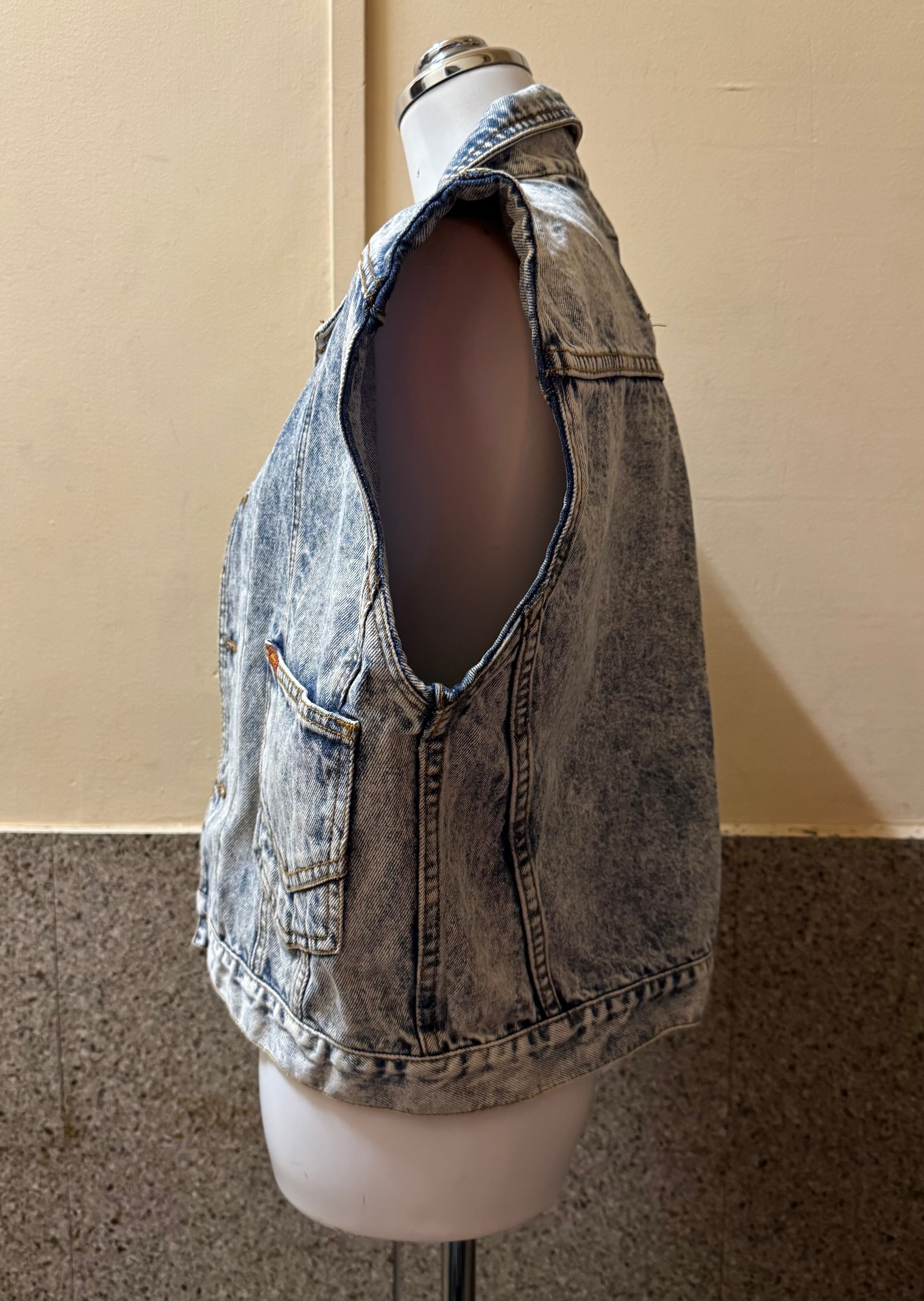 元はジャケットだったものを袖を取り外したリメイク品かと思われます。