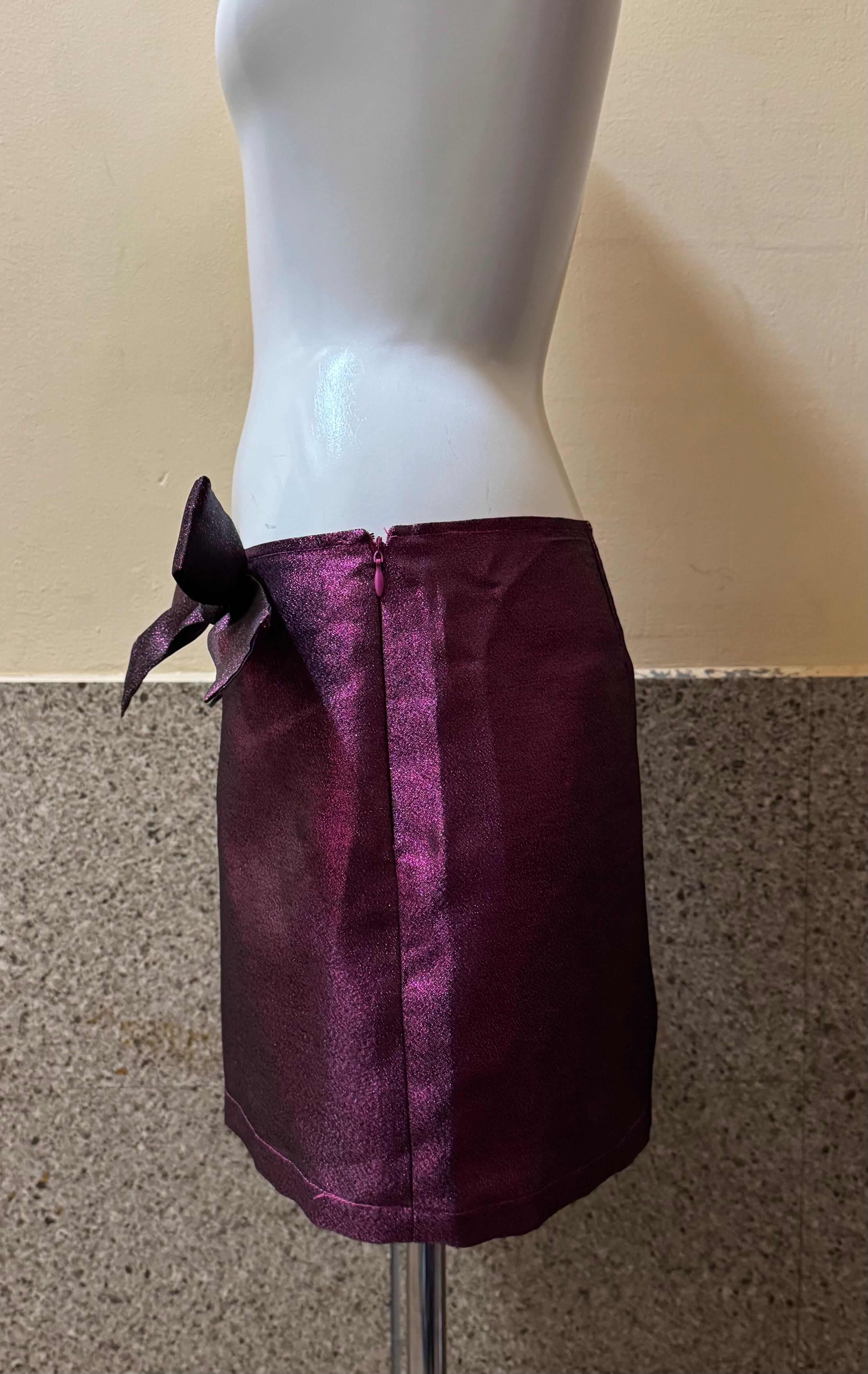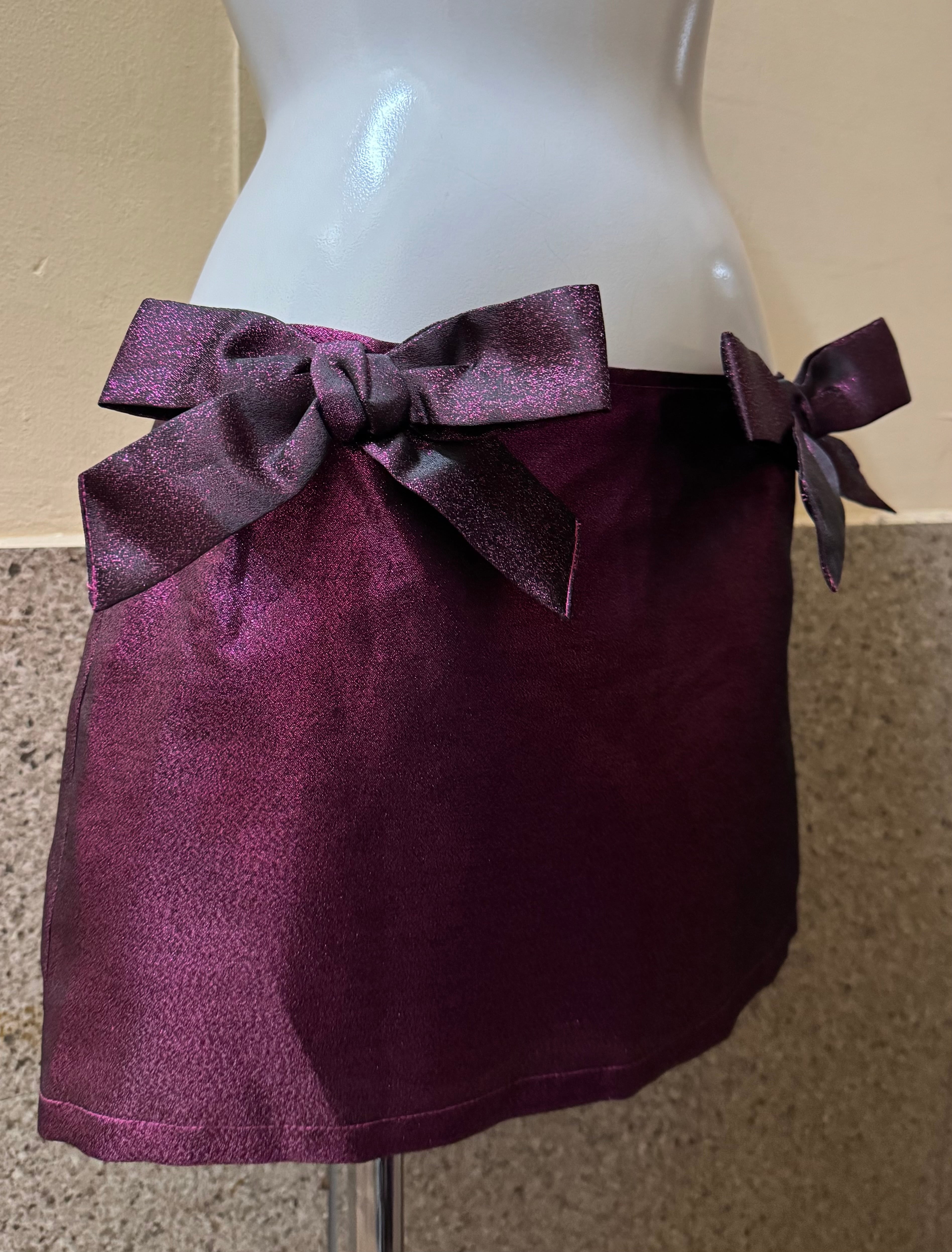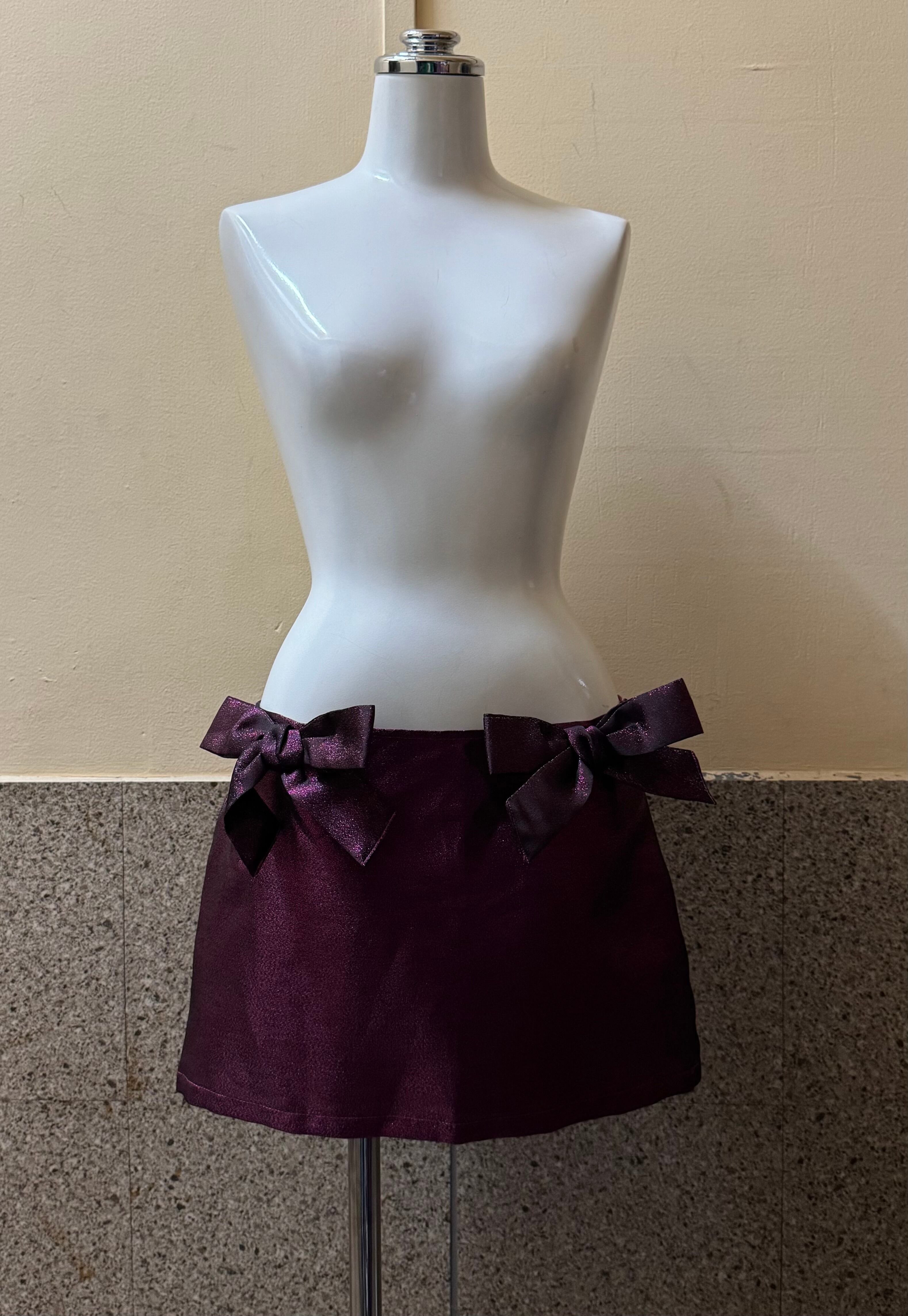 ウエストに大きめリボンがデザインされたラメ入りのミニスカート