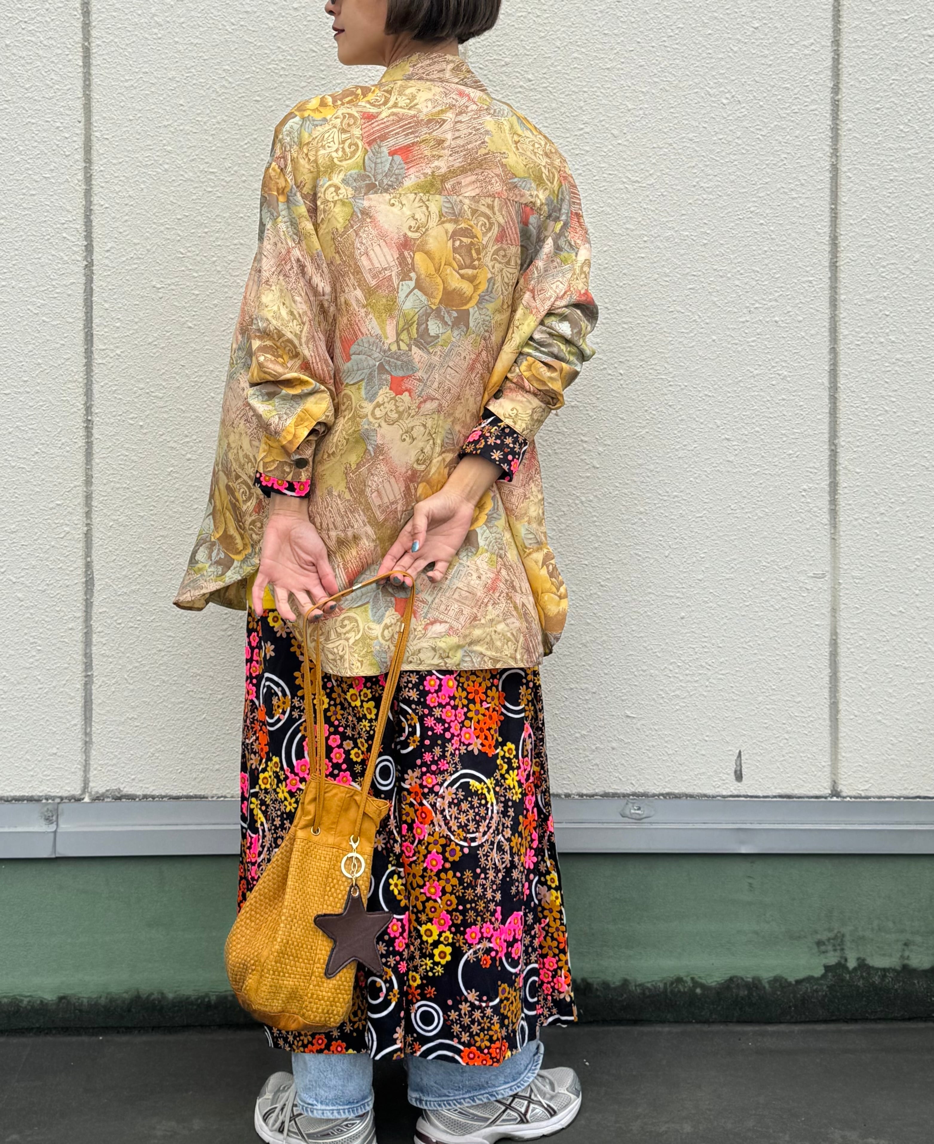パジャマシャツの様なシルエットでさらっと羽織るのにちょうどいいシルクシャツ