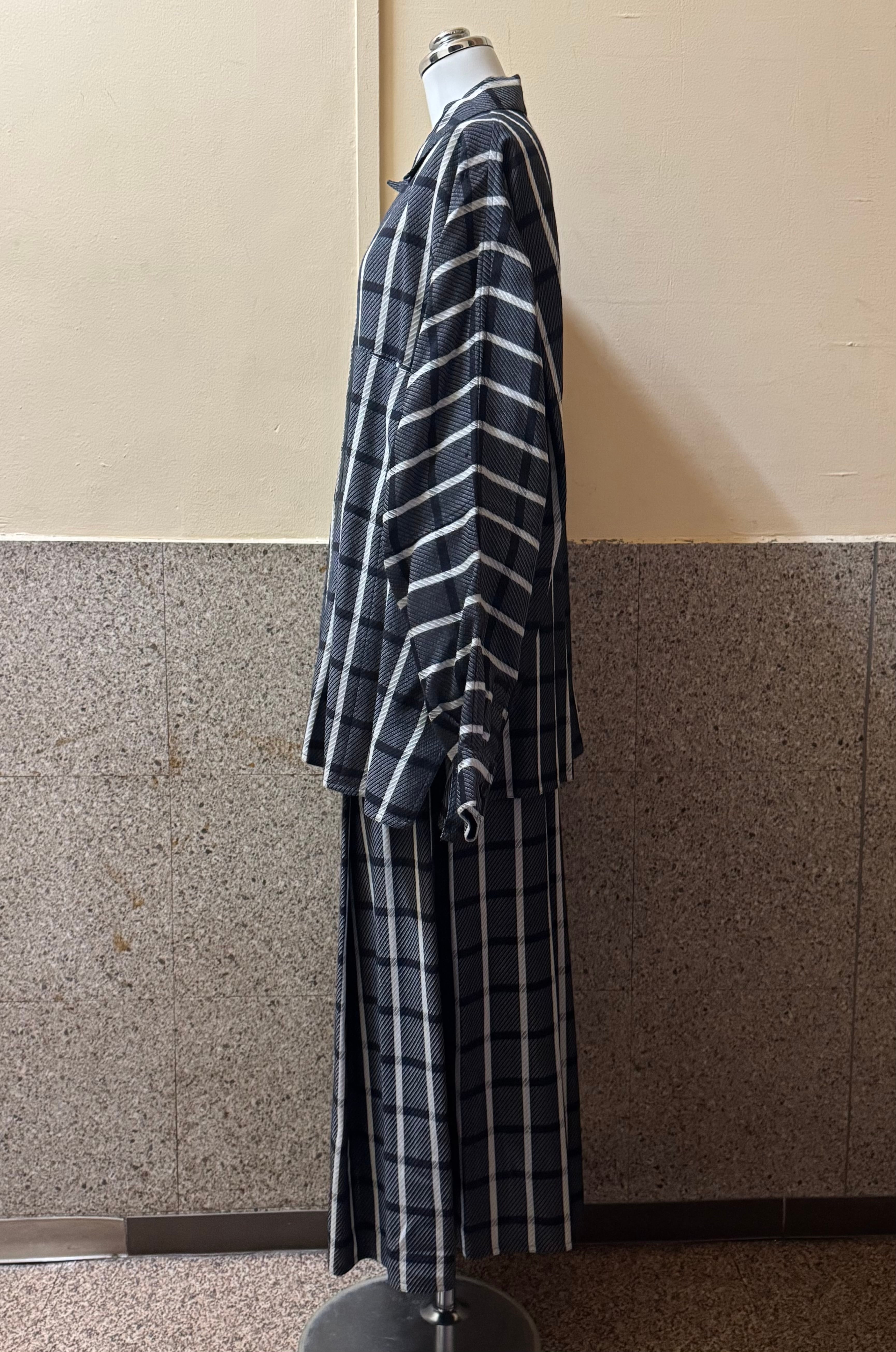 セットでワンピースの様に着るも良し、別々でも使いやすいバイカラーのチェックです。