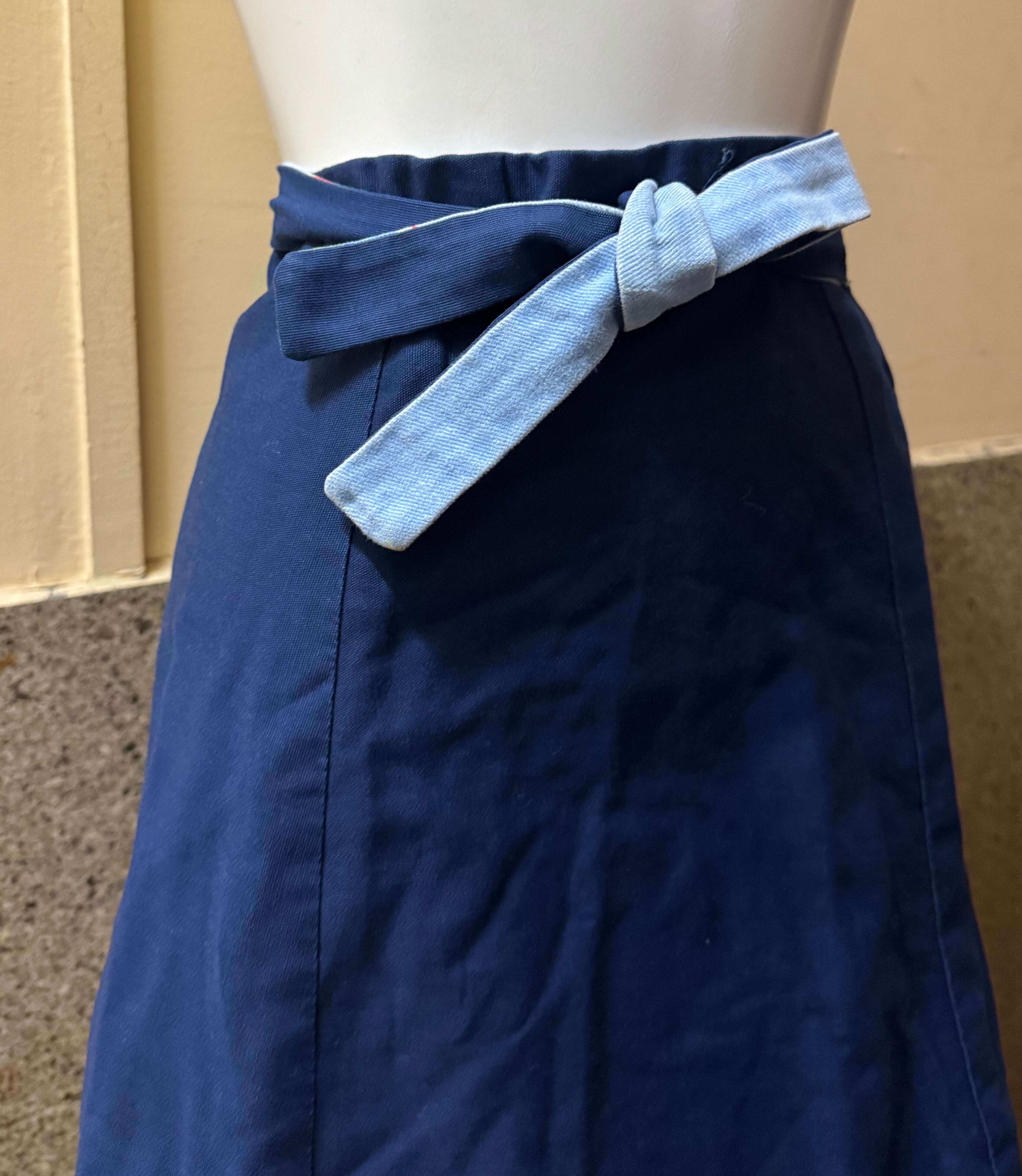 表は70sのレトロなプリント裏はネイビーの無地のリバーシブルで着用いただけます。