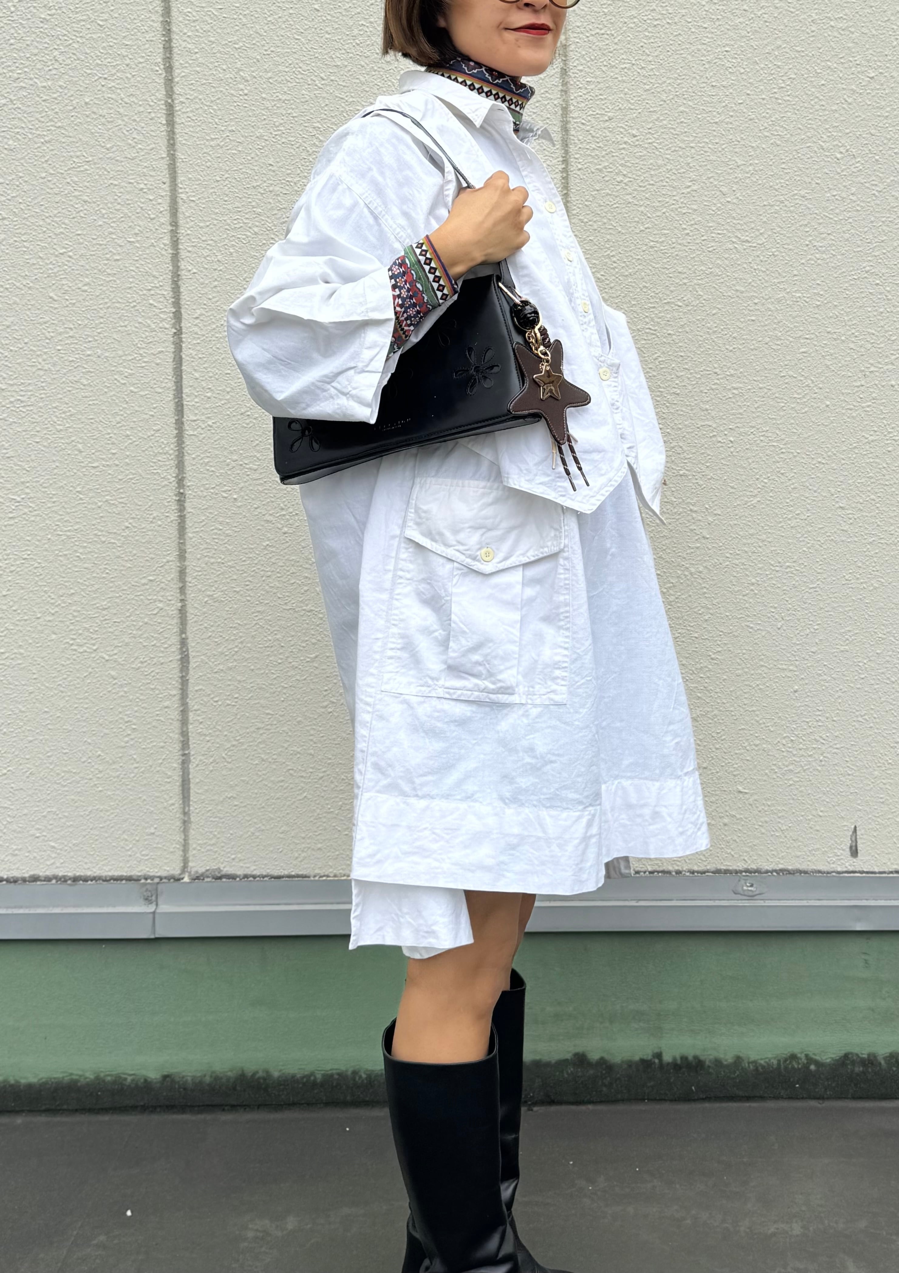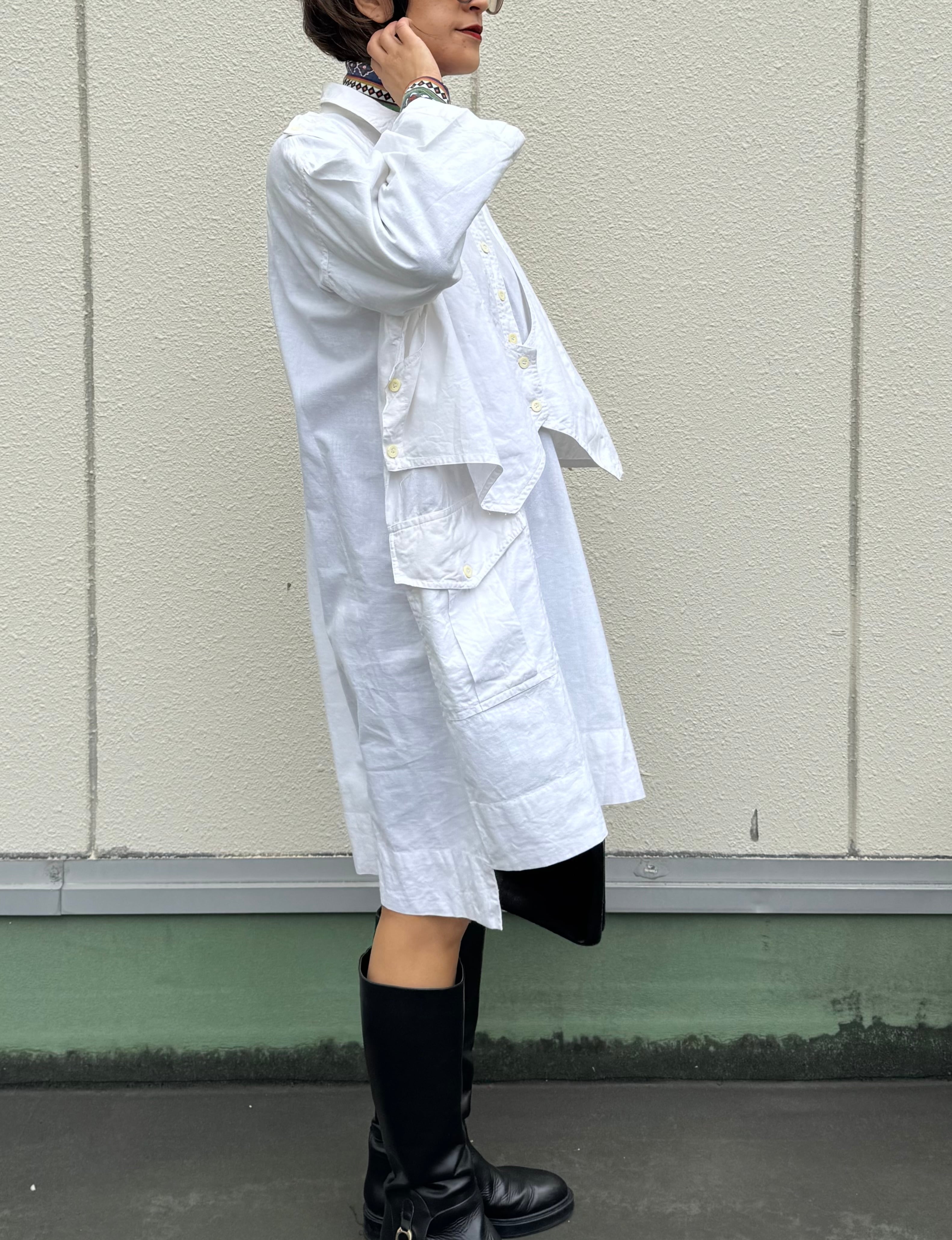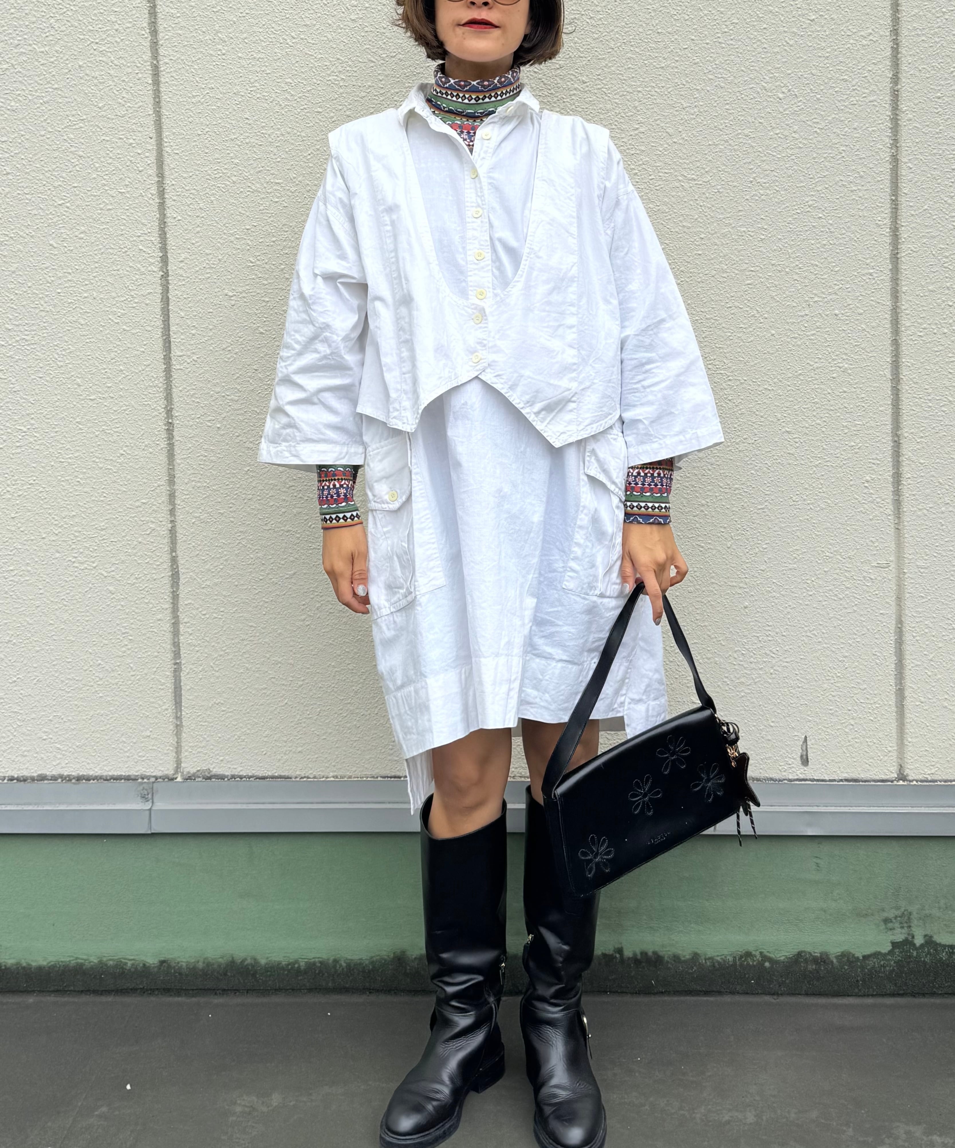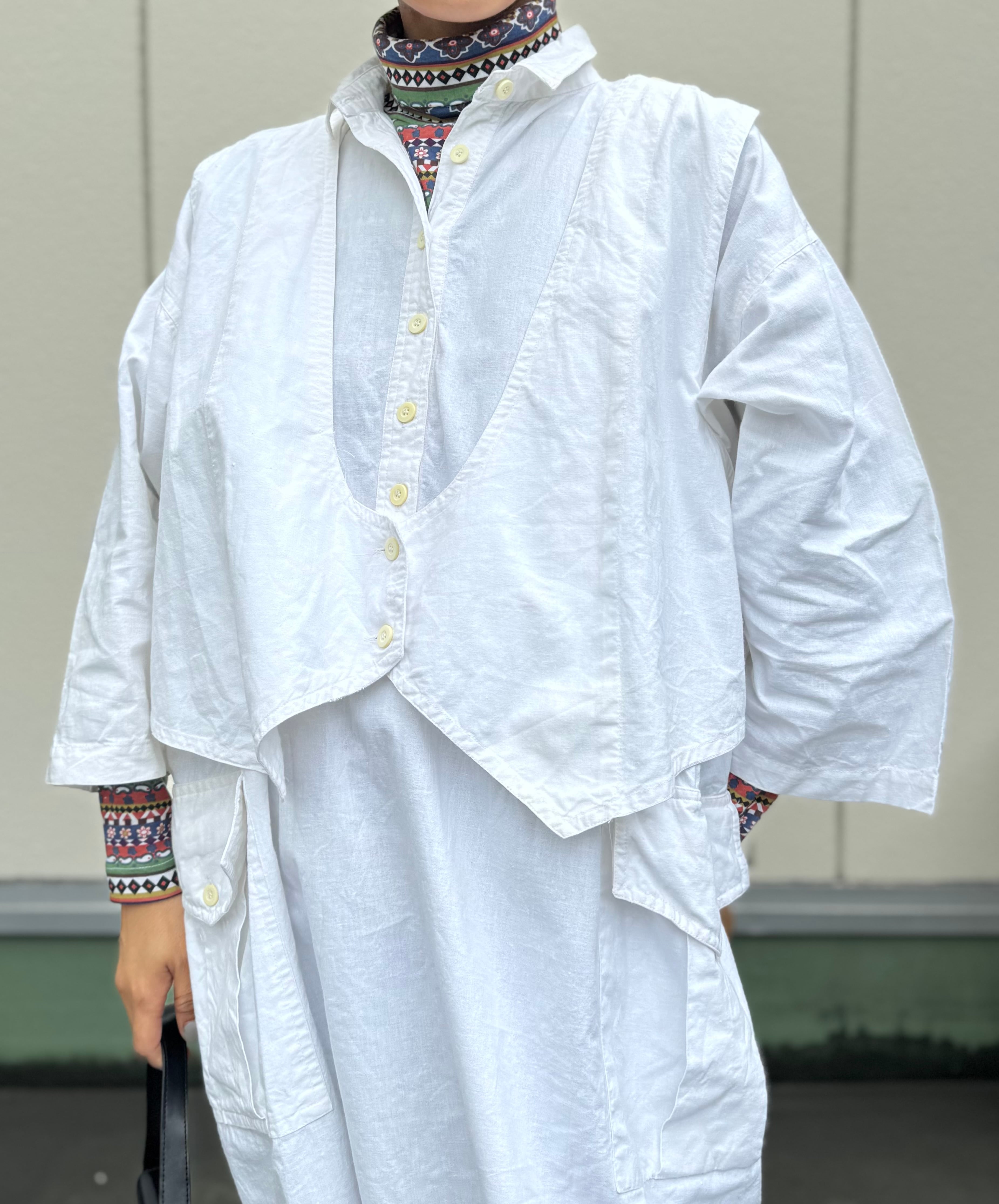 ベストを重ね着した様なデザインでフロントの生地は着脱可能です。ミニ×ブーツもよし、パンツやマキシスカートのレイヤードもオススメです。