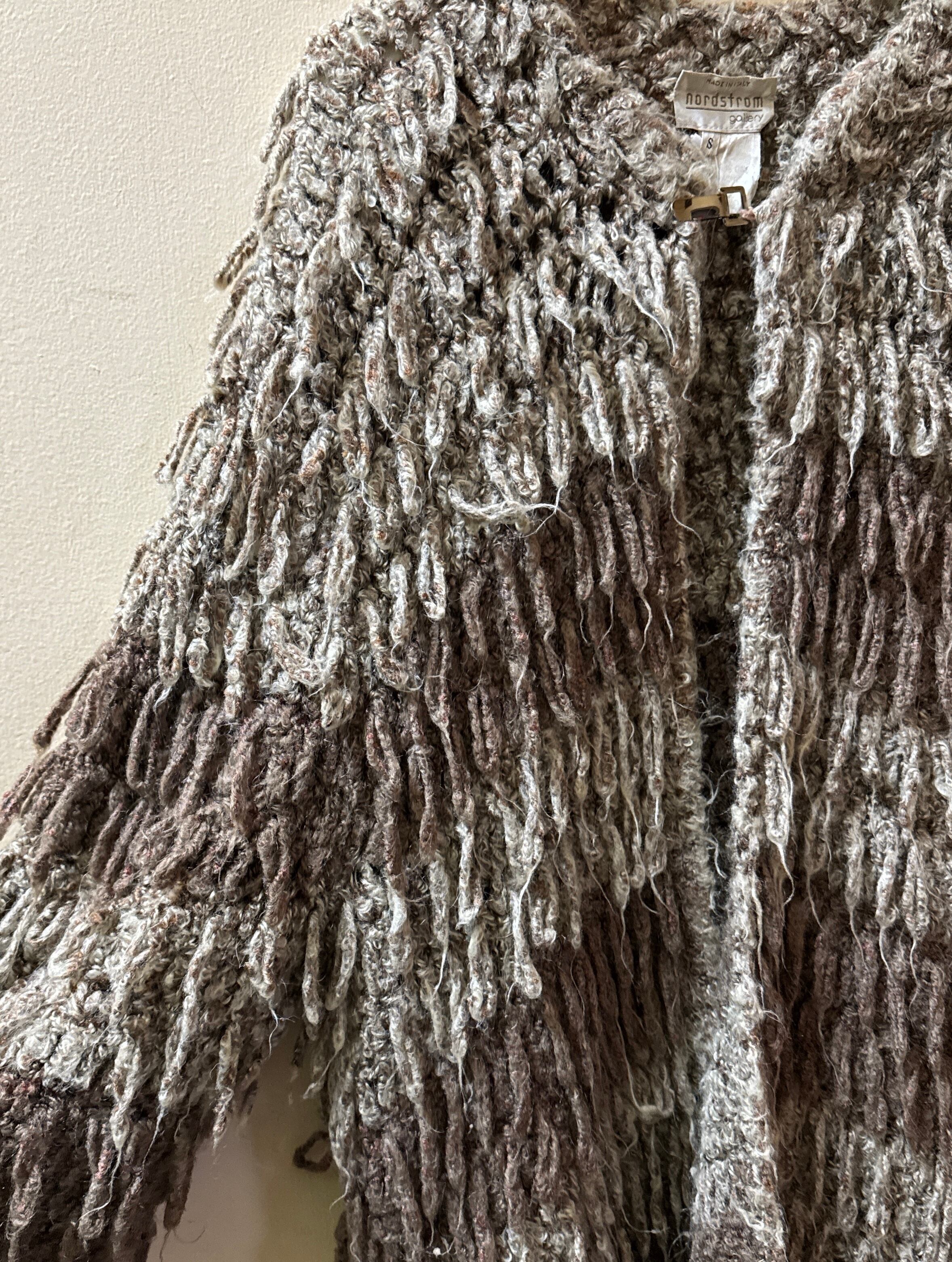 ボリュームがありツートーンで落ち着いた雰囲気のニットガウン