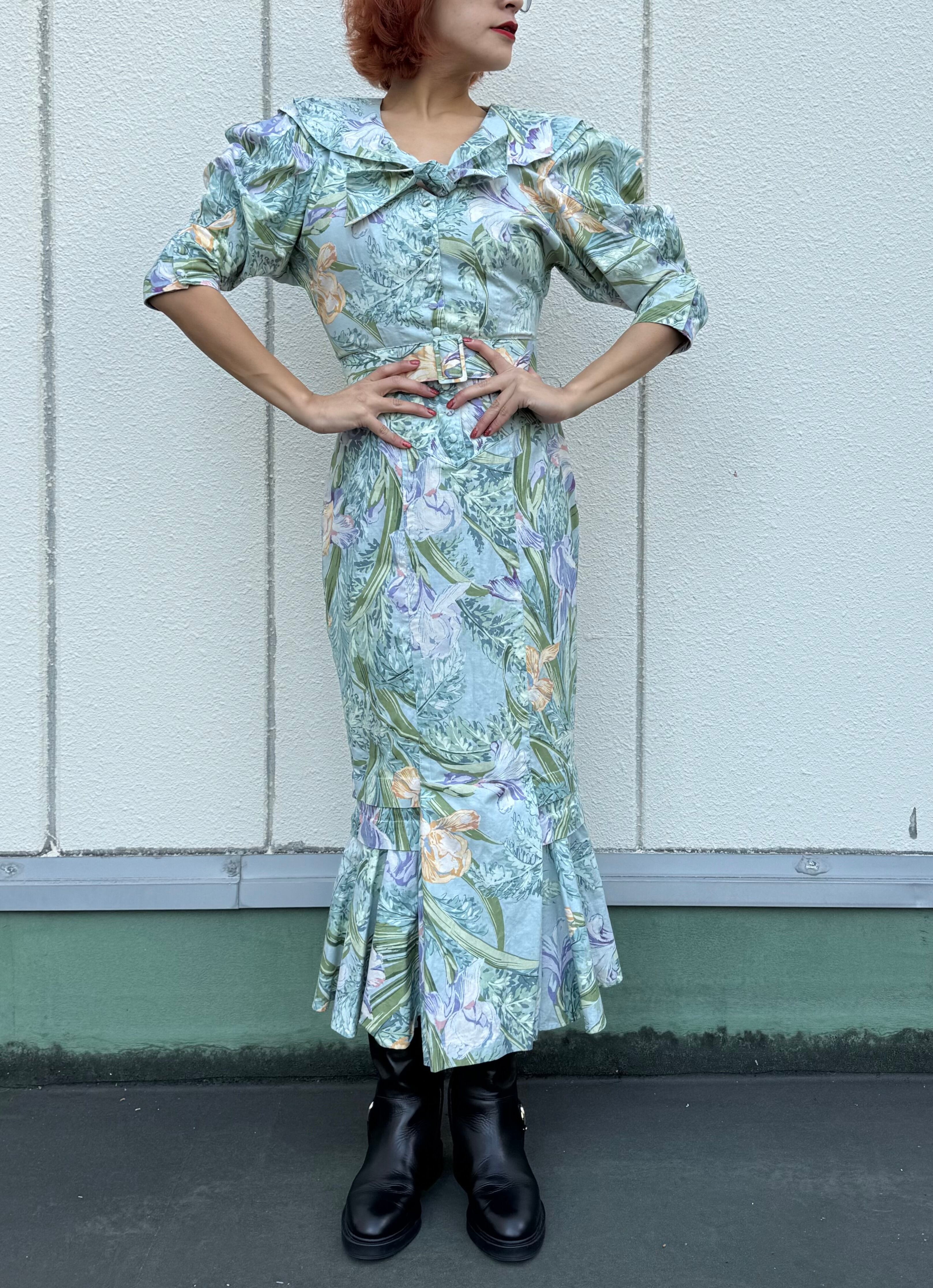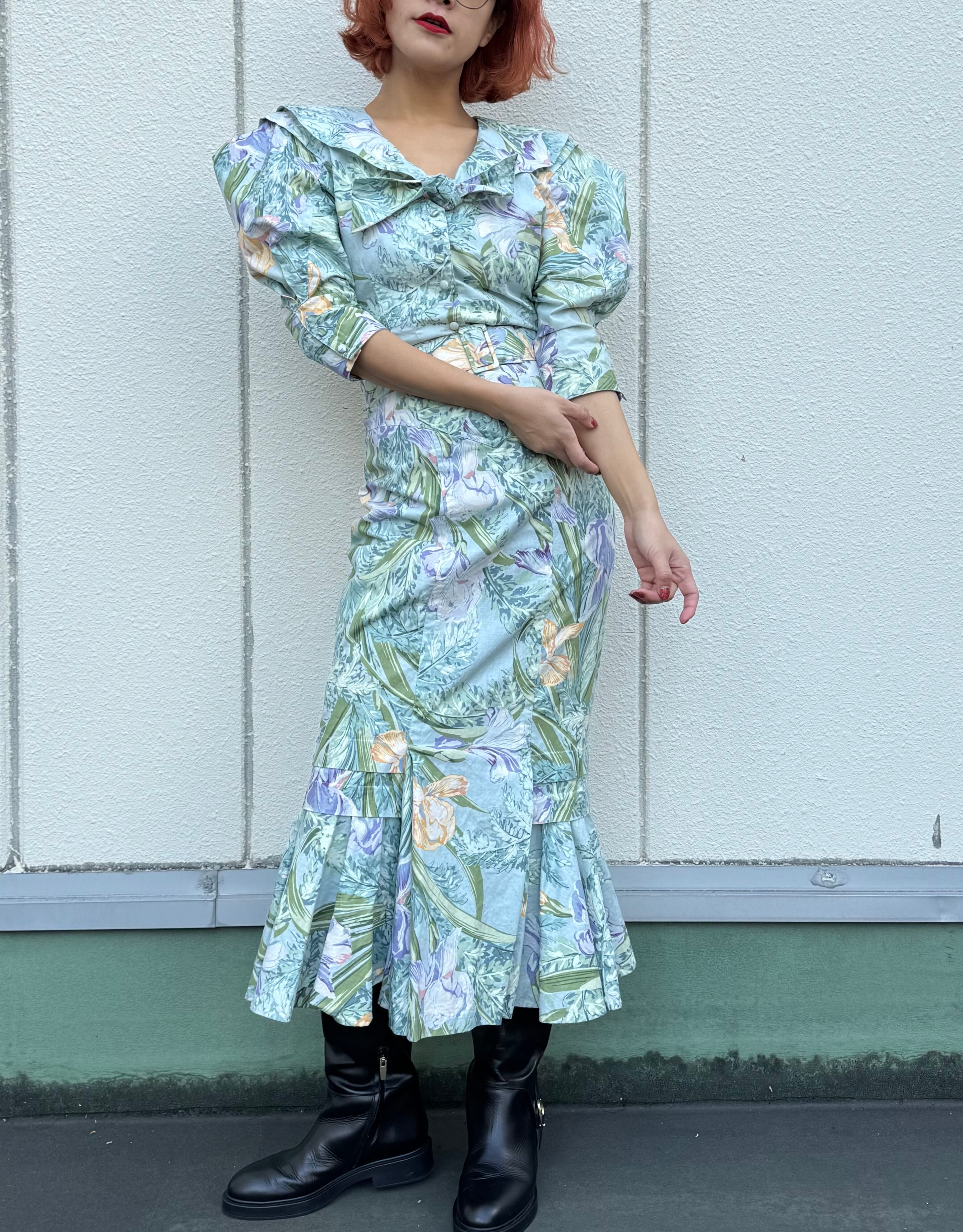 80s花柄ワンピース