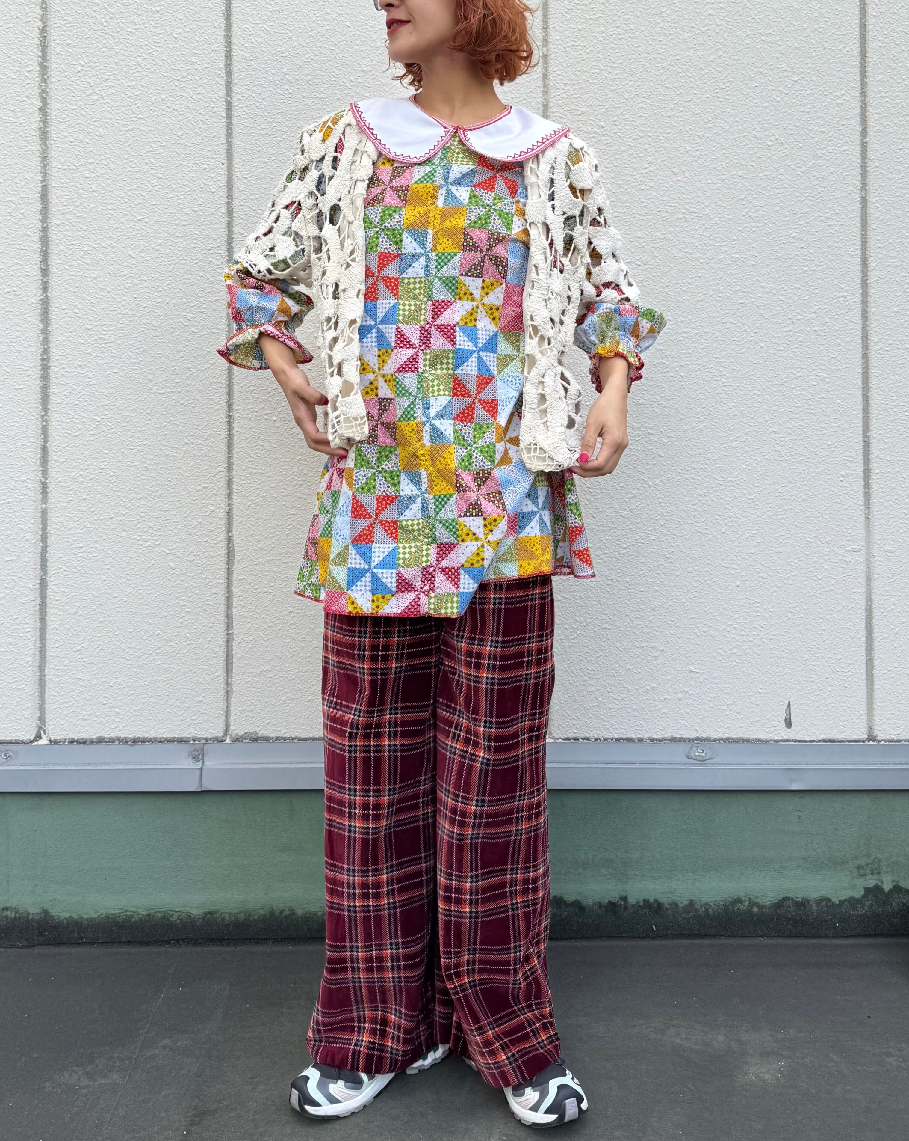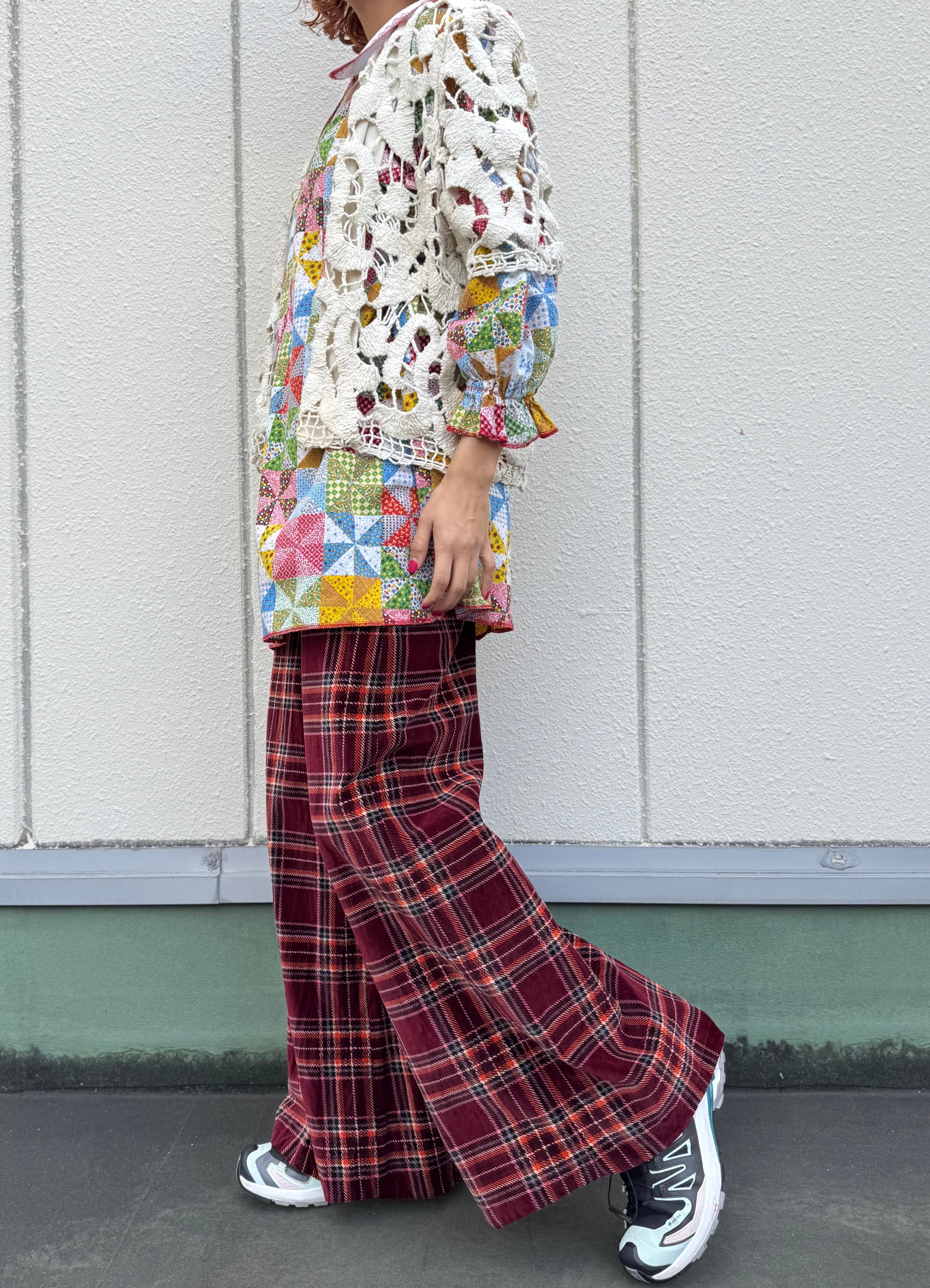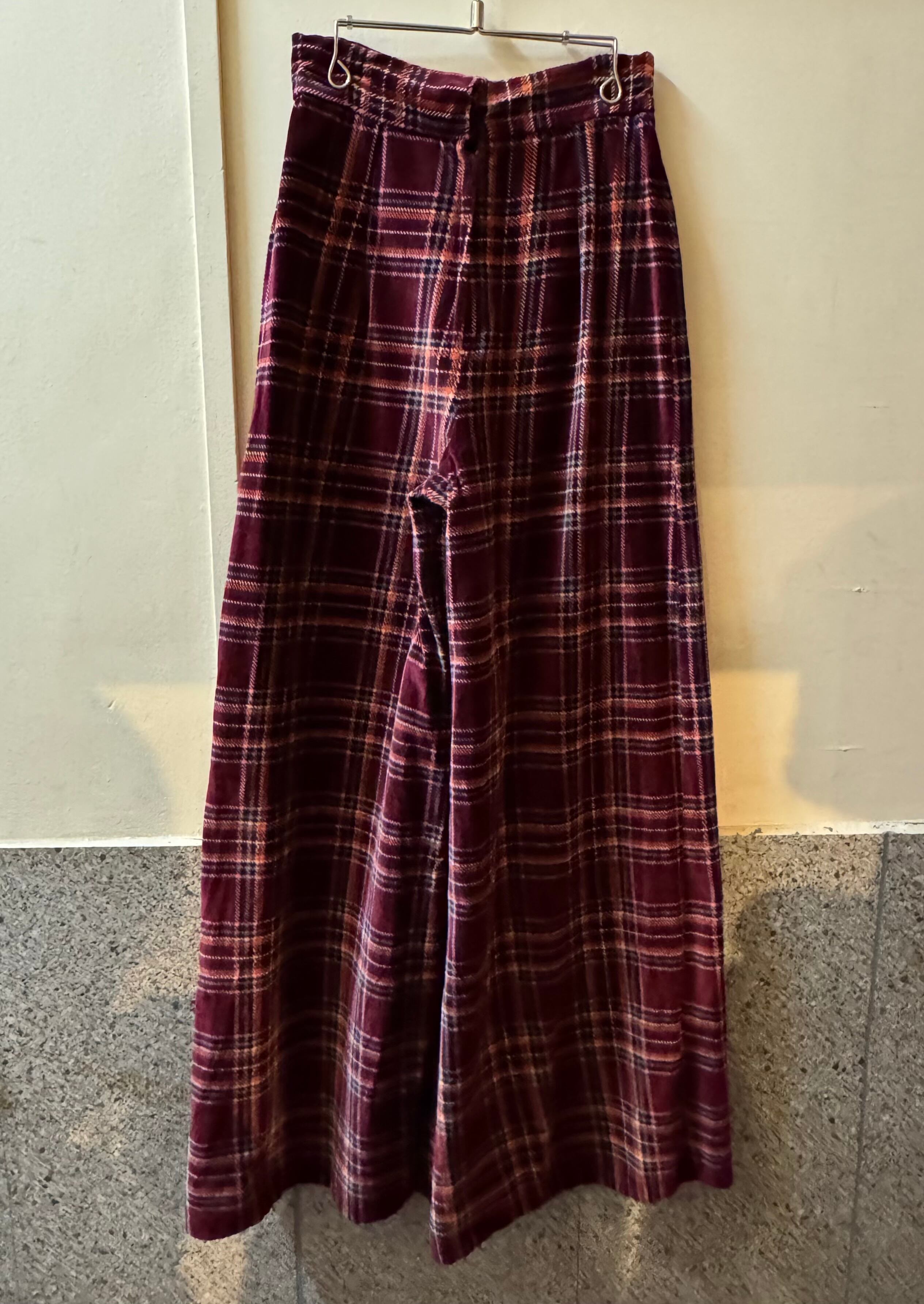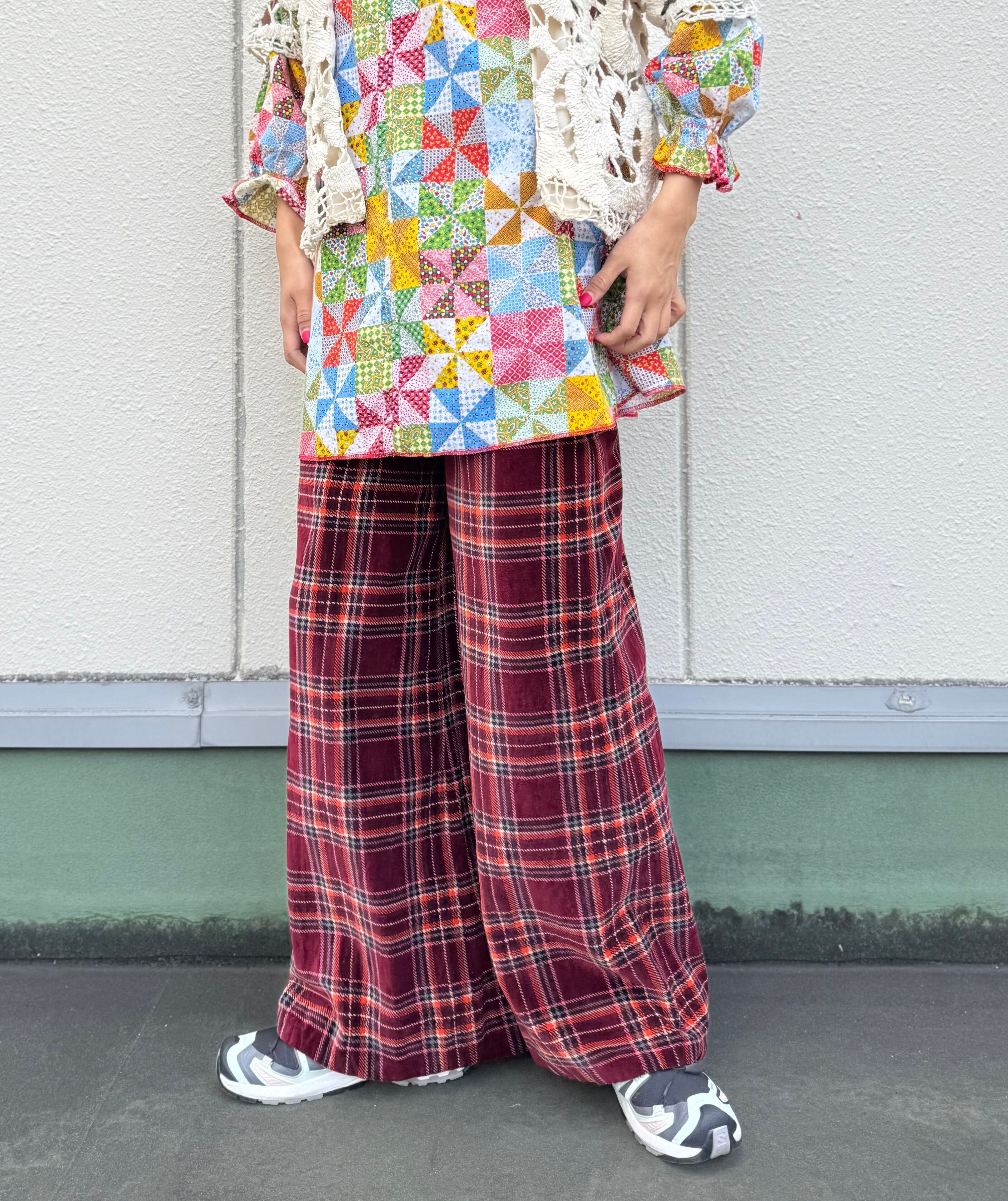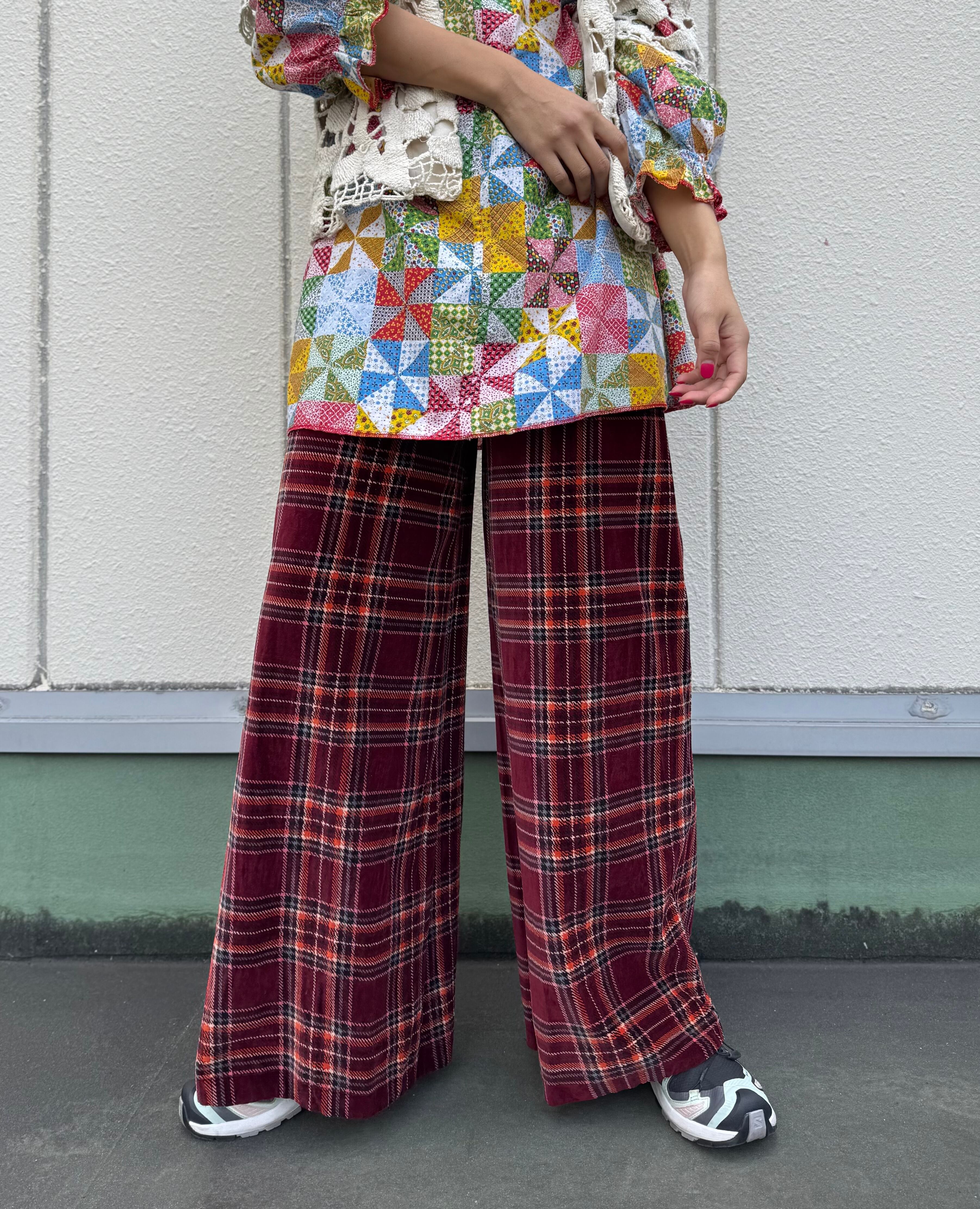 ハイウエストで、かなりワイドなベロアパンツ