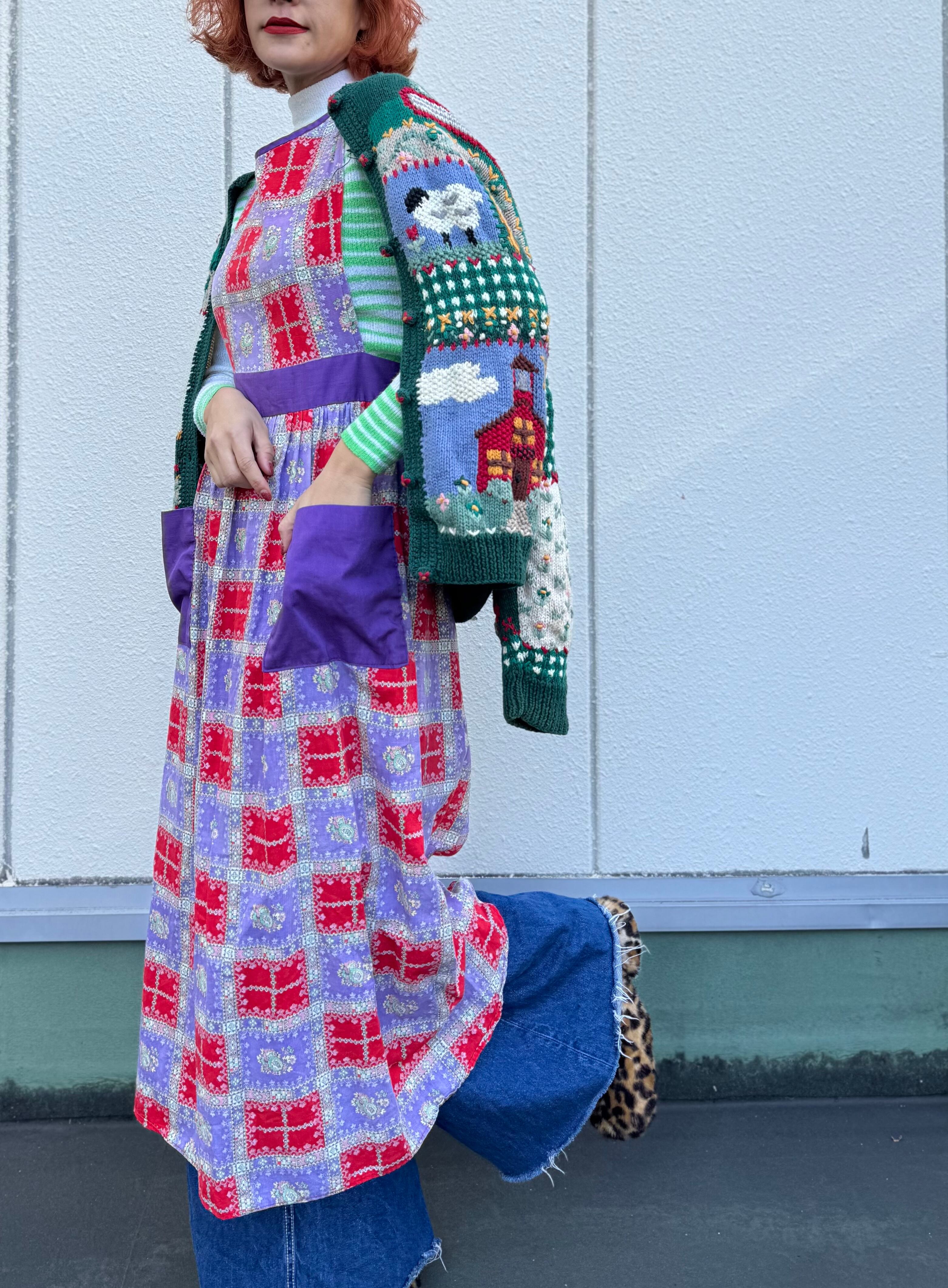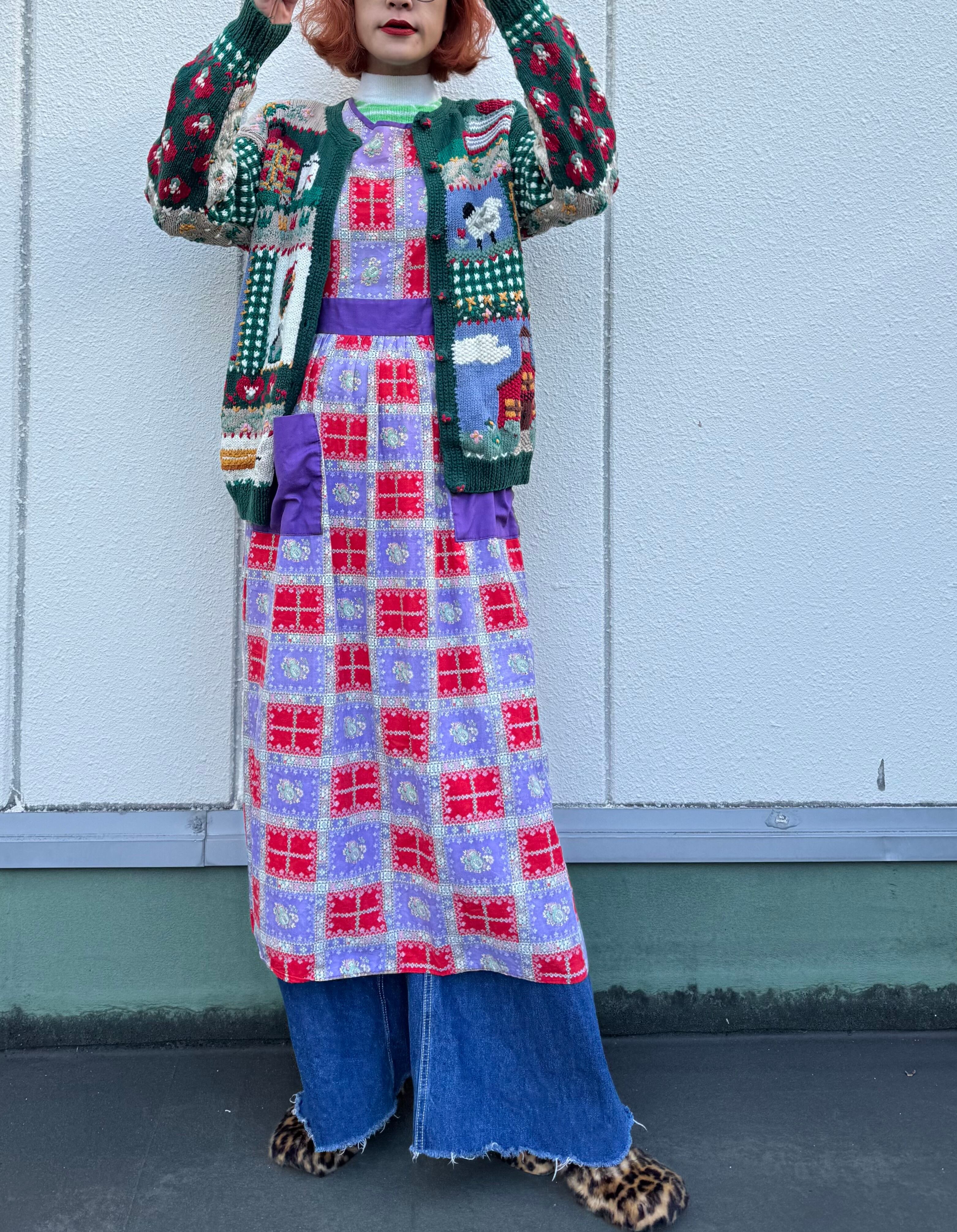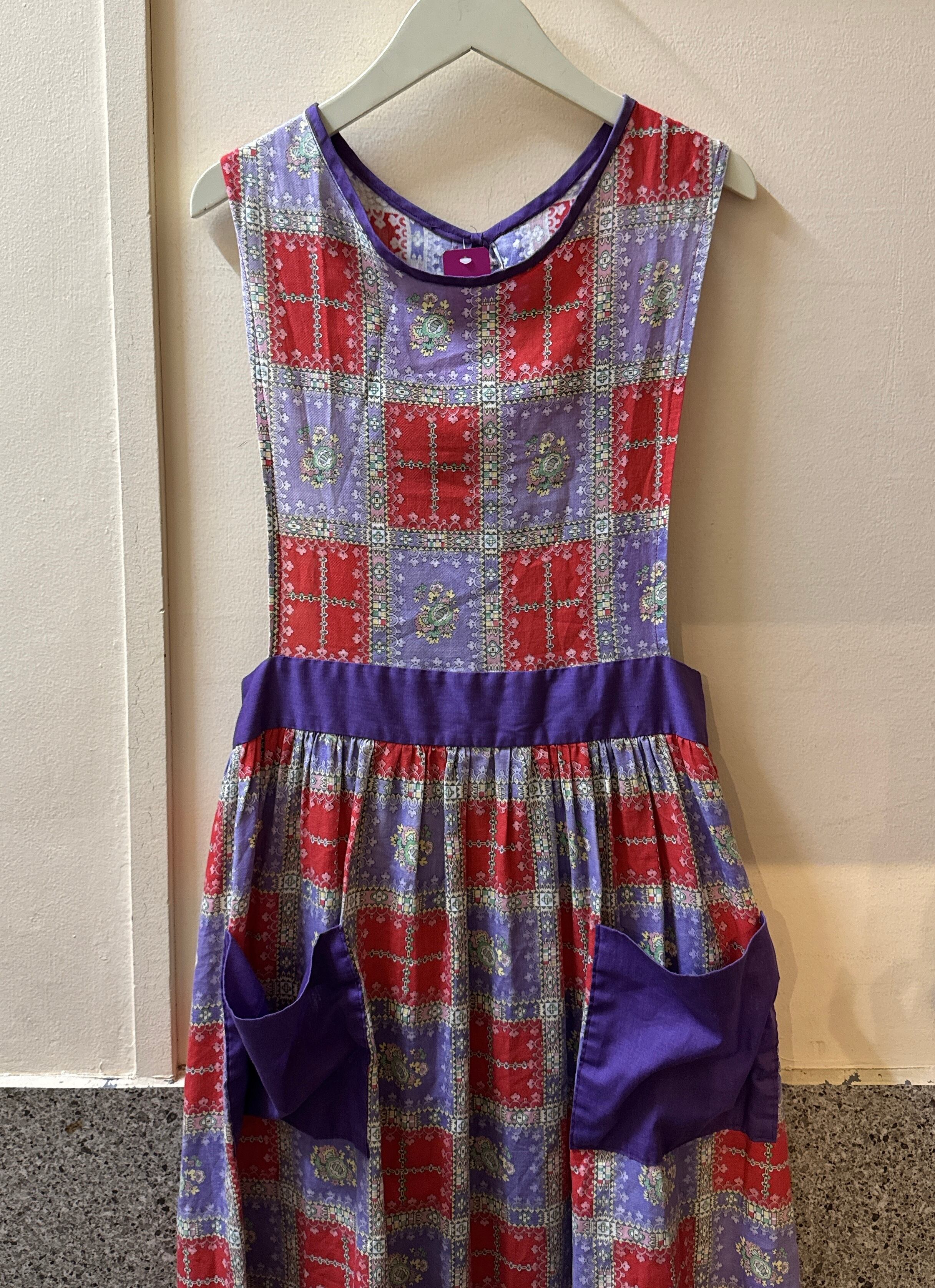 レッド×パープルの組み合わせが独特な雰囲気のエプロンワンピース