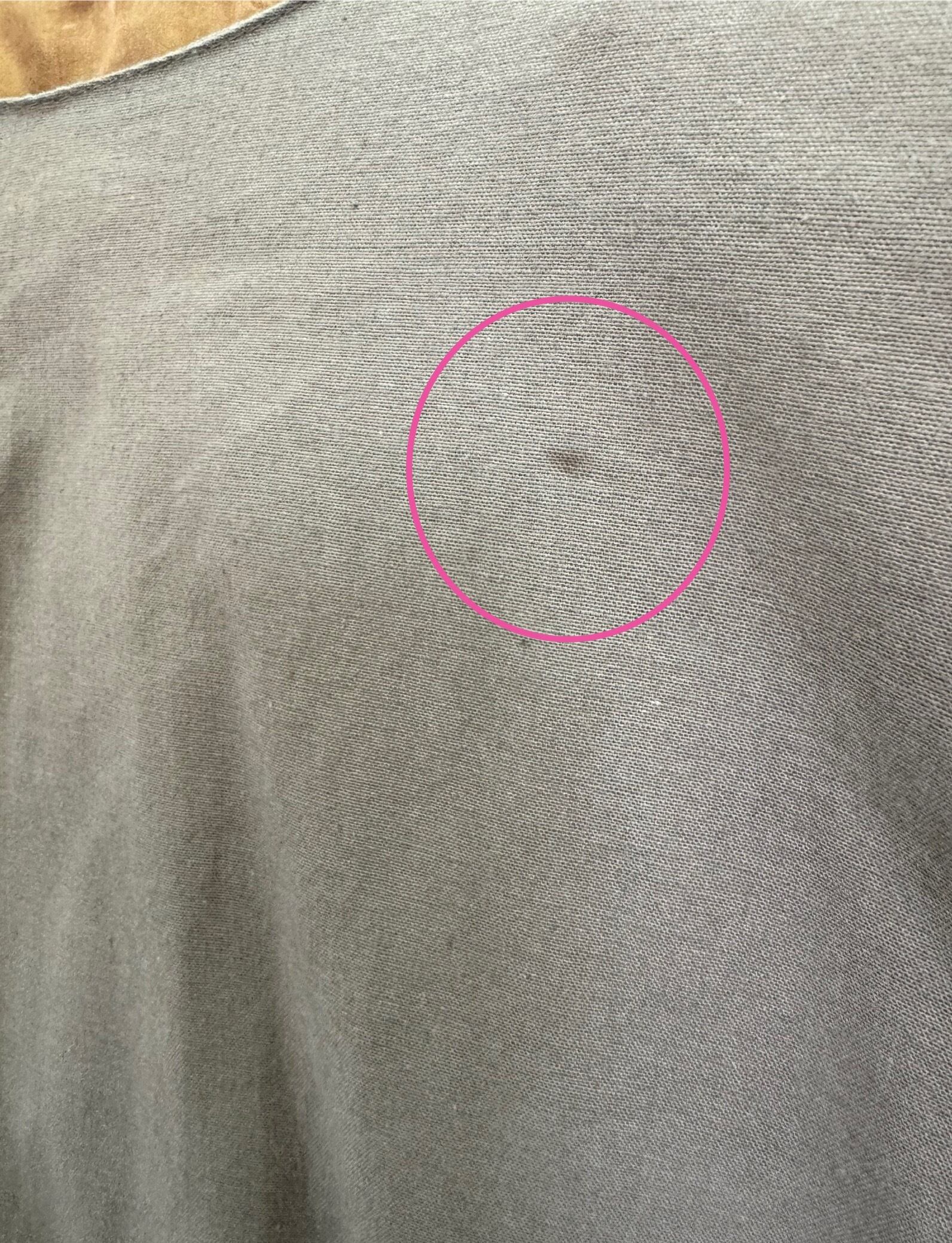 首元、肩辺りにうっすらシミが見受けられますがほとんど目立たない程度です(画像参照)